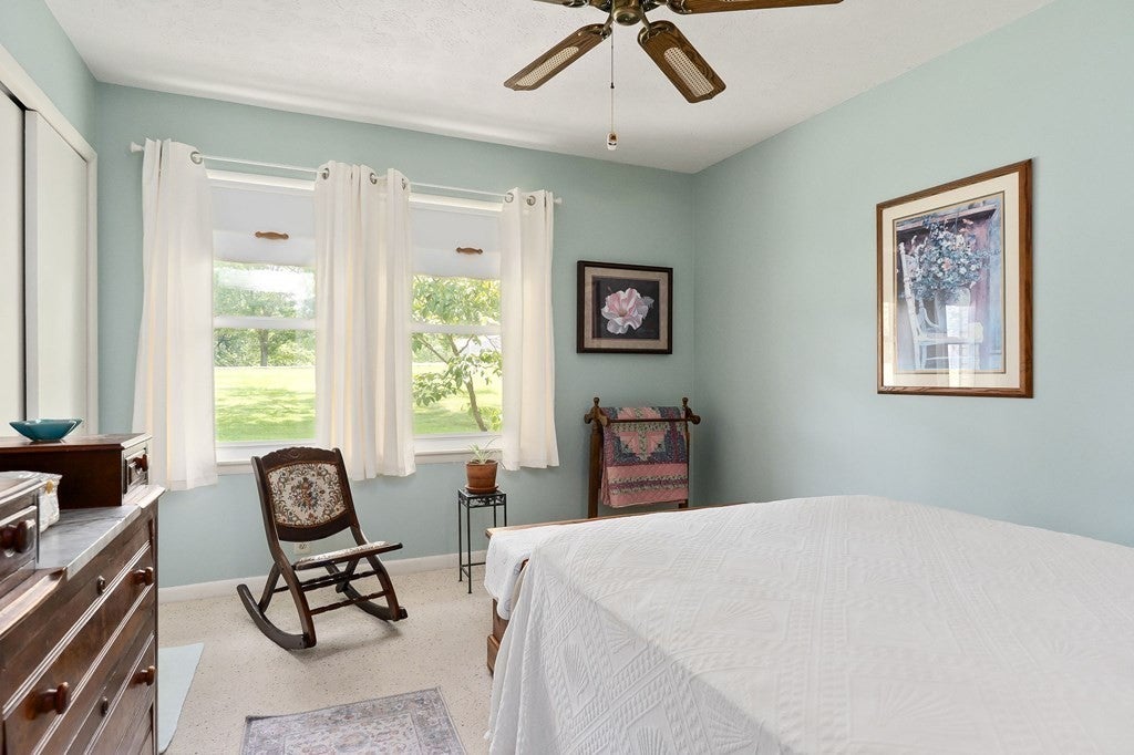 This 3-bedroom, 2-bath brick ranch home has been lovingly maintained inside and out, offering peace of mind to its next owner. The pride of ownership shines through everything that has been cared for with meticulous attention over the years. Enjoy a spacious den with a cozy wood-burning fireplace, a full dry basement offering abundant storage and a basement-level garage, and an oversized one-acre lot with peaceful farmland views for a private, scenic setting. All of this is just minutes from shopping, dining, and schools, delivering a rare blend of space, privacy, and in-town convenience.