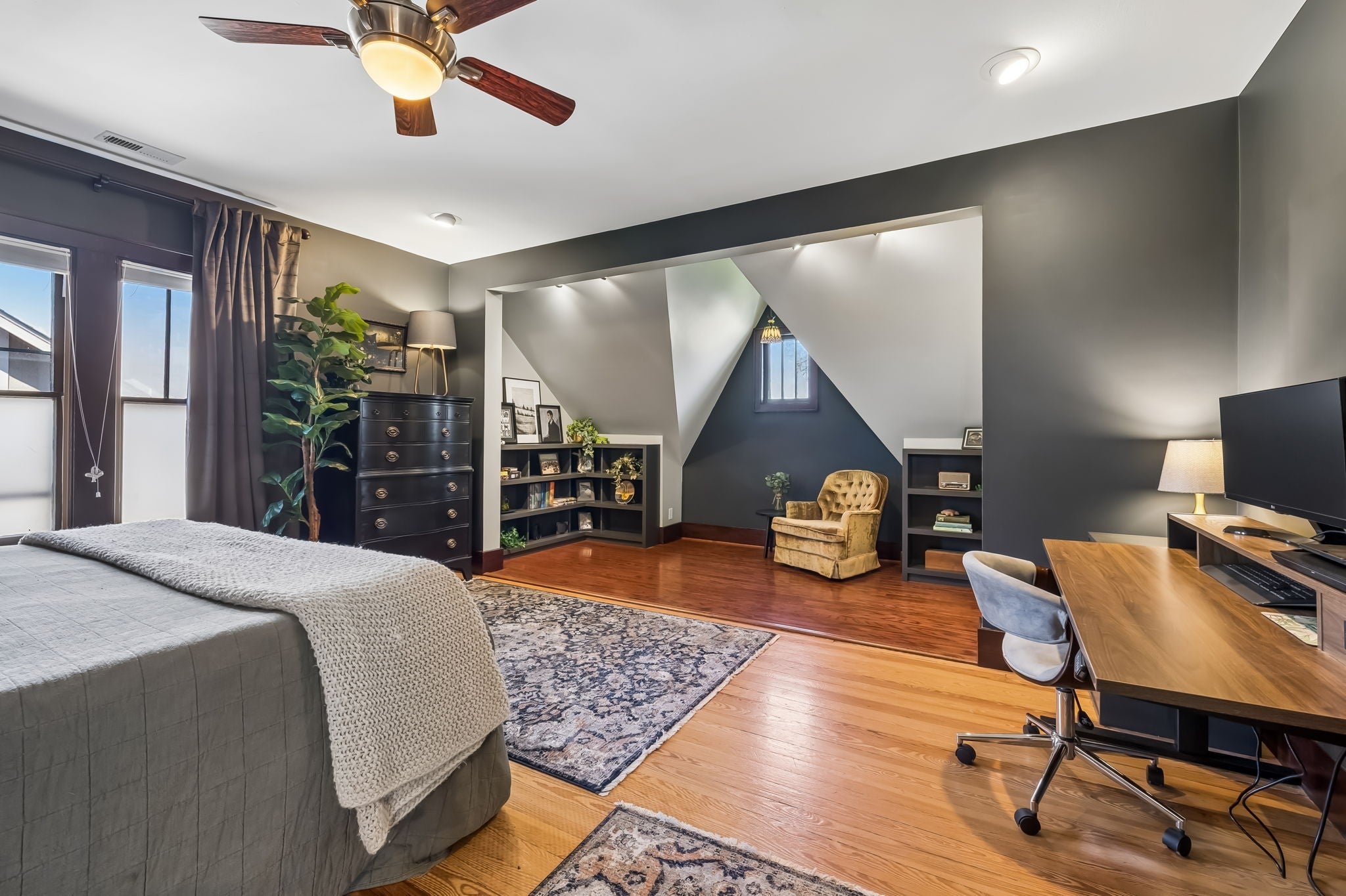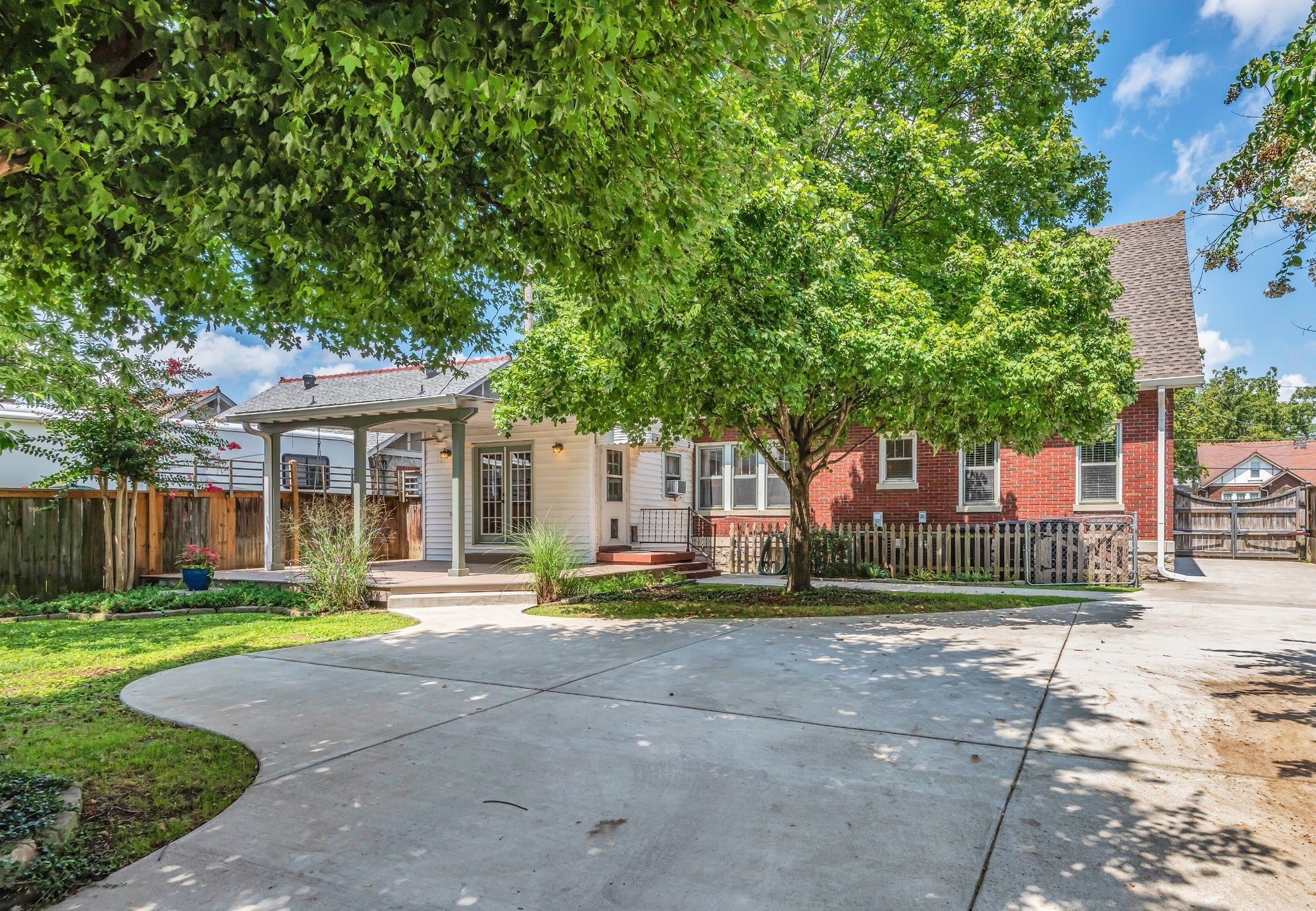 Nestled on Fairwin Avenue amid East Nashville’s evolving charm and historic homes, this brick Tudor delivers 5 bedrooms, 4 full baths, and over 2,900 sq ft of living space with hardwood floors throughout. High ceilings grace both levels, two with striking angles echoing the classic Tudor roofline. The refreshed kitchen shines with stainless appliances, granite counters, and backlit cabinetry. Main-level flexibility comes from two bedrooms (one a junior ensuite), perfect for an office, den, or playroom, while upstairs offers three more, including a roomy primary suite with sitting area. A first-floor utility room simplifies laundry and opens via double doors to the covered back deck, overlooking a park-like backyard shaded by mature trees. The finished two-bay brick garage—with 220v power, dedicated electric meter, and attic storage—lends itself to use as an office, gym, studio, or workshop. Recent upgrades feature a 2020 roof, new concrete driveway with ample parking, wave carport, spray-foam attic insulation, basement storage, plus a brand-new 2025 HVAC and water heater. Exceptionally clean, lightly lived-in, and meticulously maintained. Please see MLS Listing #314700 for Duplex Listing. No sign in yard.