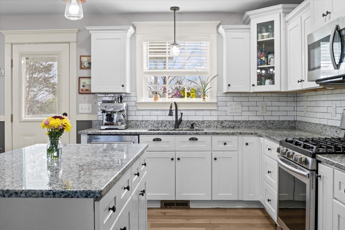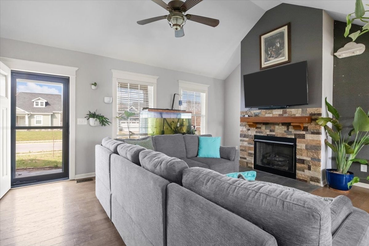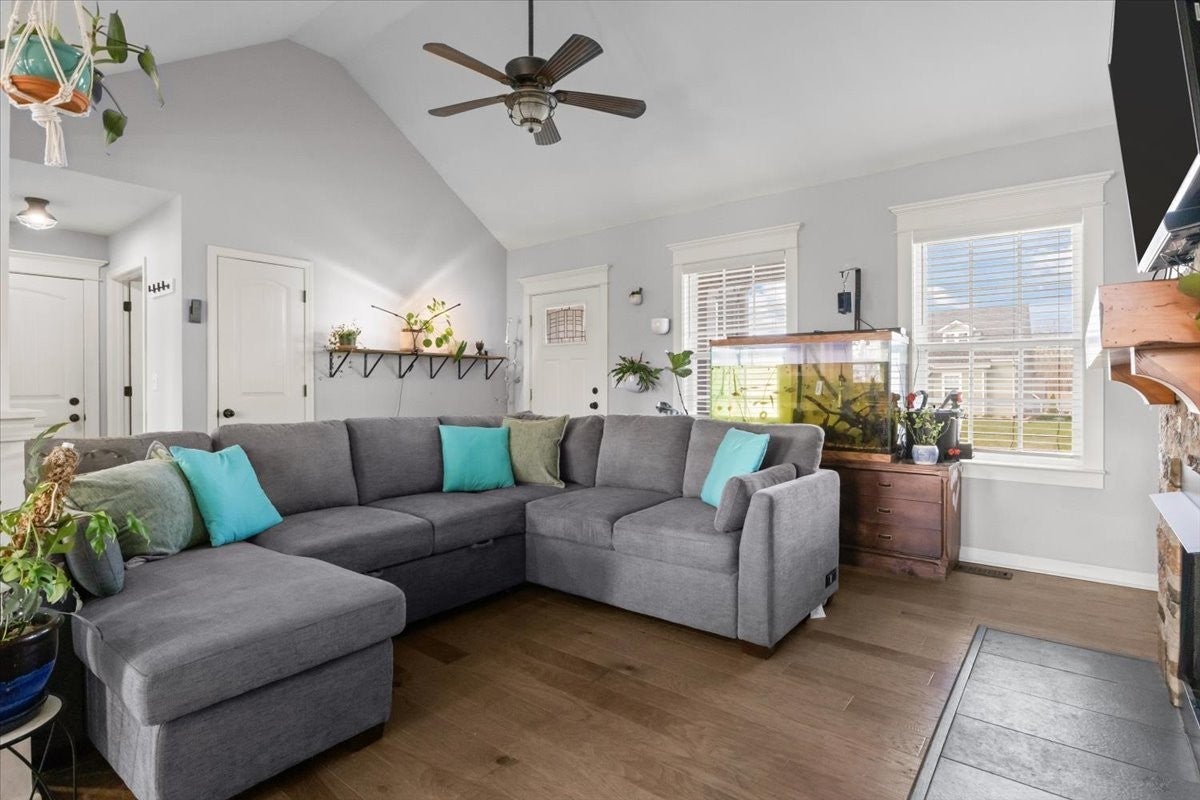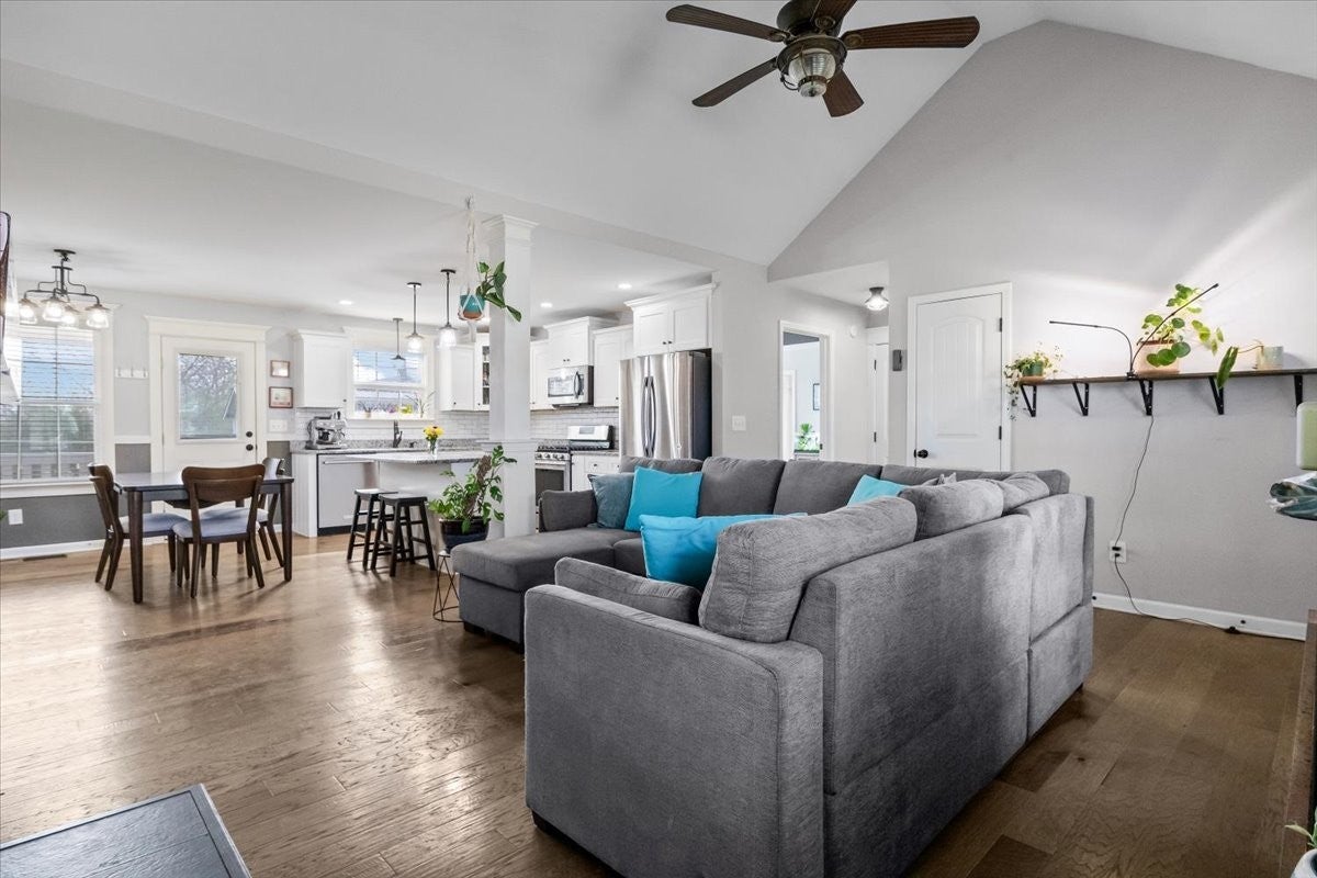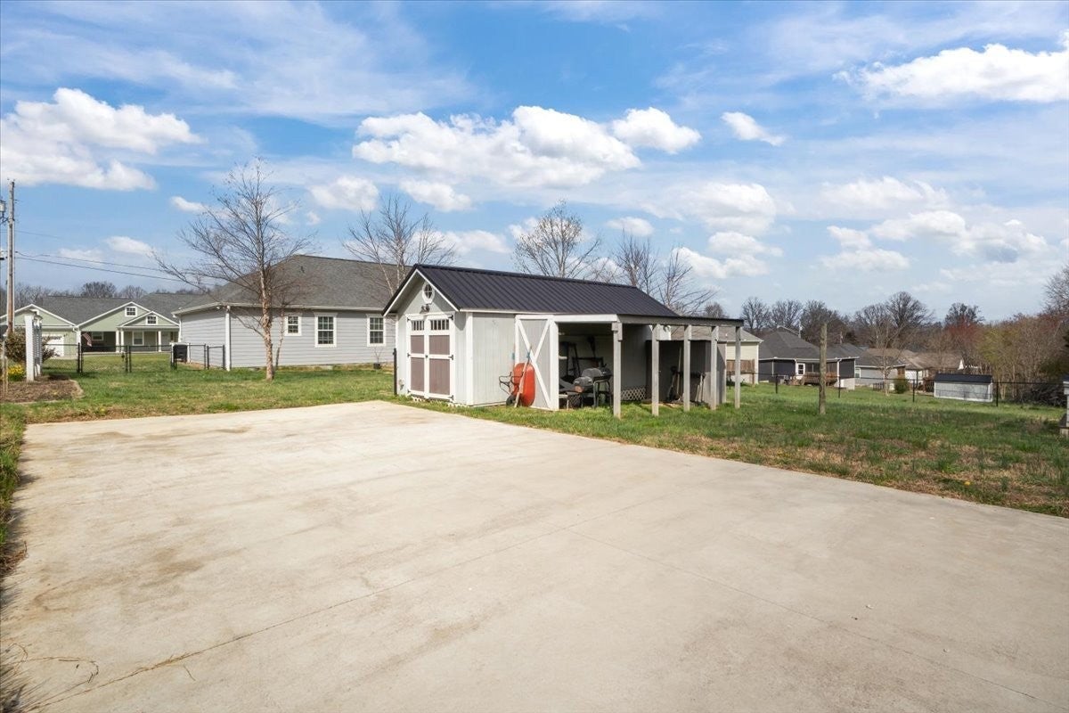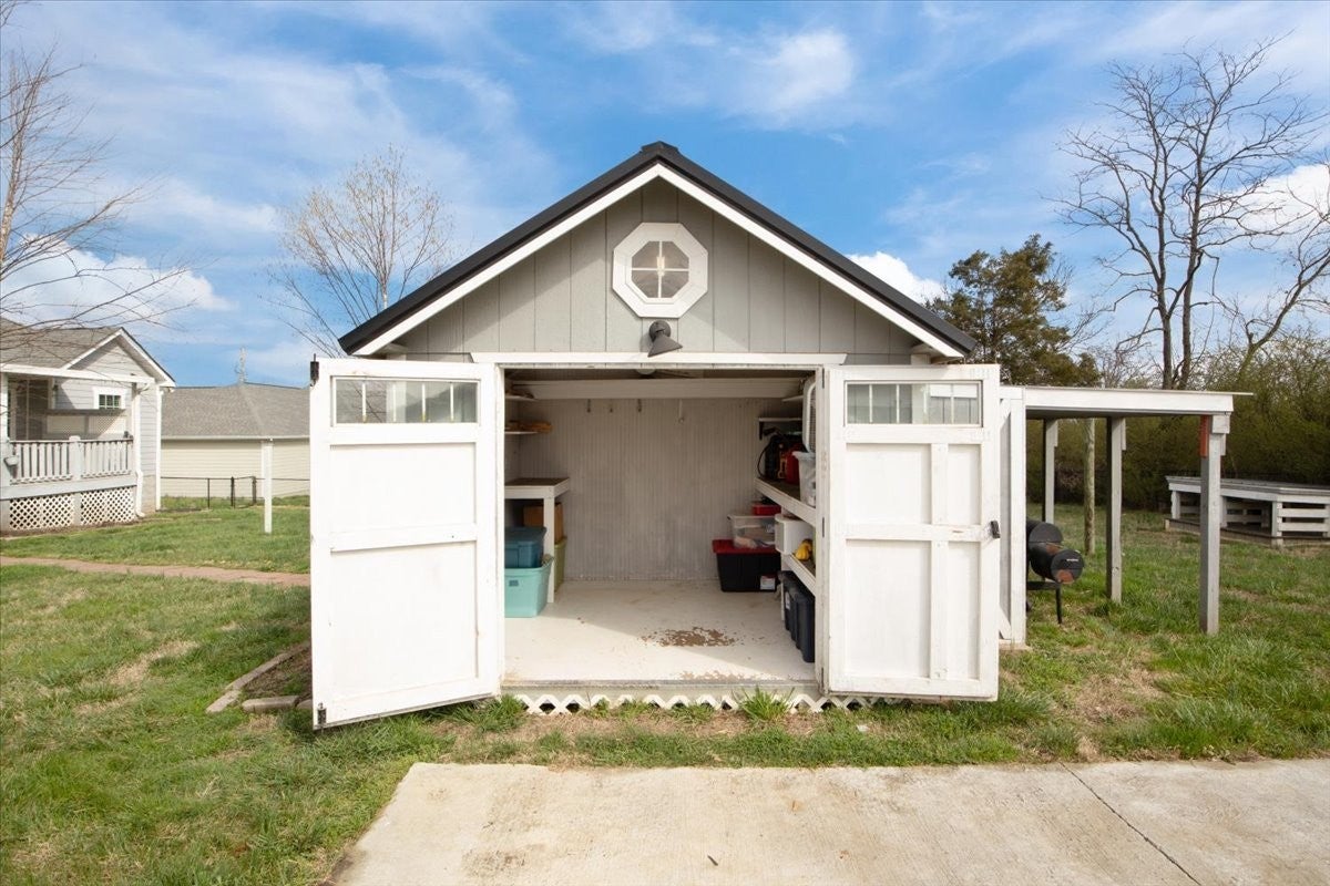 This is it! Welcome to this beautiful, well-maintained single-story home in the charming Bell Forge subdivision located in the scenic town of White Bluff. This light and airy home features a large and inviting living room with vaulted ceilings along with a generously sized kitchen including granite countertops, stainless steel appliances and an island - perfect for entertaining. With pre-engineered hardwood floors throughout, spacious bedrooms and modernized bathrooms, this property is move-in ready. The expansive, peaceful backyard that backs up to an open space is beautifully landscaped with mature trees, creating a private oasis for friends and family. The concrete pad is ideal for RV storage. Additionally, the storage building includes electricity, offering an ideal flex space to suit your needs. The home provides easy access to schools, parks, freeways, shops and restaurants, ensuring a quick commute to both Nashville and Dickson. Your dream home awaits.