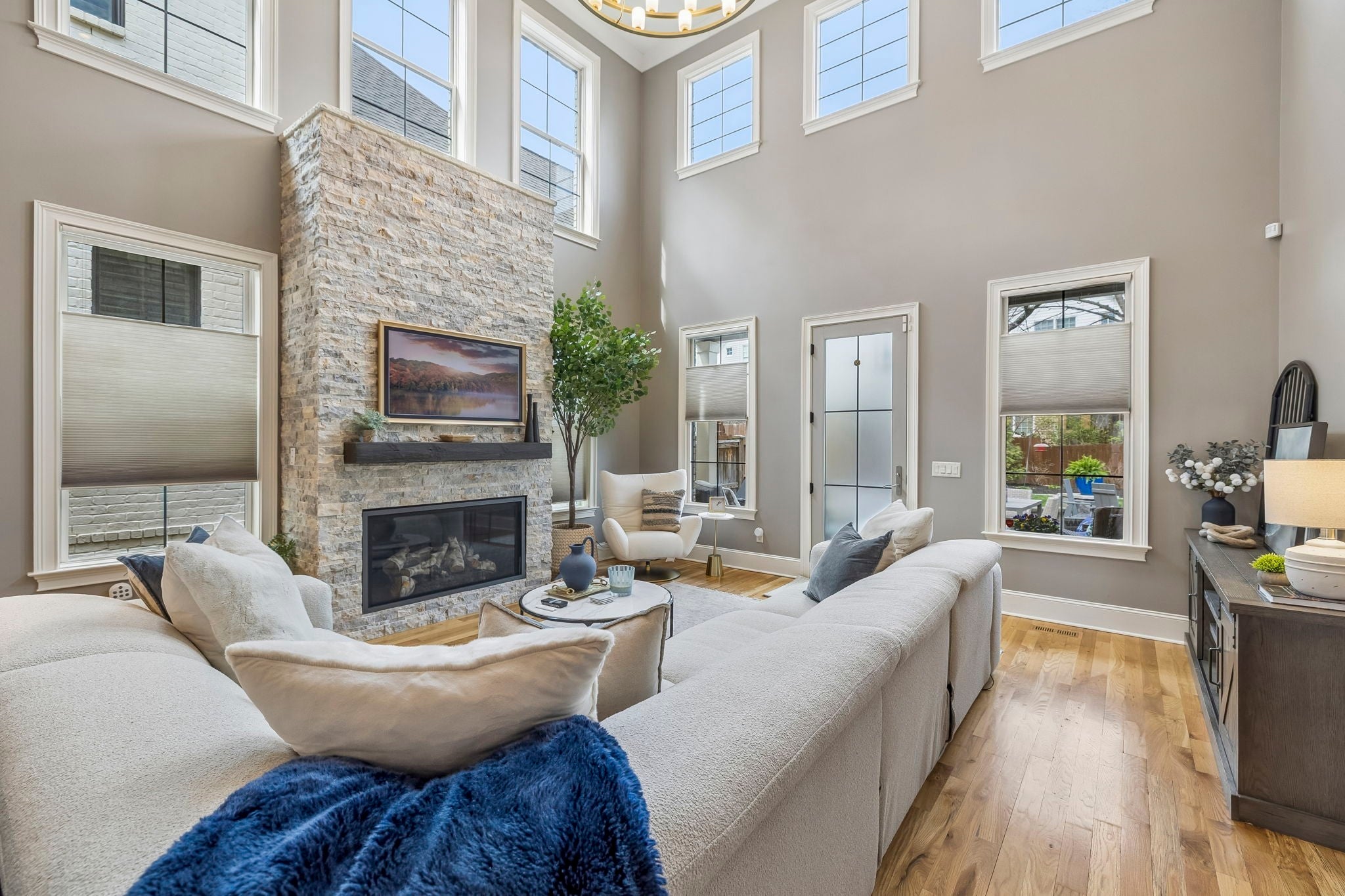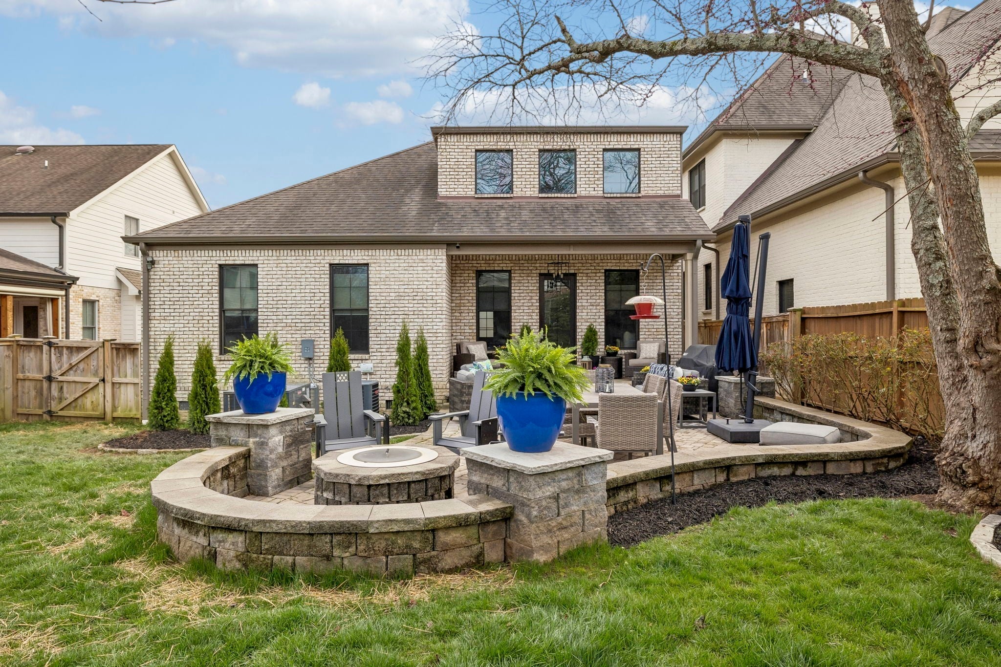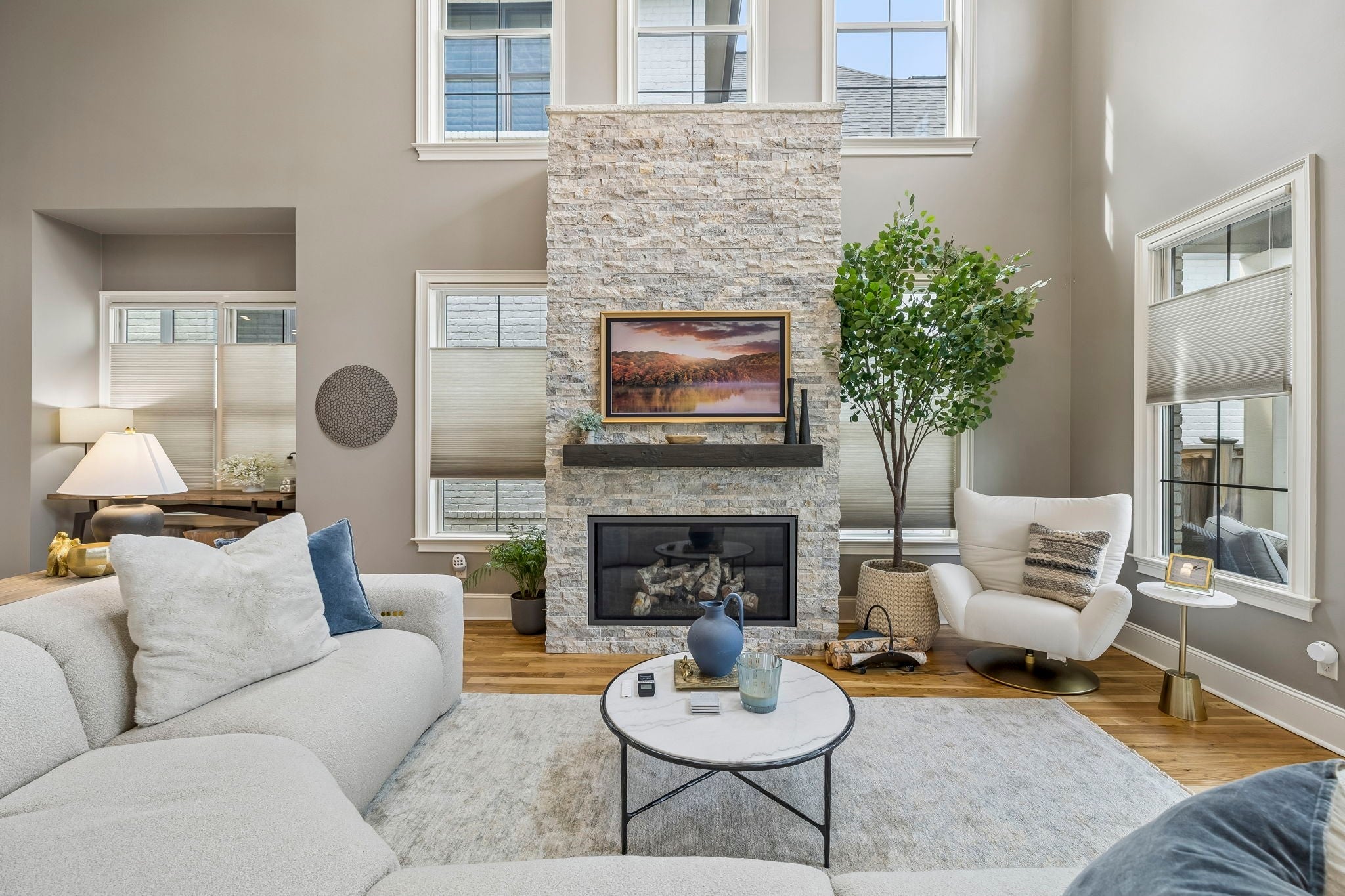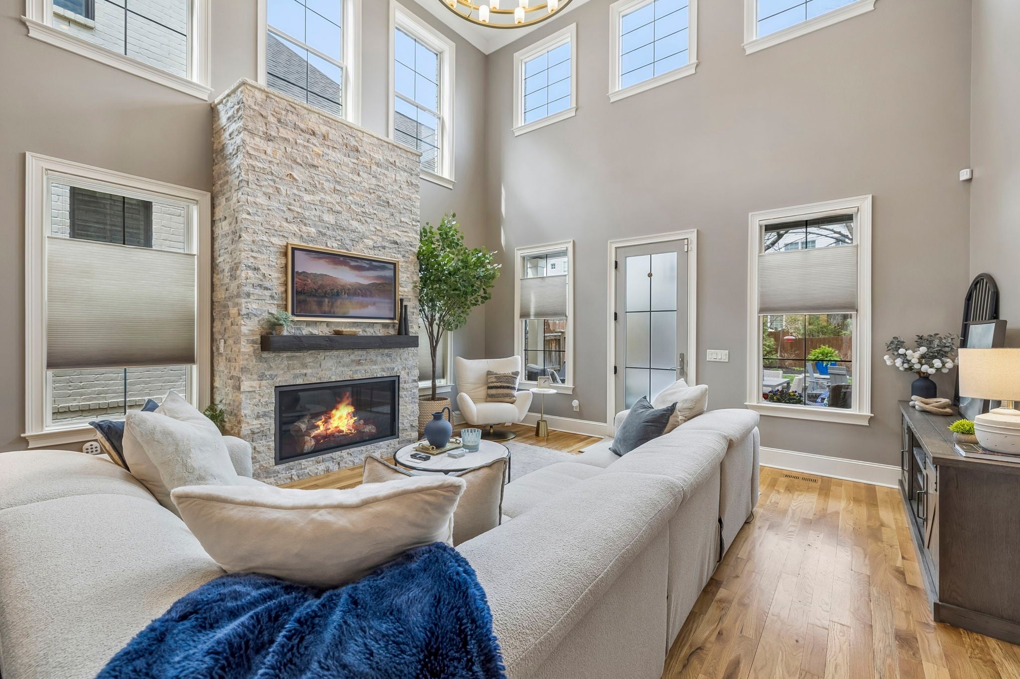 Beautifully crafted with recent upgrades custom brick & stone home with exceptional curb appeal and a professionally landscaped yard. This thoughtfully designed home features tall ceilings, extensive trim work, neutral designer finishes, and an incredible open floor plan ideal for both everyday living and entertaining. The main level offers a gorgeous front office or flexible living space, a formal dining room, and a butler’s pantry leading to a spacious walk-in pantry. The chef’s kitchen is the heart of the home with a massive kitchen island, and abundant workspace, all flowing seamlessly into the impressive two-story great room featuring a stunning new fireplace with gas logs. The secluded primary suite with updated bath and walk-in closet is conveniently located on the main level along with two additional bedrooms. Upstairs offers a versatile flex space perfect for a rec room, exercise room, or media area, along with an additional bedroom, large walk-in closet and full bath. Step outside to a manicured backyard with extended stone patio, covered porch, smokeless "Breeo" insert in stone firepit, and fenced backyard. Seller recently upgraded all the lighting, hardware, painted, redid the primary bathroom, and added Vivint Security system to keep an eye on the pups. With 4 bedrooms, 3.5 baths, and flexible living spaces throughout, this custom home offers both comfort and sophistication in a beautifully maintained setting.