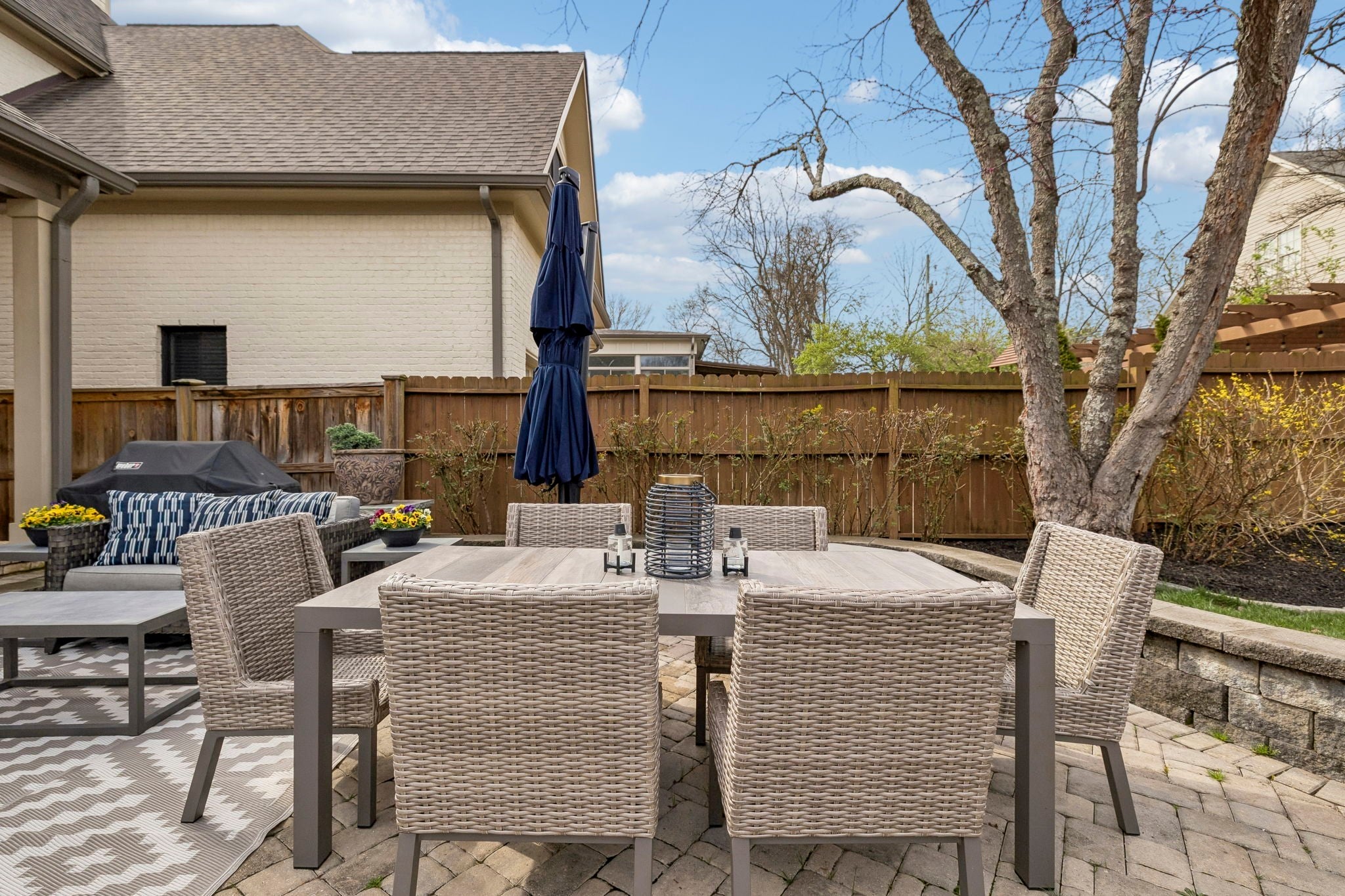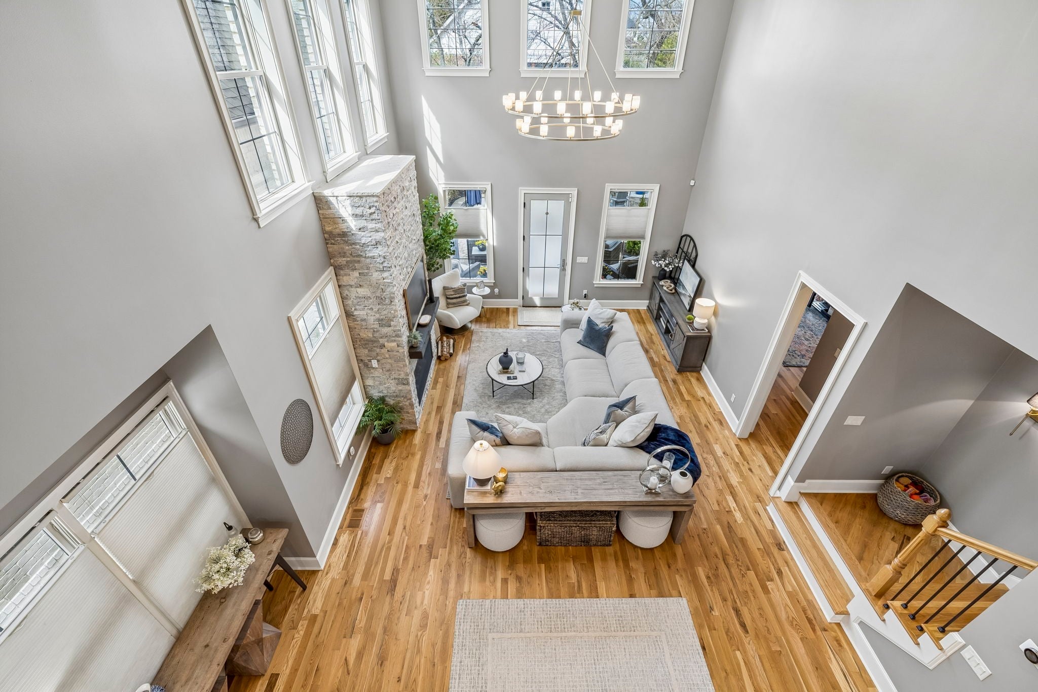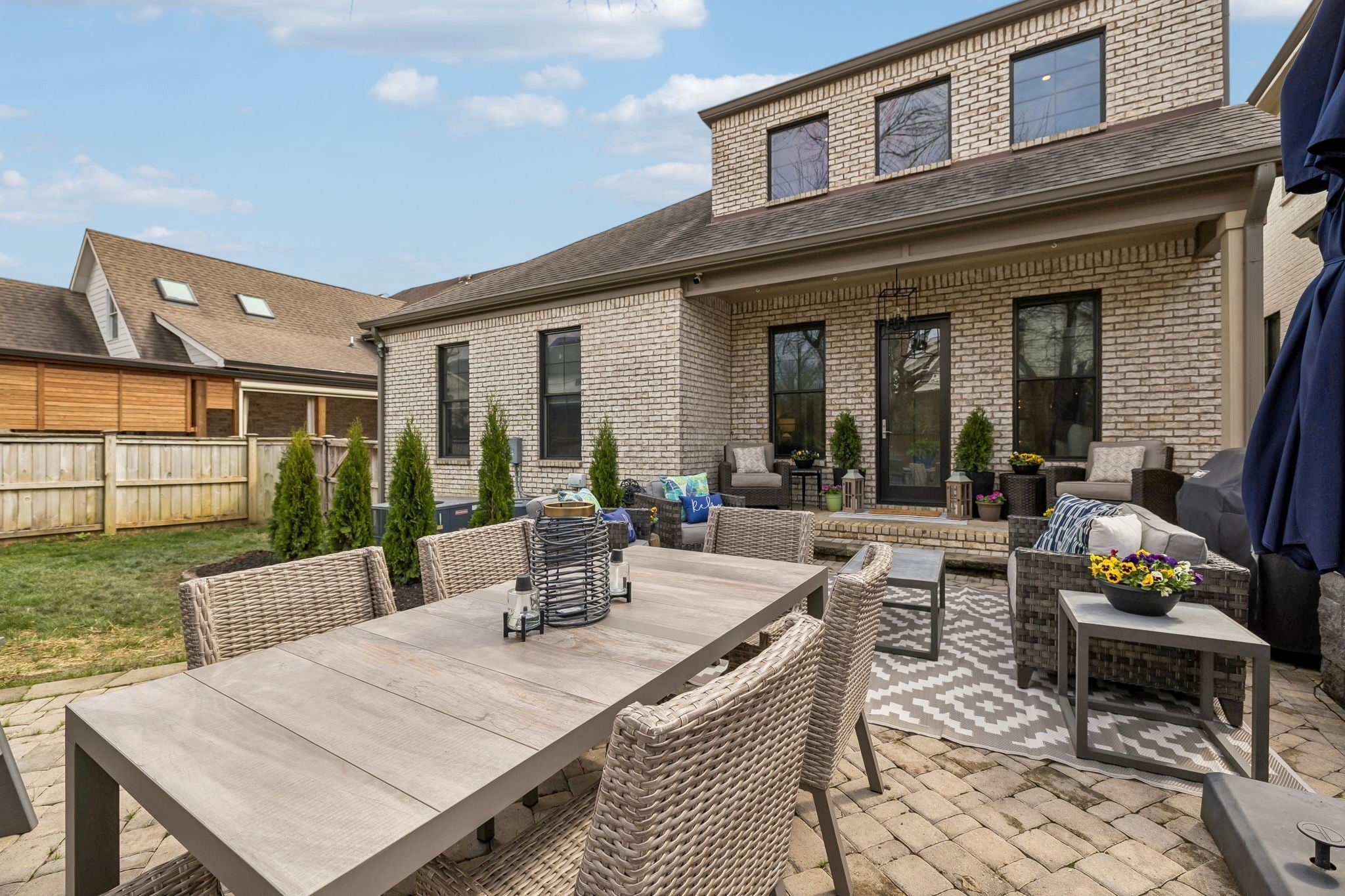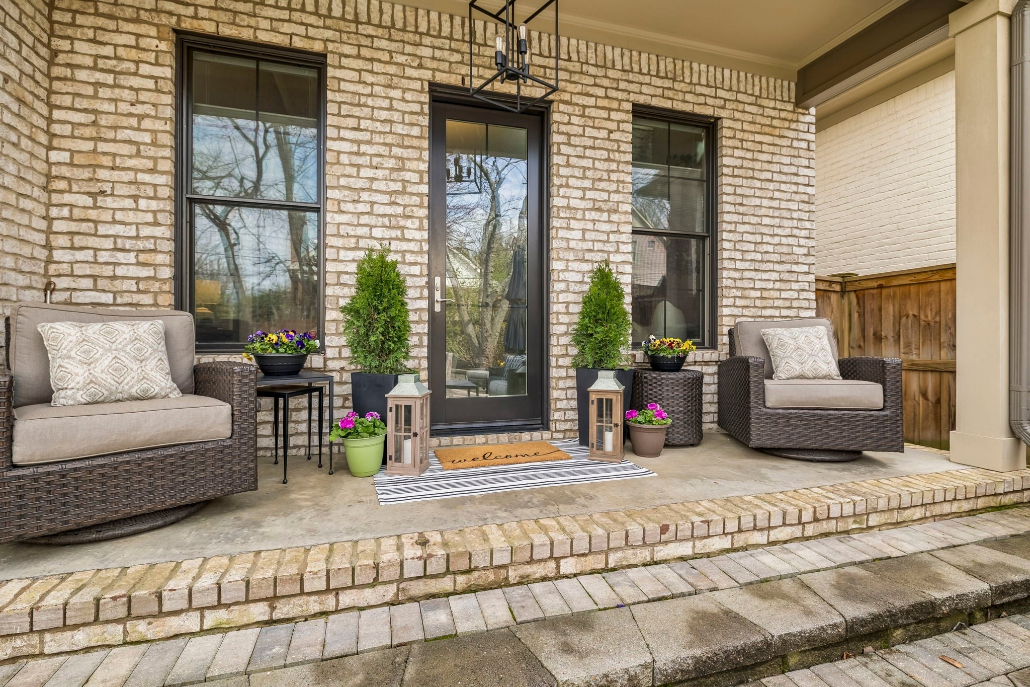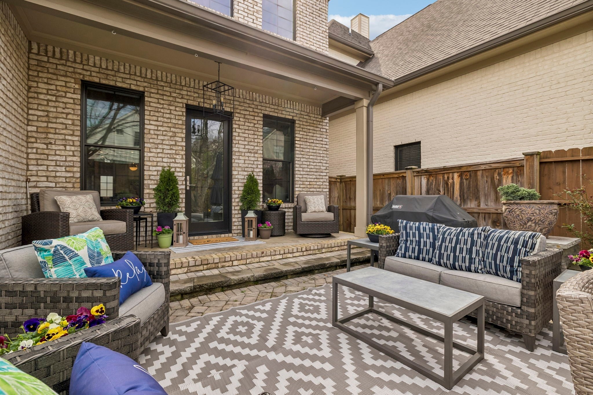 Beautifully crafted with recent upgrades custom brick & stone home with exceptional curb appeal and a professionally landscaped yard. This thoughtfully designed home features tall ceilings, extensive trim work, neutral designer finishes, and an incredible open floor plan ideal for both everyday living and entertaining. The main level offers a gorgeous front office or flexible living space, a formal dining room, and a butler’s pantry leading to a spacious walk-in pantry. The chef’s kitchen is the heart of the home with a massive kitchen island, and abundant workspace, all flowing seamlessly into the impressive two-story great room featuring a stunning new fireplace with gas logs. The secluded primary suite with updated bath and walk-in closet is conveniently located on the main level along with two additional bedrooms. Upstairs offers a versatile flex space perfect for a rec room, exercise room, or media area, along with an additional bedroom, large walk-in closet and full bath. Step outside to a manicured backyard with extended stone patio, covered porch, smokeless "Breeo" insert in stone firepit, and fenced backyard. Seller recently upgraded all the lighting, hardware, painted, redid the primary bathroom, and added Vivint Security system to keep an eye on the pups. With 4 bedrooms, 3.5 baths, and flexible living spaces throughout, this custom home offers both comfort and sophistication in a beautifully maintained setting.