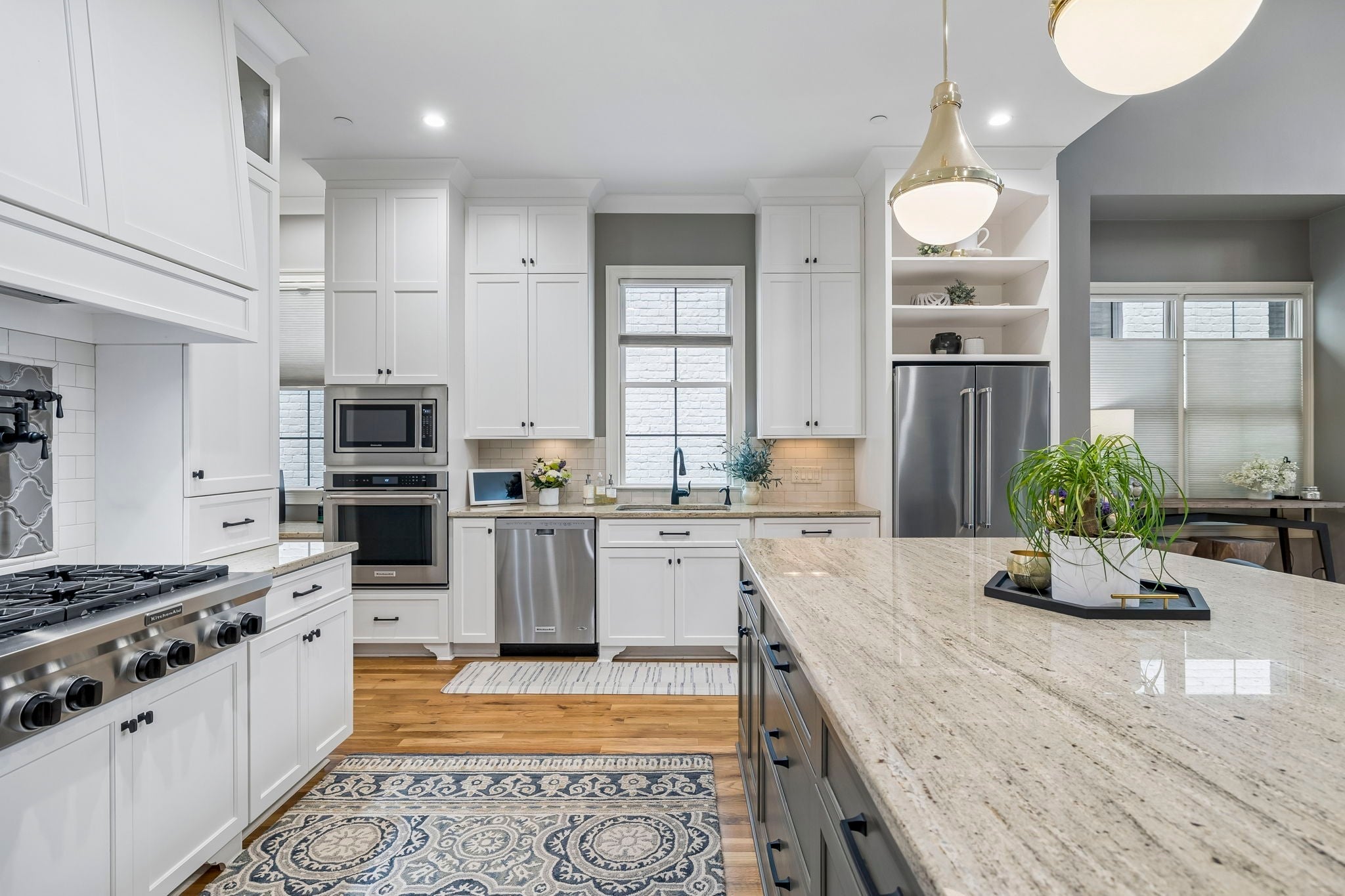 - Oven, Gas Range, Dishwasher, Microwave, Stainless Steel Appliance(s)