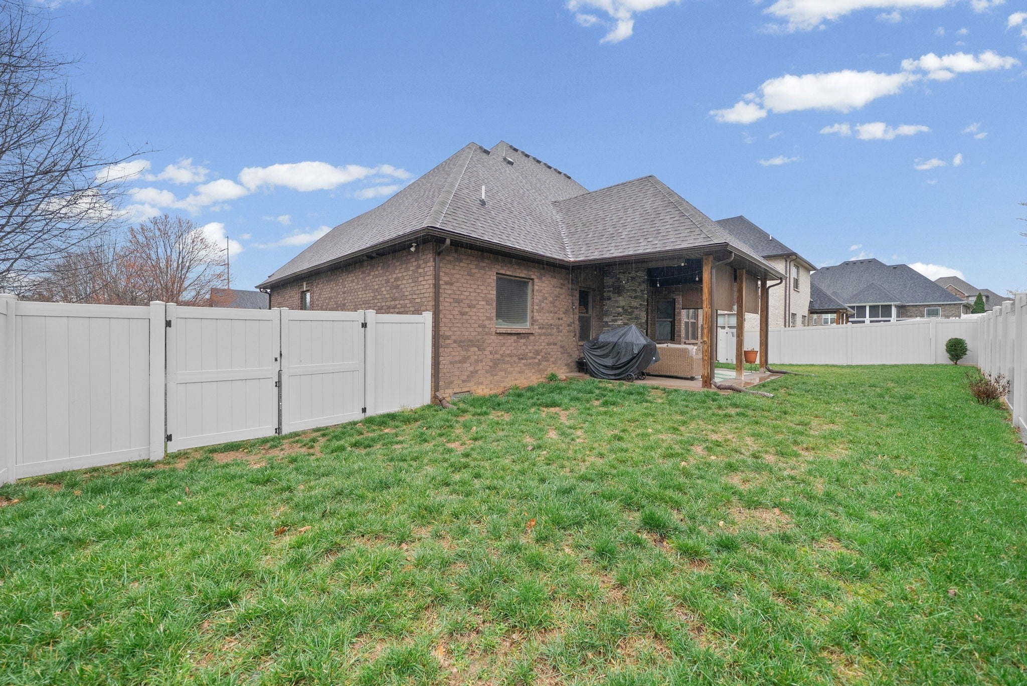 This fully furnished turn-key all brick home is a beauty and comes with many perks. Comes with a Pelaton Bike and Row machine adding extra value for those looking to maintain an active and healthy lifestyle from the comfort of your own home. Also has an option to choose programs for maintaining workout sessions.- approx 11 miles to Fort Campbell. Situated on a corner lot in a desirable neighborhood with sidewalks to enjoy the area. The setting offers both convenience and comfort. Easy access to the interstate, shopping, and local amenities while still being tucked into a desirable neighborhood. The covered front porch adds a welcoming touch and the homes layout offers a functional space, well maintained, making it easy to settle in with little to no effort! Move in ready and thoughtfully equipped. The primary bedroom offers a massive space for furniture and even a potential office space depending on the future owners. The primary bathroom is stunning tiled shower with a rainforest style shower head and a retractable showerhead. The huge tub is perfect for those days when relaxing is a must. The triple vanities offer plenty of space to have a separate space for yourself. The high ceiling living room offers space for entertaining. The open kitchen and living room concept with a large island in the middle is convenient for entertaining. An extra bedroom and full bathroom is strategically placed for guests or long term living. Huge bedrooms upstairs with a spacious tub/shower combo. The tub is spacious as well. Let's get to the bonus room, which is a favorite offering a half bathroom and a huge closet! Could potentially be a 5th bedroom! The backyard is fenced in with a privacy fence and furniture to stay as well. ALL FURNITURE CONVEYS WITH HOME.