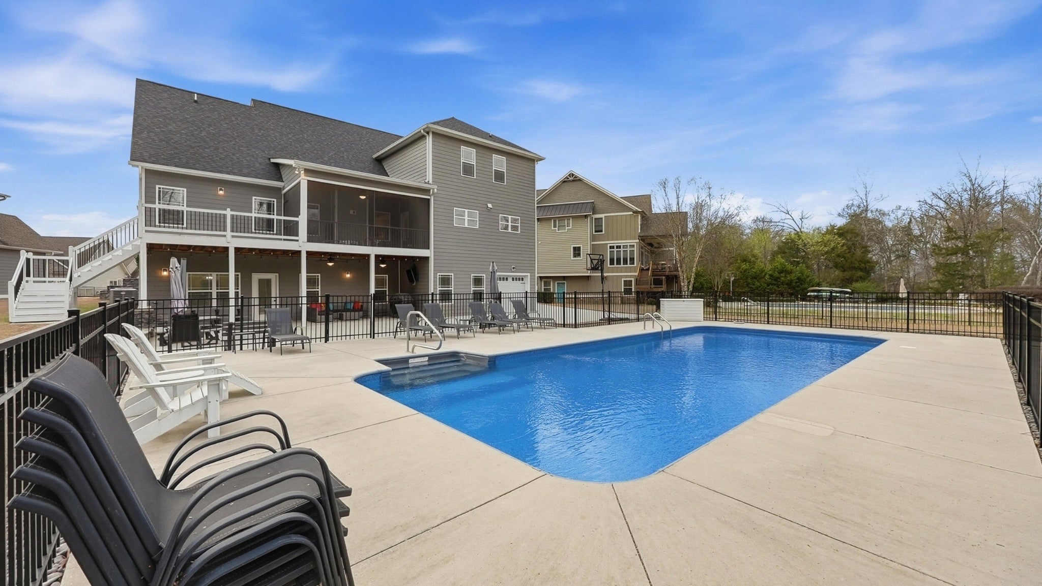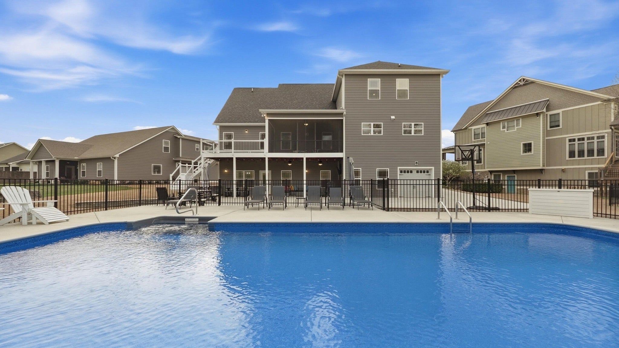 Situated on one of Providence Point's largest homesites, this stunning 6-bedroom home offers over 5,100 square feet of beautifully maintained living space designed for both everyday comfort and exceptional entertaining. Designed for comfortable everyday living as well as large-scale gatherings, the home features generous living spaces and a highly functional layout throughout. Hardwood flooring extends throughout the home with no carpet, creating a timeless and cohesive feel. The spacious kitchen serves as the heart of the home and features a large center island with seating for five, along with additional breakfast and dining areas ideal for gathering with family and friends. The thoughtfully designed floor plan offers both functionality and privacy, with almost all bedrooms providing private bath access--ideal for guests or multigenerational living. A generous bonus room offers flexible space for recreation, media, or play, while one upstairs bedroom includes its own private bonus room, perfect for a teen suite, private office, or creative studio. The walk-out basement includes a kitchenette and provides an excellent setup for an in-law suite or extended guest accommodations. A Storm Guard shelter, built to exceed FEMA standards, offers an added level of safety and peace of mind. Outdoor living is equally impressive, featuring a newer in-ground pool with expansive decking that creates a private backyard retreat ideal for summer entertaining. A screened porch and additional covered porch provide multiple spaces for relaxing or gathering, while the spacious yard offers ample room for recreation and outdoor activities.