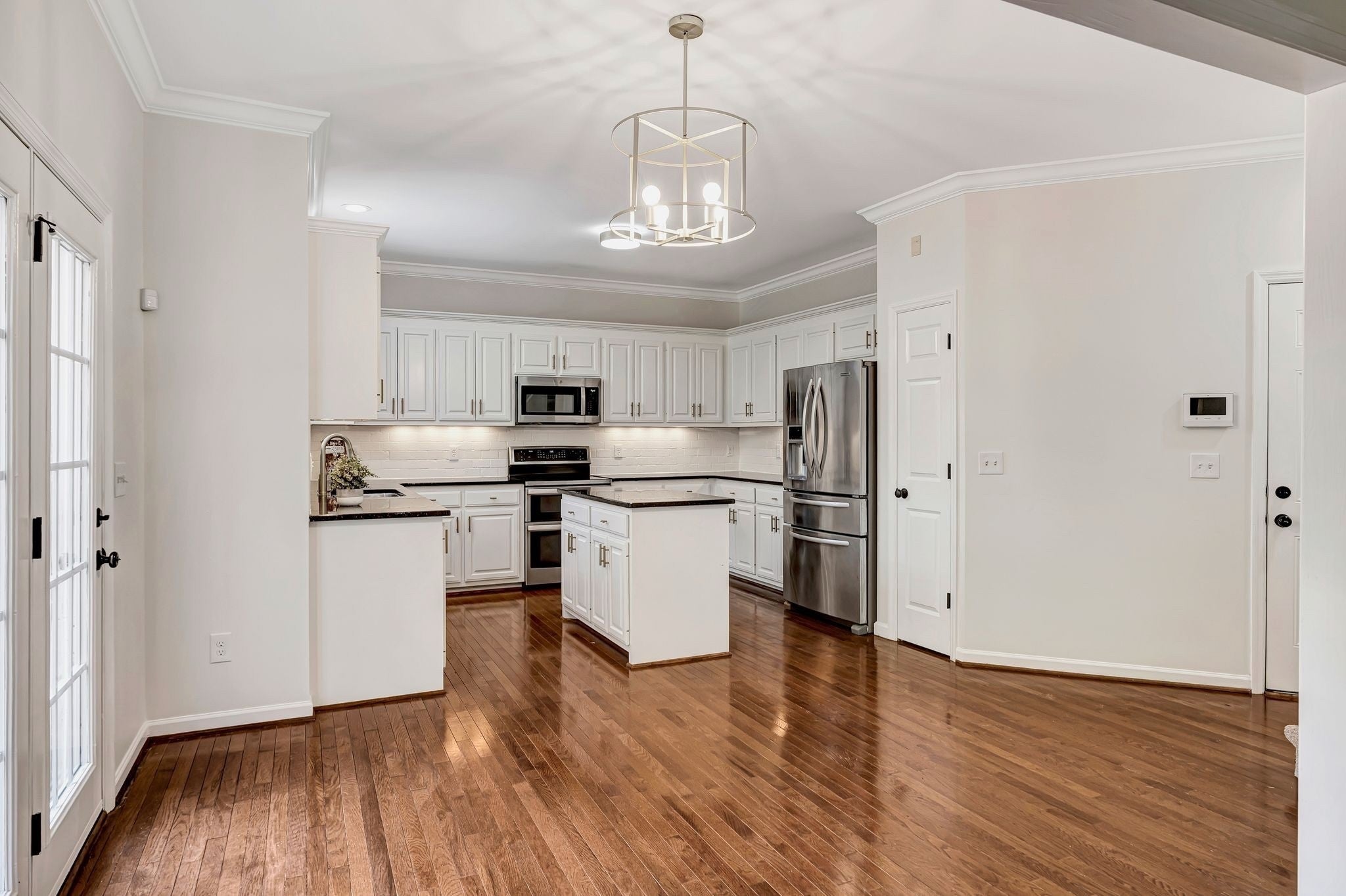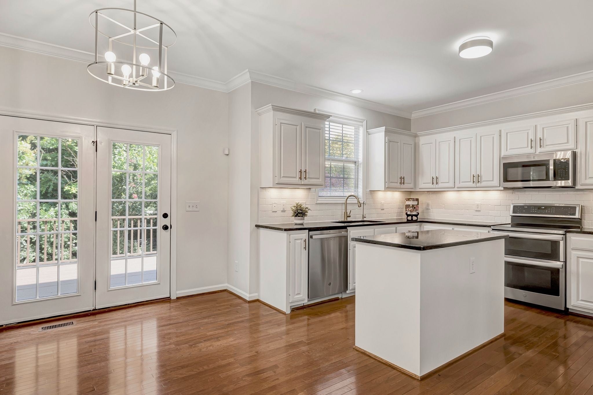 - Electric Range, Dishwasher, Dryer, Microwave, Refrigerator, Stainless Steel Appliance(s), Washer