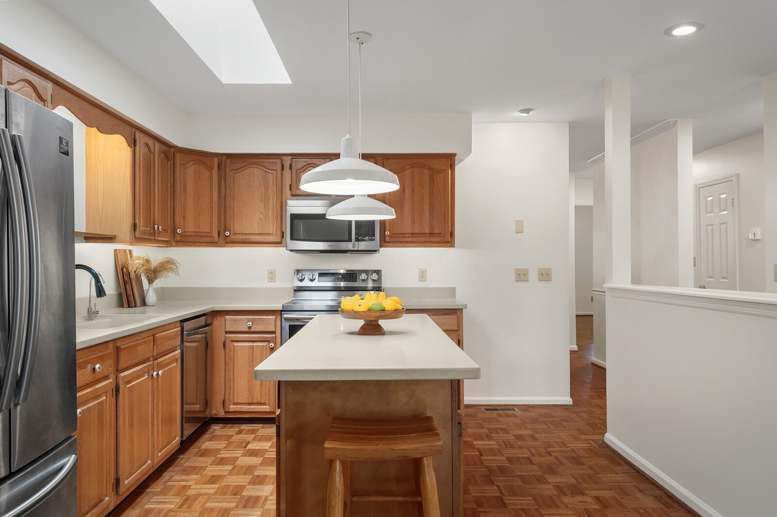 - Electric Oven, Electric Range, Dishwasher, Disposal, Dryer, Microwave, Refrigerator, Stainless Steel Appliance(s), Washer