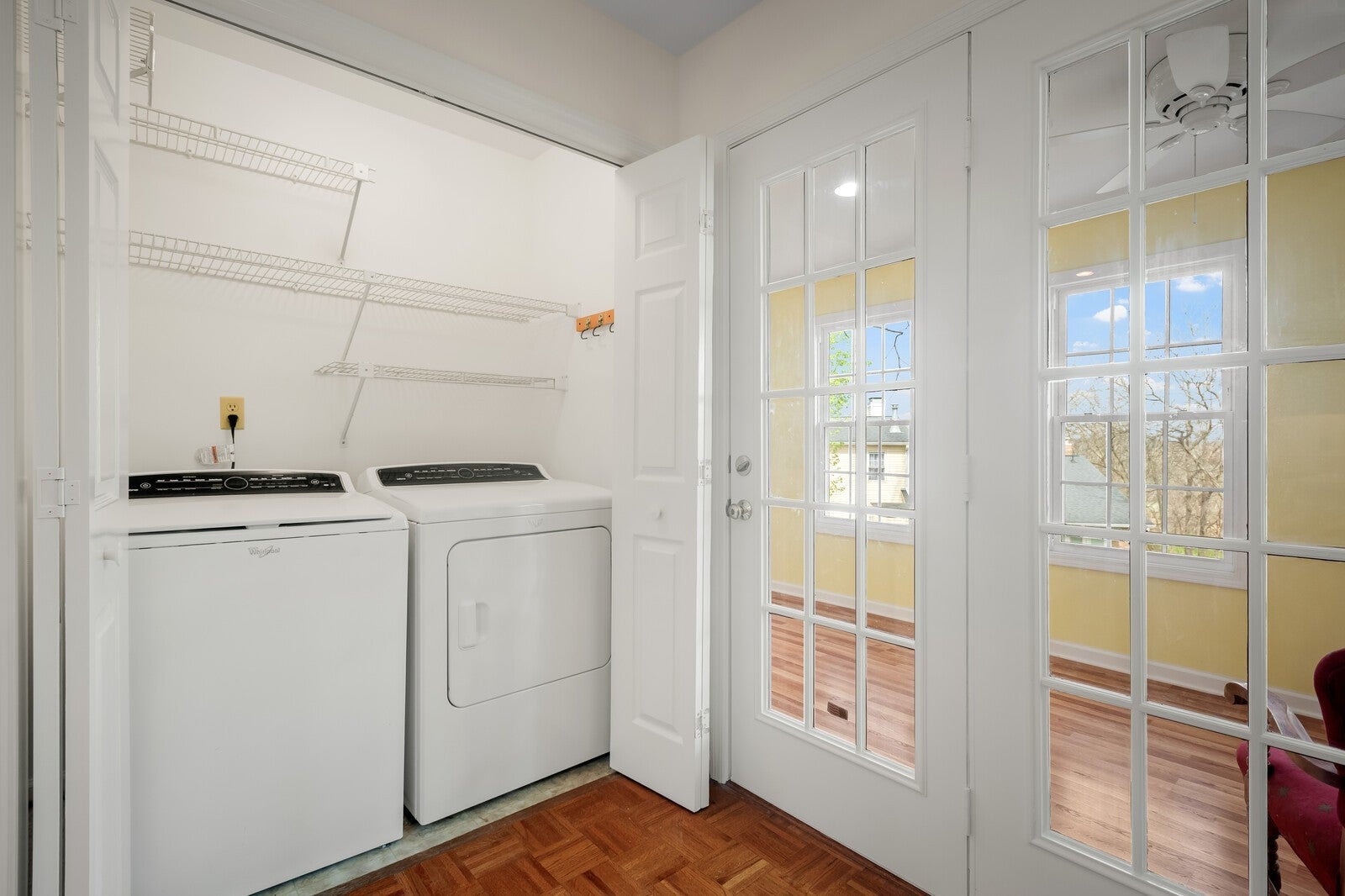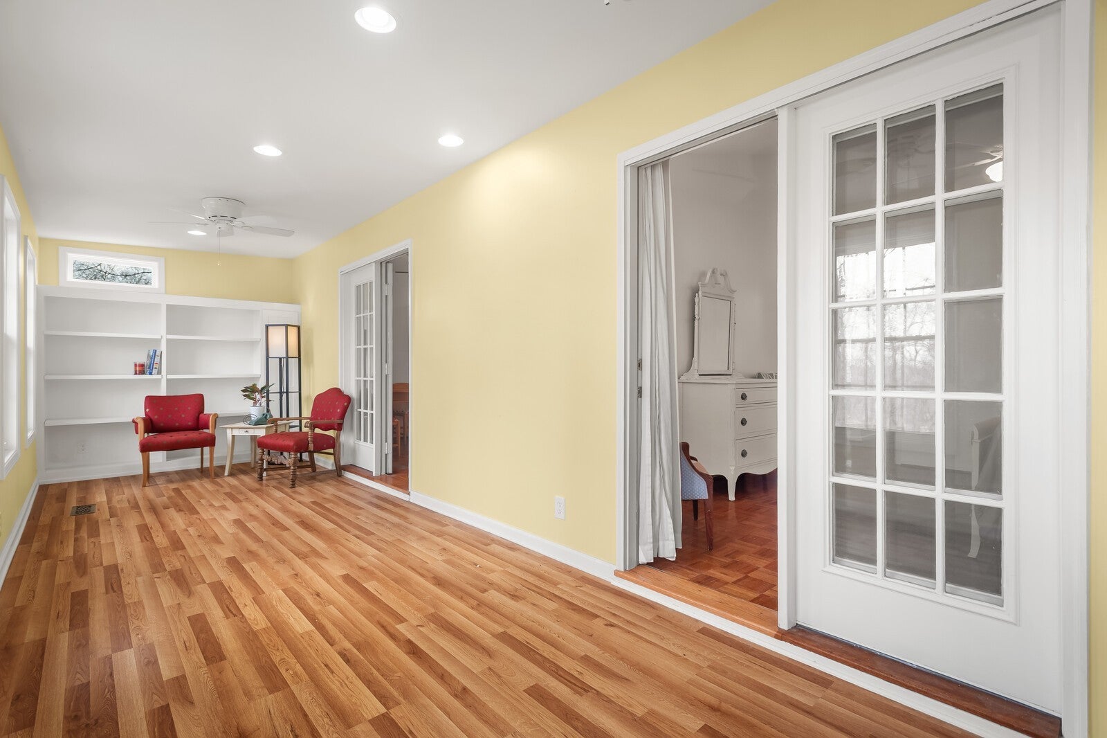 - Bookcases, Built-in Features, Ceiling Fan(s), Extra Closets, High Ceilings, Pantry, Walk-In Closet(s)