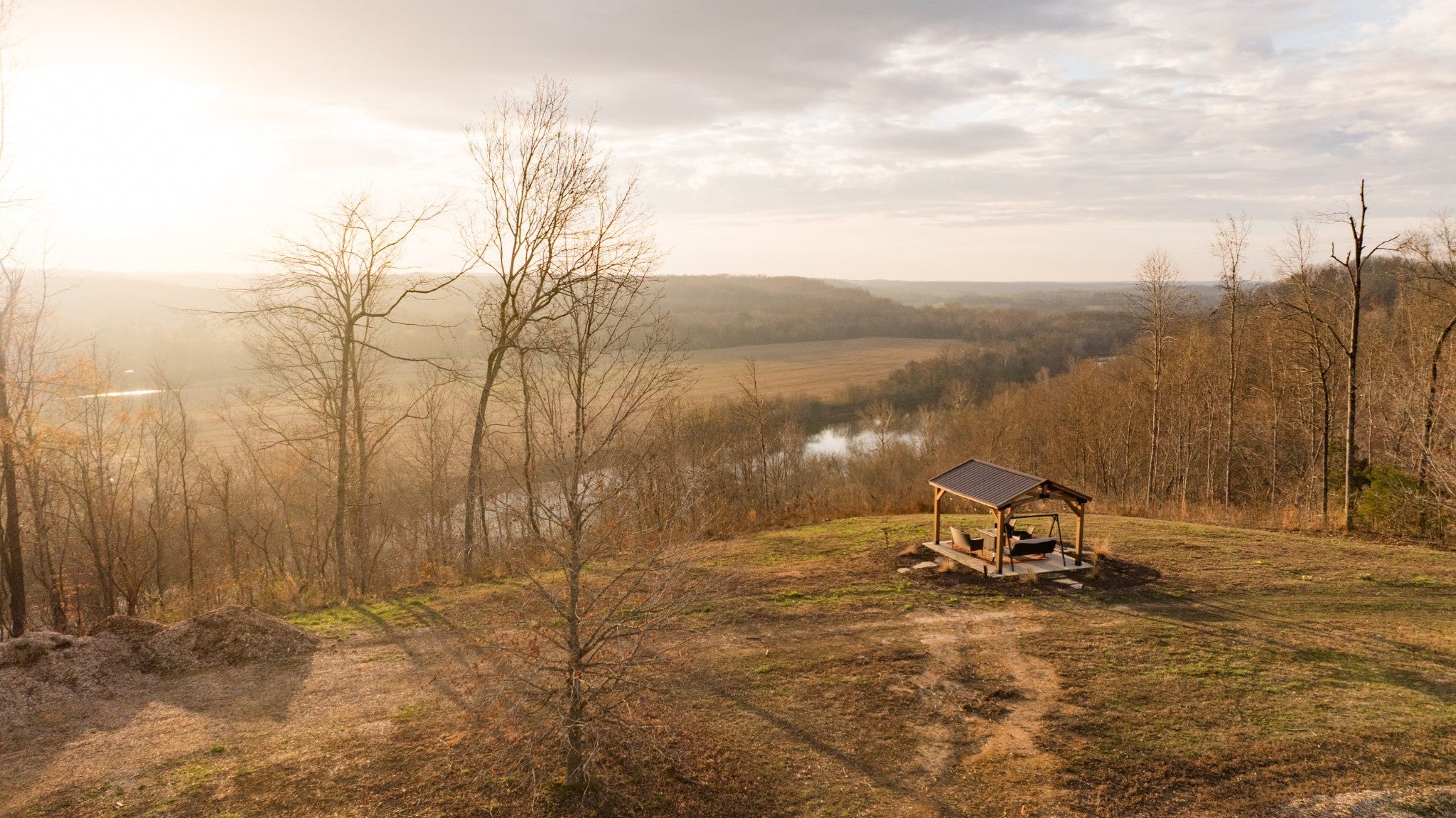 Extraordinary 104-acre riverfront farm offering over 1,800 feet of frontage along the Duck River with sweeping panoramic views across rolling farmland and countryside. The property features a thoughtfully designed barndominium completed in 2024, offering 3 bedrooms and 2 bathrooms with modern comfort in a relaxed rural setting. A long private driveway winds through a beautiful mix of open pasture and mature hardwoods, creating both privacy and picturesque approach to the home. Positioned to capture the landscape, the property enjoys miles of unobstructed views overlooking the river and surrounding large-acreage farms, providing a rare sense of space and tranquility. In addition to the existing residence, the property offers multiple exceptional build sites overlooking the river, ideal for creating a multi-home family compound or future estate residence. Outdoor improvements add charm and functionality, including a firepit gathering area, garden space, chicken coop, and a storage barn. Enjoy beautiful sunrise and sunset views from the pergola that overlooks the river. The diverse landscape supports abundant wildlife including deer and turkey, and has previously had successful dove fields, offering excellent recreational and sporting opportunities. The balanced land composition provides opportunities for recreation, hobby farming, livestock, or simply enjoying the natural beauty of the setting. A rare opportunity to own a large riverfront tract with modern improvements, privacy, and breathtaking views.