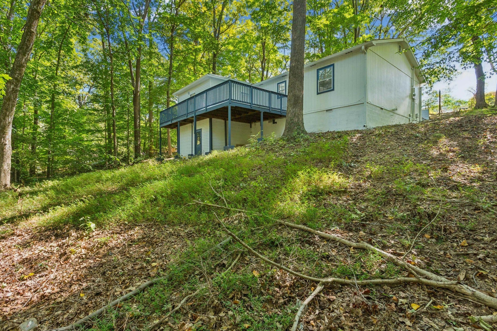 This is a must-see. Home has been completely remodeled. Charming tile bathrooms with modern lighting, spacious kitchen with stainless appliances. Roof is less than 3 months old. Large covered front porch. Huge deck out back overlooking the woods. The home is sitting on a dead end street. Two convenient storage buildings. You won't be disappointed. Owner terms may be considered.