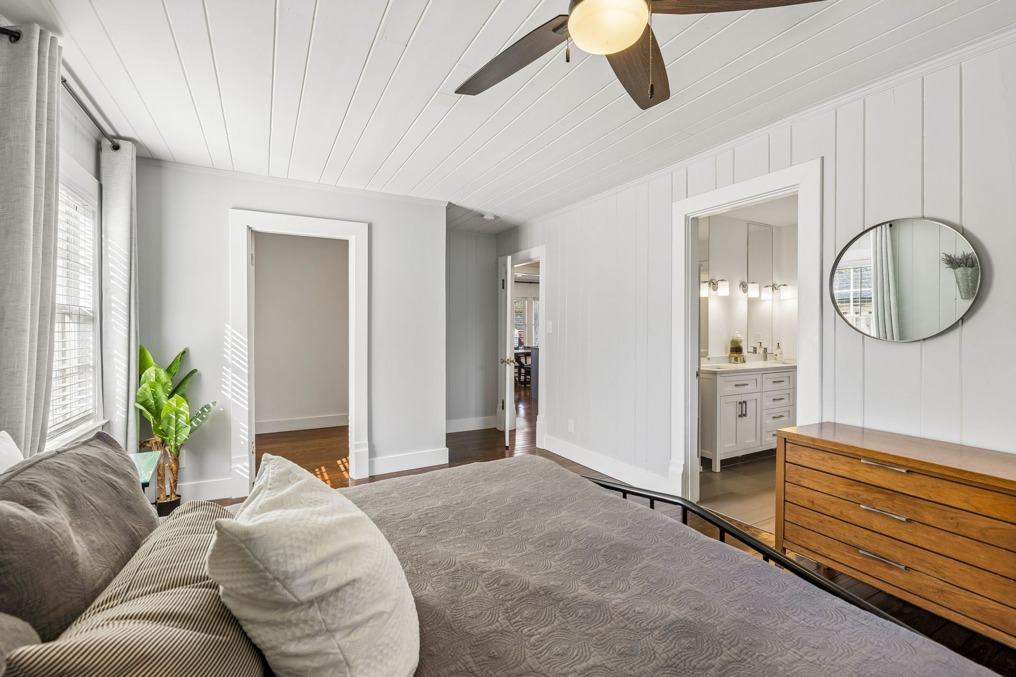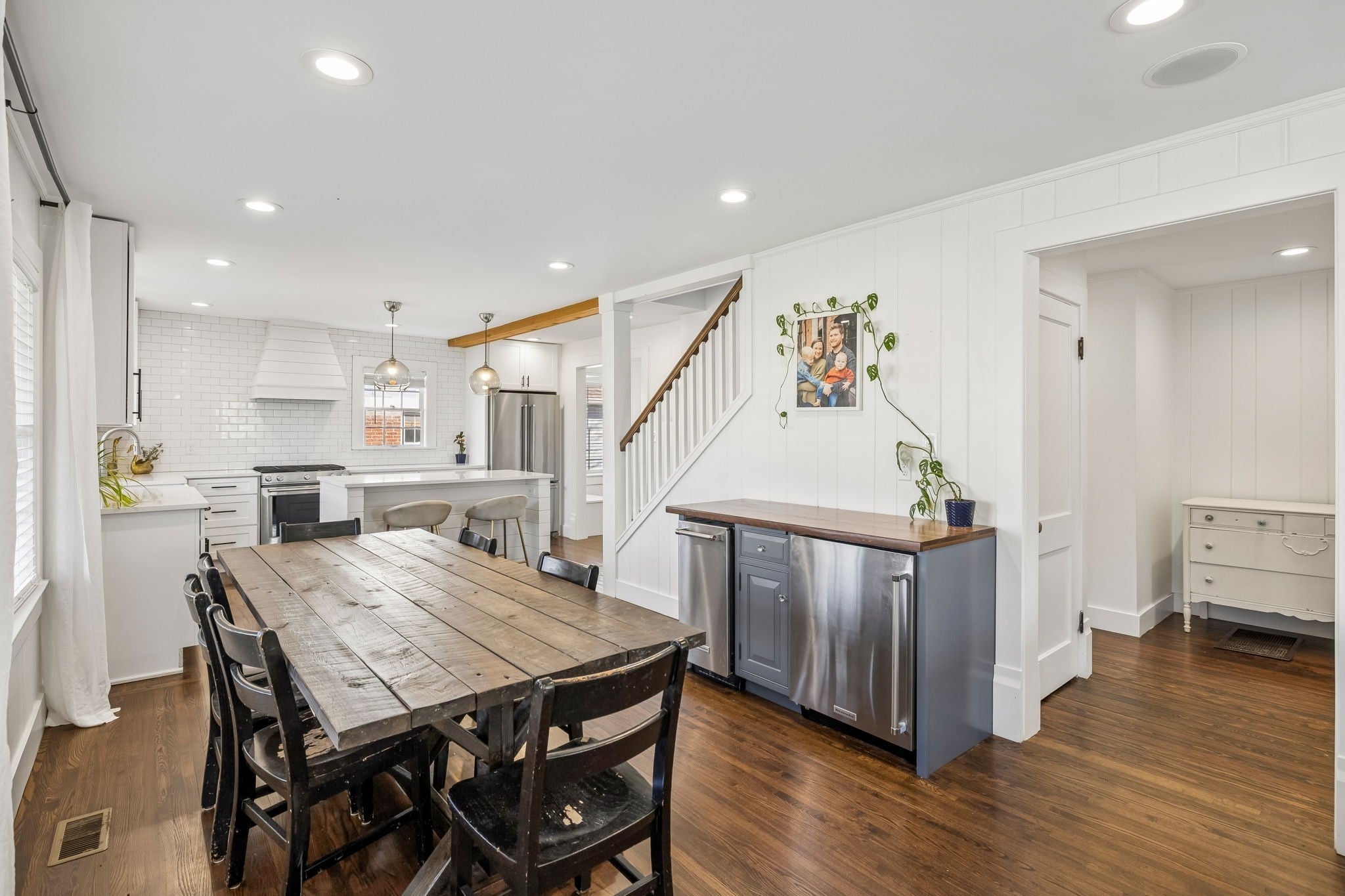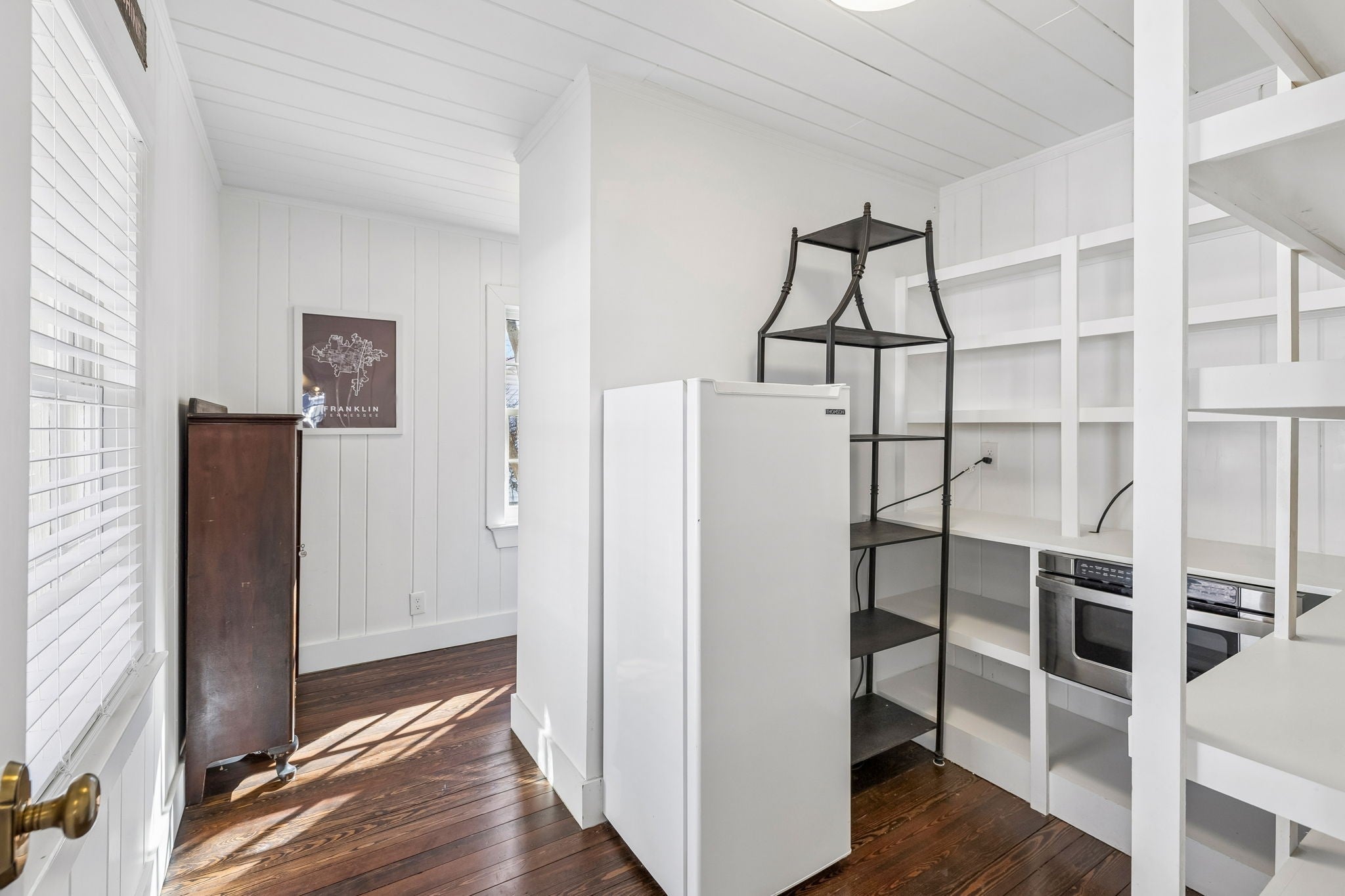 Located in one of the most highly desired areas of Downtown Franklin, this beautifully updated home offers a rare opportunity to live just minutes from the heart of downtown Franklin, Five Points, Main Street shopping, dining, and local events—while enjoying the charm of an established, tree-lined neighborhood. 2,100~ sq ft home features 3 bedrooms and 2.5 baths, including a main-level primary suite. The main floor boasts 1.5-inch white oak floors, old-growth heart pine floors, a living room with a gas fireplace and antique mantel, a custom dry bar, walk-in pantry, half bath, and a dedicated laundry area. The kitchen is open to the main living spaces, ideal for everyday life and entertaining. Upstairs, you’ll find two bedrooms with 9-foot ceilings and a full bath. The ~700 sq ft unfinished basement offers excellent storage and features a walkout greenhouse with exciting potential. A large, flat, fenced backyard adds even more space to relax, play, or entertain. Recent updates include renovated kitchen and bathrooms, built-in closets and pantry, new electrical and plumbing, fixtures, windows, cedar siding, copper half-round gutters, landscaping, and a new roof. The deep 60 x 222 lot provides space for a future rear addition or larger garage apartment, subject to buyer verification and approvals