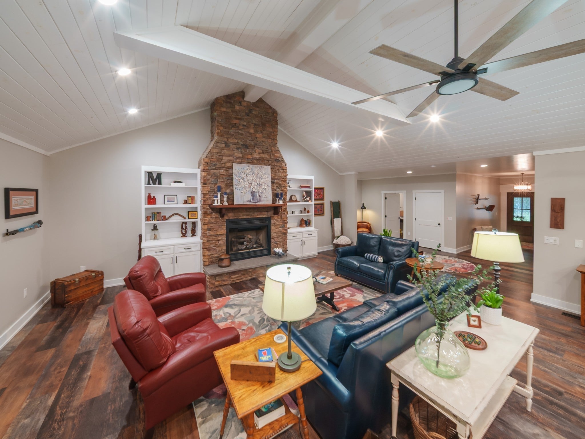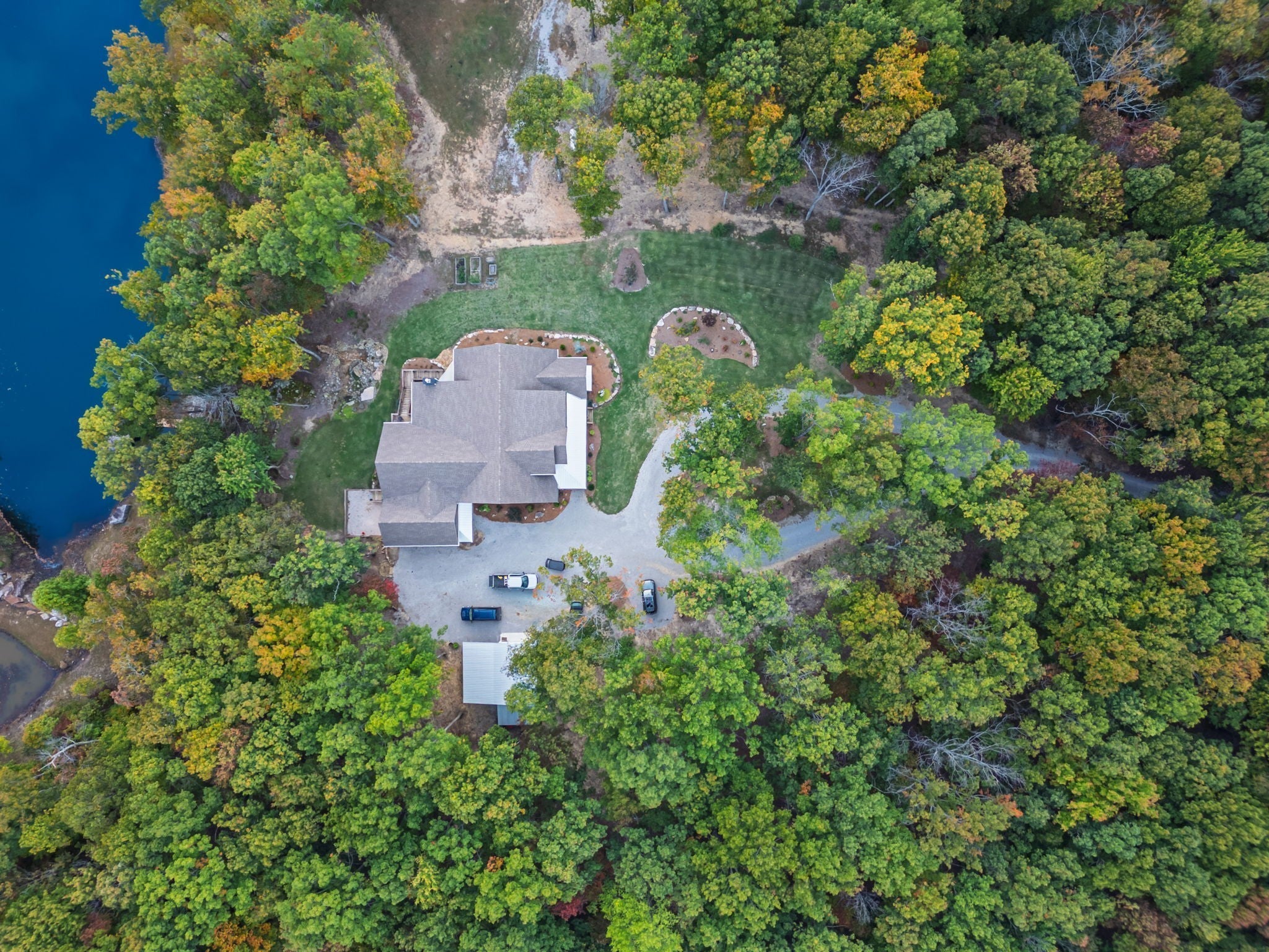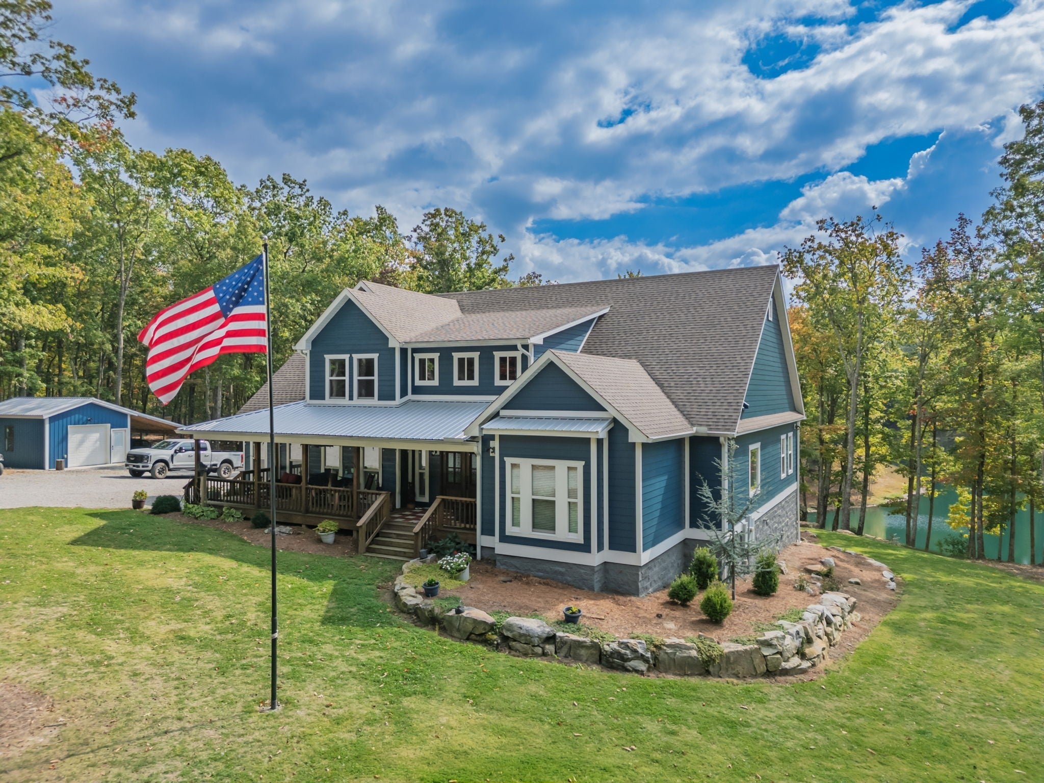 Experience refined living in this 5,000+ sq. ft. estate situated on just over four acres. With access to a lake directly behind the home and a west facing bluff view with amazing sunsets, you will be ready to experience the outdoor living this home offers with two stocked ponds as well. This remarkable estate offers the perfect combination of luxury, comfort, and natural beauty, creating a true oasis of peace and privacy with breathtaking views. Inside, you will find four spacious bedrooms, four and a half baths, and multiple flex spaces ideal for a home office, gym, or media room. The large, open kitchen is perfect for entertaining and hosting holiday gatherings, offering abundant counter space and room for everyone to gather. Enjoy two fireplaces (one gas and one wood-burning), adding warmth and character throughout the home. Designed for both comfort and convenience, the property features four HVAC systems, high-speed internet, and large windows that flood the interior with natural light while framing stunning outdoor views. Whether relaxing by the lake, working remotely, or hosting friends and family, this exceptional property offers a blend of luxury, comfort, and natural splendor, providing a serene oasis that you will love to call home!!