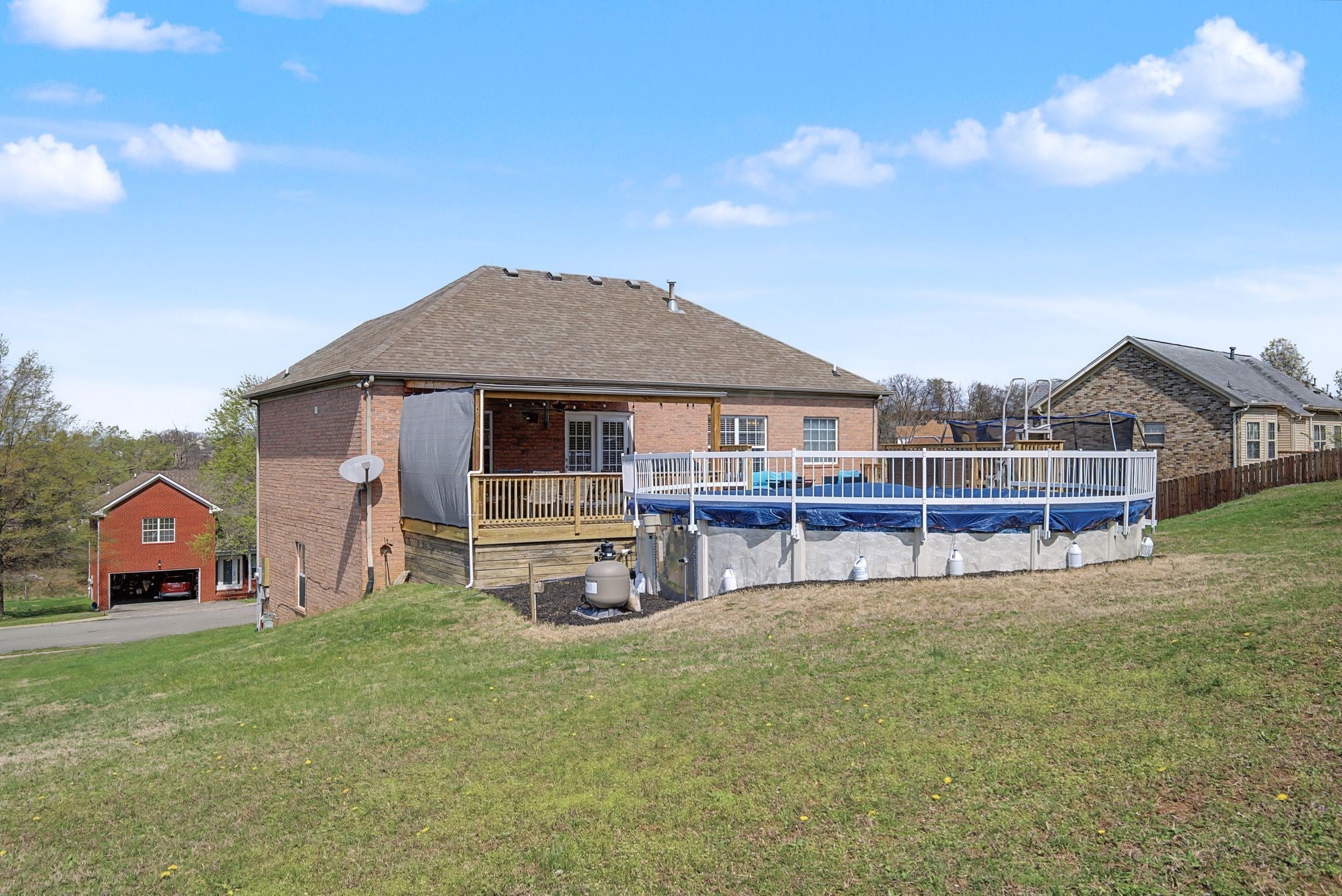Welcome to this beautifully updated home tucked away on a quiet cul-de-sac and located within an award-winning school district—offering the perfect combination of comfort, space, and convenience just 30 minutes from downtown Nashville. The home features a completely remodeled kitchen and bathrooms, ensuring quality craftsmanship and attention to detail throughout. Wood floors span the entire main level, creating a warm and inviting living space perfect for everyday living and entertaining. The fully finished basement adds incredible flexibility with a bathroom, utility room, and a large storage closet—ideal for a recreation room, home office, or guest space. Step outside to enjoy the oversized deck, partially covered for year-round enjoyment, overlooking a backyard designed for fun and relaxation. The deck leads directly to an above-ground pool and trampoline, making this the perfect setting for entertaining or enjoying summer days at home. Additional highlights include a 2-car garage with abundant extra storage and no HOA. This move-in ready home offers thoughtful updates, functional space, and a fantastic outdoor setup—all in a highly desirable location.