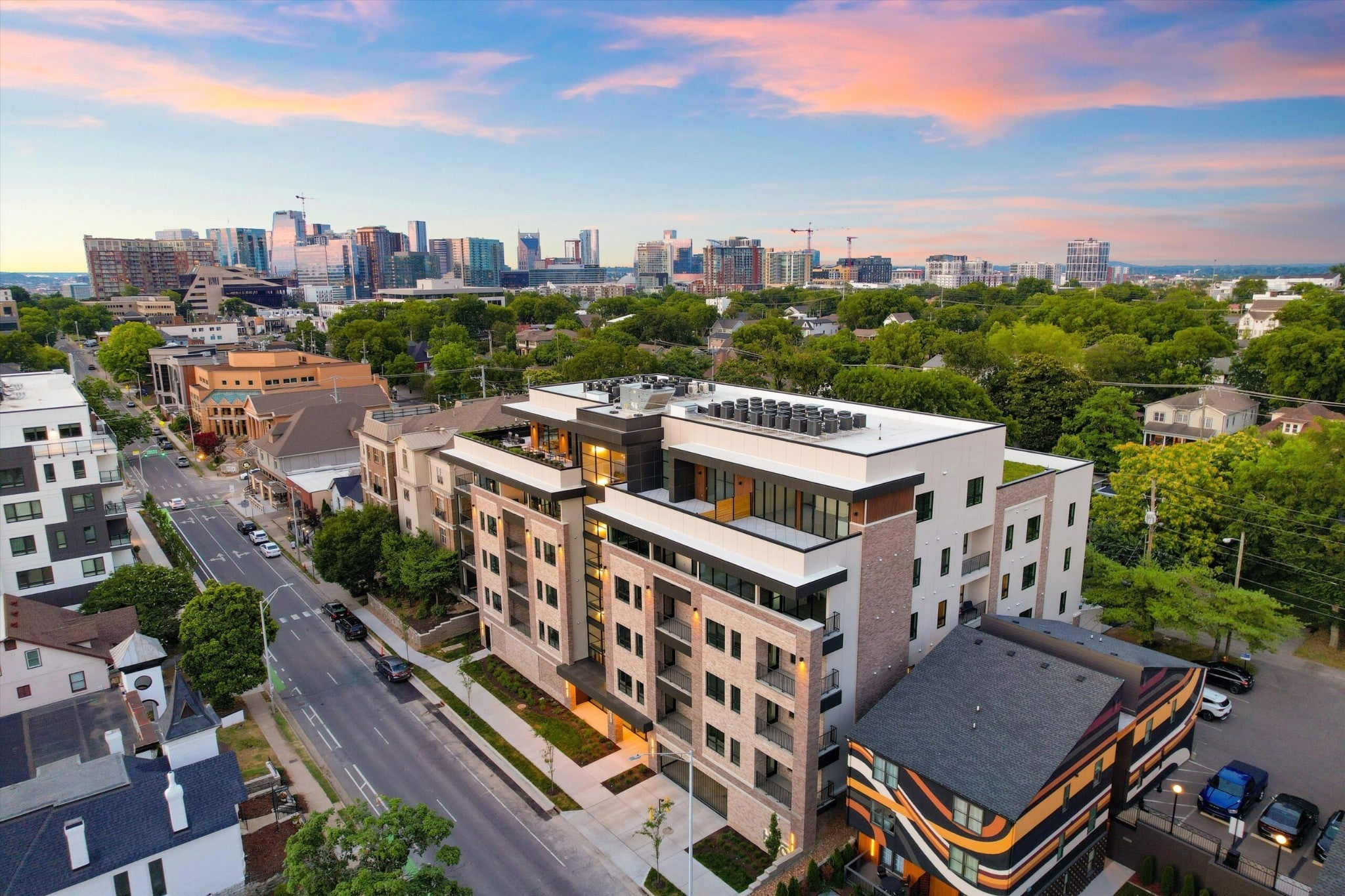 Welcome to “The Western Wing,” a turnkey short-term Airbnb/VRBO rental in a PRIME walkable location in the heart of Music City with best-in-class amenities and sweeping views of downtown Nashville. With over $51k in designer furnishings & custom craftsman upgrades, this active NOOSTR is established and ideal for someone looking to take over a turnkey investment with consistent bookings well into the end of 2026. Located on the second floor, this luxurious 2-bed condo has an open concept living space with tall ceilings, natural light, and a private balcony overlooking a quiet street on Music Row. Intentionally designed with moody, color-drenched paint, slat walls, board & batten, attractive artwork, and vibey furnishings to help stand out from amongst the crowd. Fully-stocked kitchen, stainless appliances, SmartTVs, ensuite bath, keypad entry, and more. Community amenities include a baja-style pool, modern club lounge with pool table, seating, and catering kitchen. Private dining & conference room, large fitness center, dedicated on-site management and security, fully-gated free parking garage, EV charging stations, luggage storage and more. Walking distance to Vanderbilt and Belmont University campuses, the Gulch, 12 South and minutes from Broadway and Downtown Nashville.