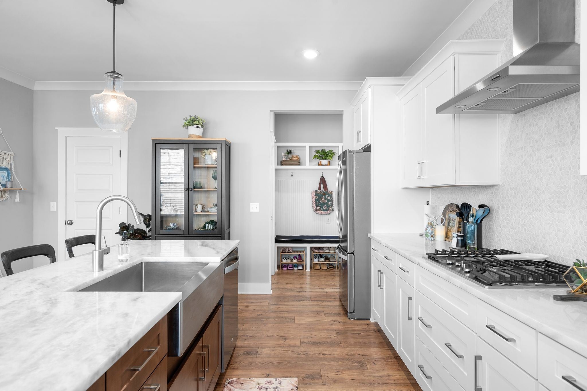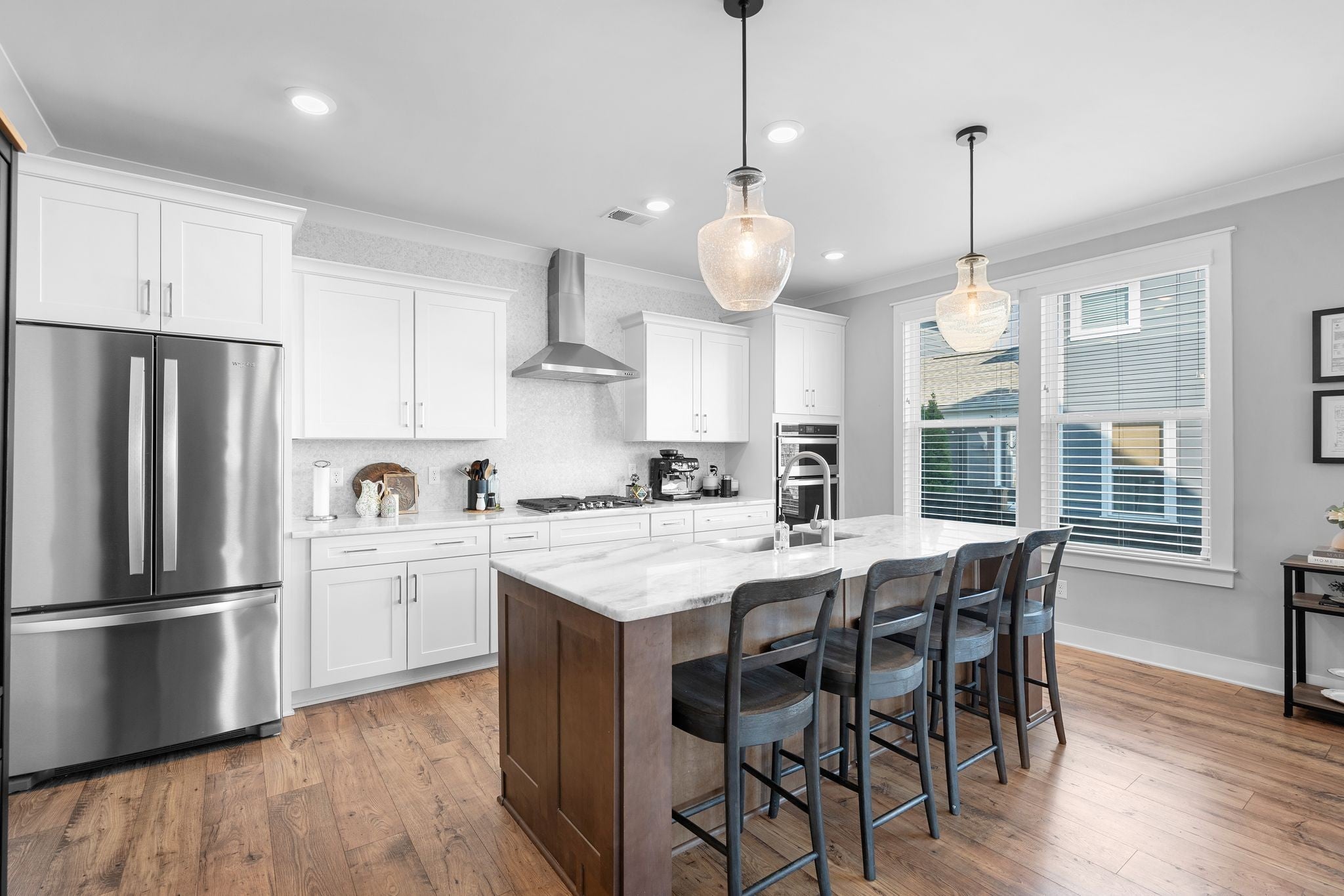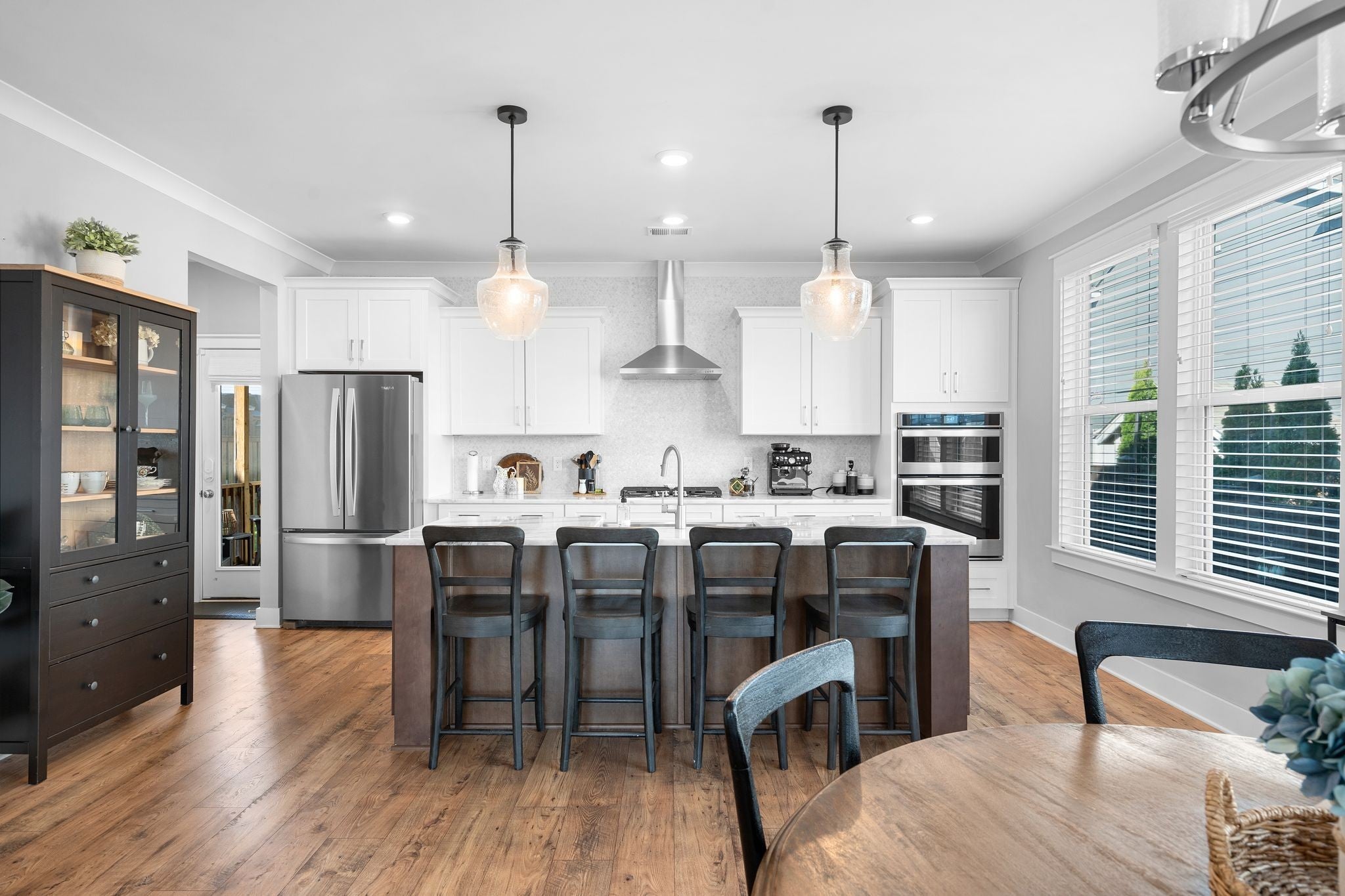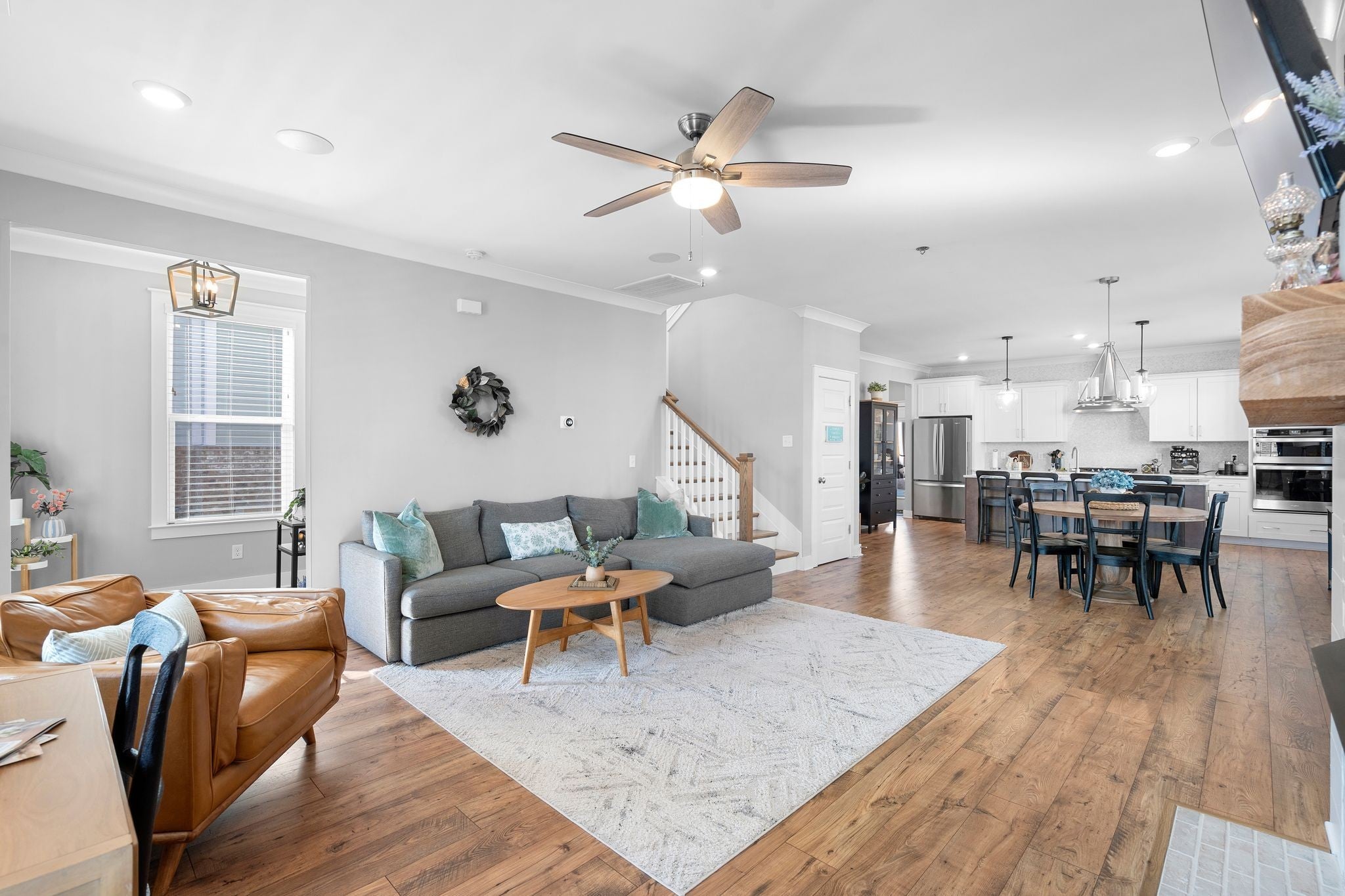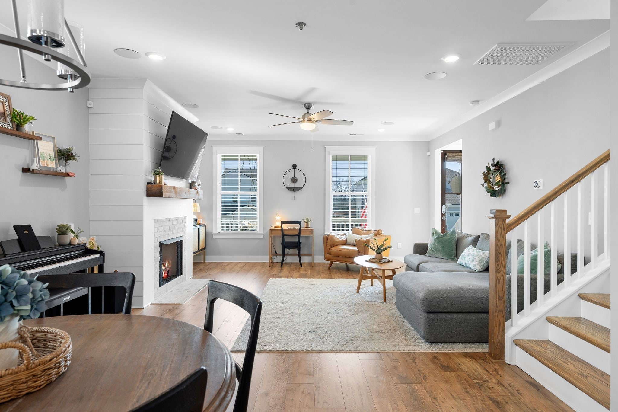Immaculate, sun-filled home with wonderful views in the heart of Thompson’s Station! This beautiful home features a wide front porch with an extra large front porch swing, wood flooring throughout, and an open layout designed for comfortable living. The upgraded kitchen offers stainless steel appliances, a deep farmhouse sink, and a large walk-in pantry. Convenient drop zone at the back entry for everyday organization. The great room features a cozy gas fireplace. The primary suite includes a huge walk-in shower and two walk-in closets. Enjoy outdoor living on the screened-in back porch with patio. Situated on a premium lot with extra space between homes. The extra-long 25x23 two-car garage provides plenty of room for parking and storage and includes an EV charging plug plus additional driveway parking. Located in a community with shops and restaurants at the entrance, offering convenience and lifestyle. Professional photos to be taken on March 19, 2026. Open House March 21st and 22nd: 2-4pm