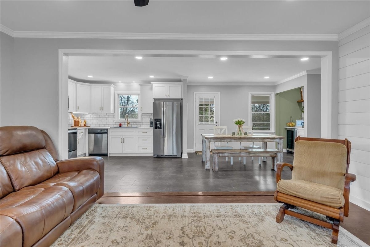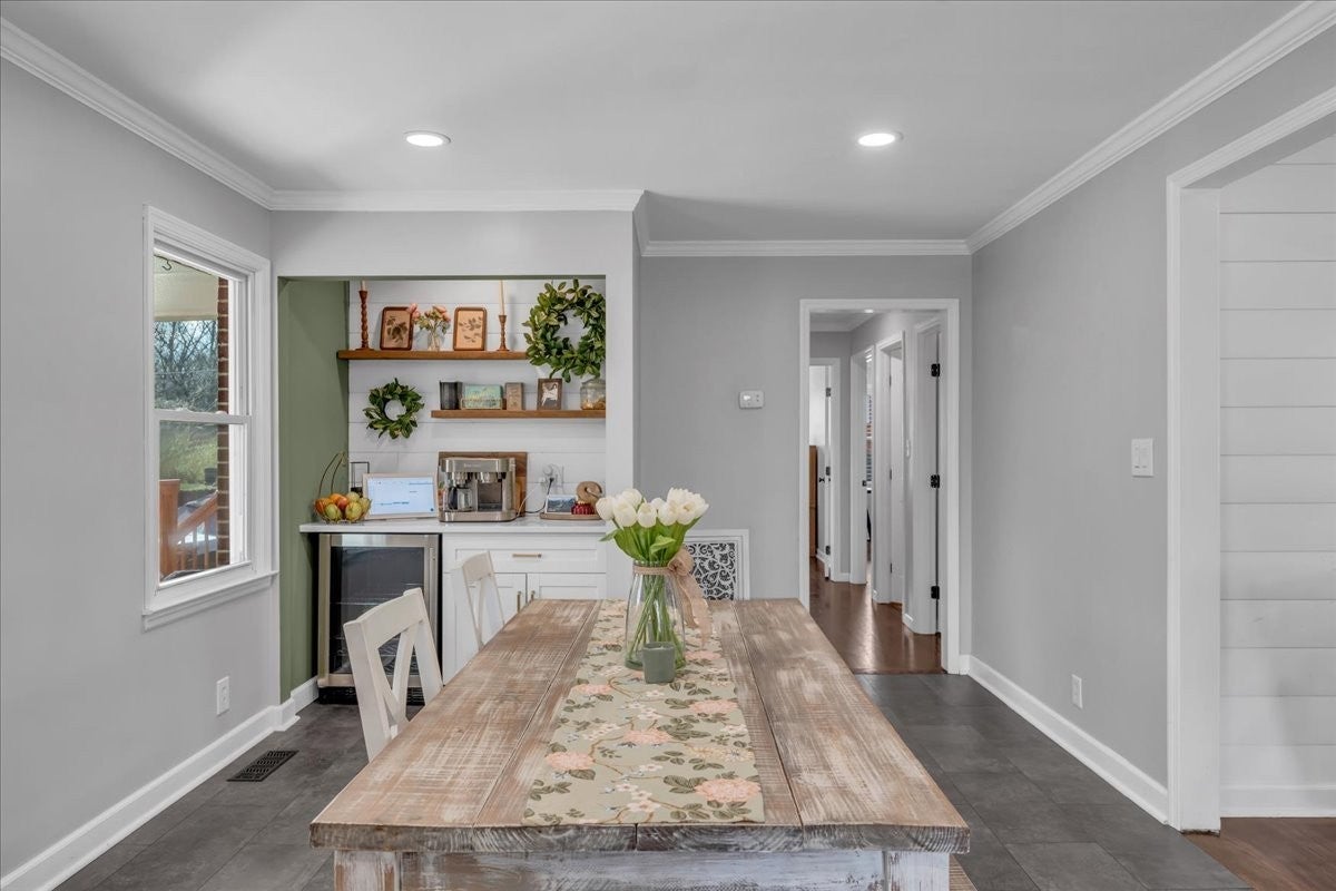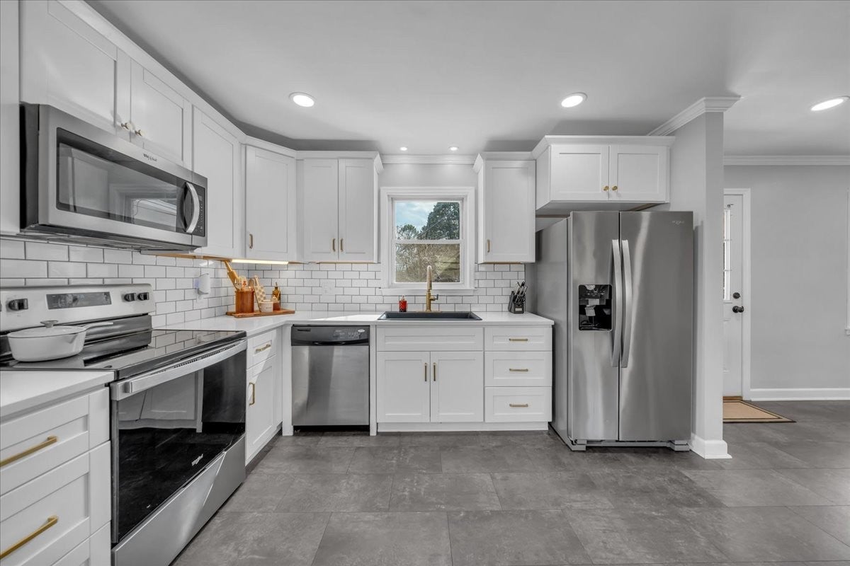 North Columbia 3/2 all brick with full basement and no HOA. Open floor plan with new flooring, fireplace, crown molding, updated kitchen with soft shut cabinets and drawers, subway tile, farmhouse sink, new built in coffee bar, recessed lighting, updated bathrooms, custom designed closet in the primary bedroom, outdoor oasis with a covered porches, multiple decks, fire pit area and fenced in yard. Full basement for garage, hobbies, gym or workshop.