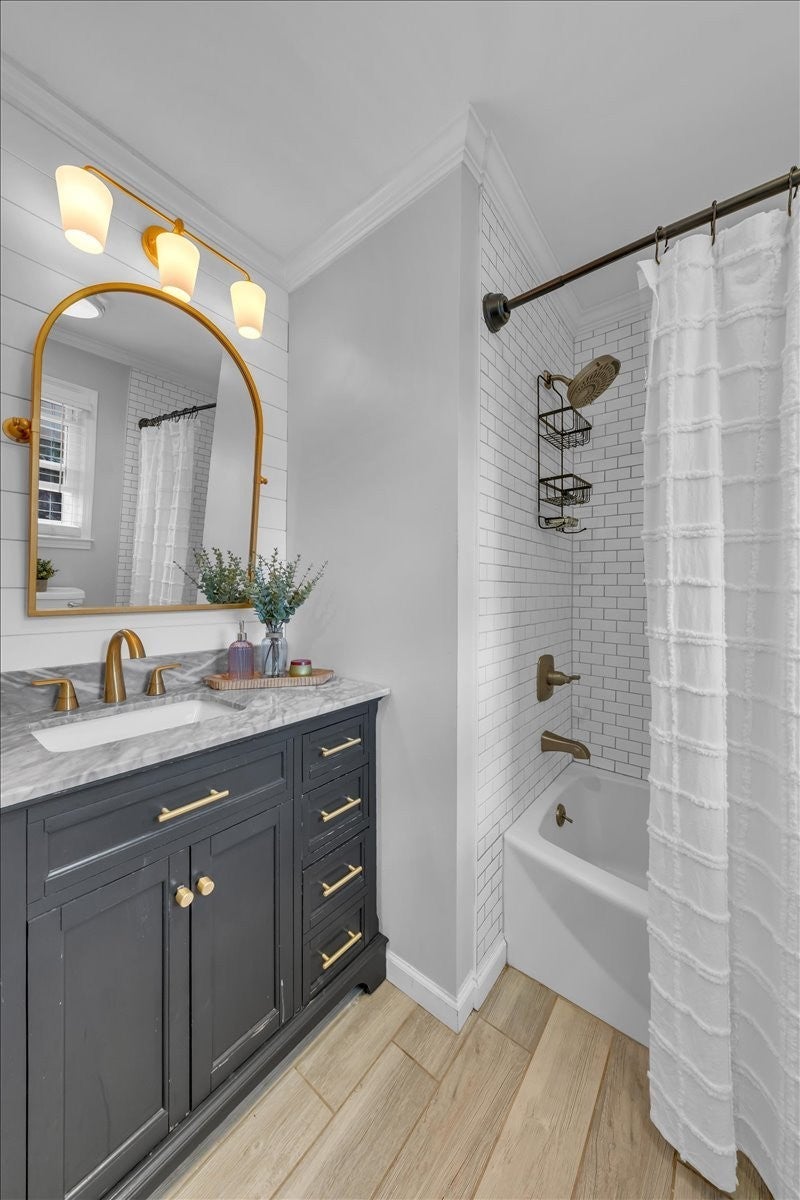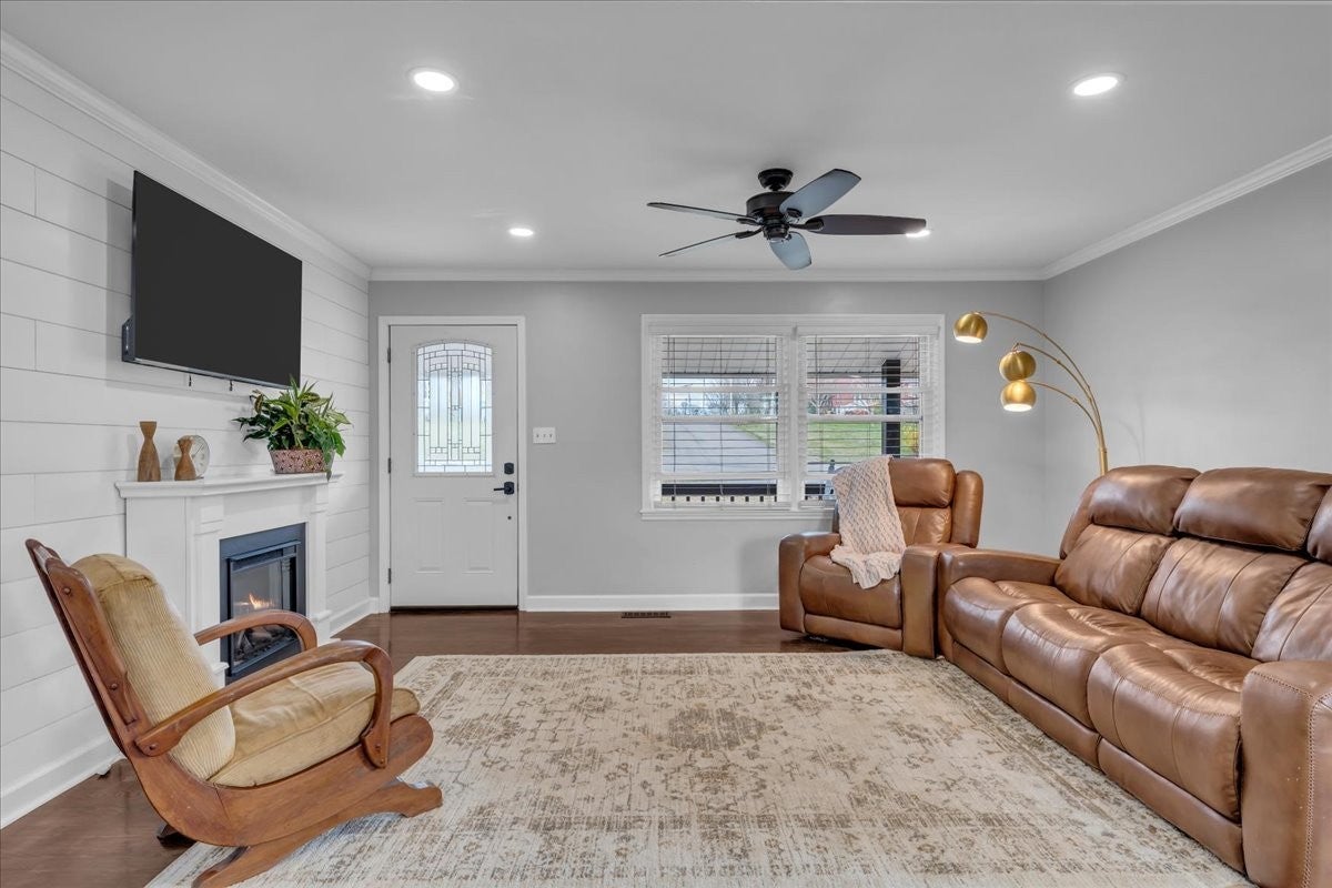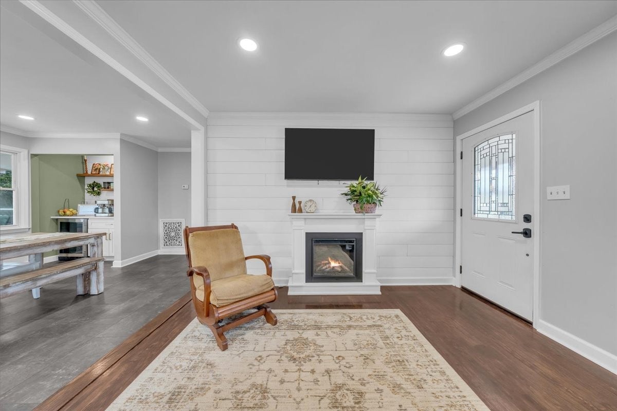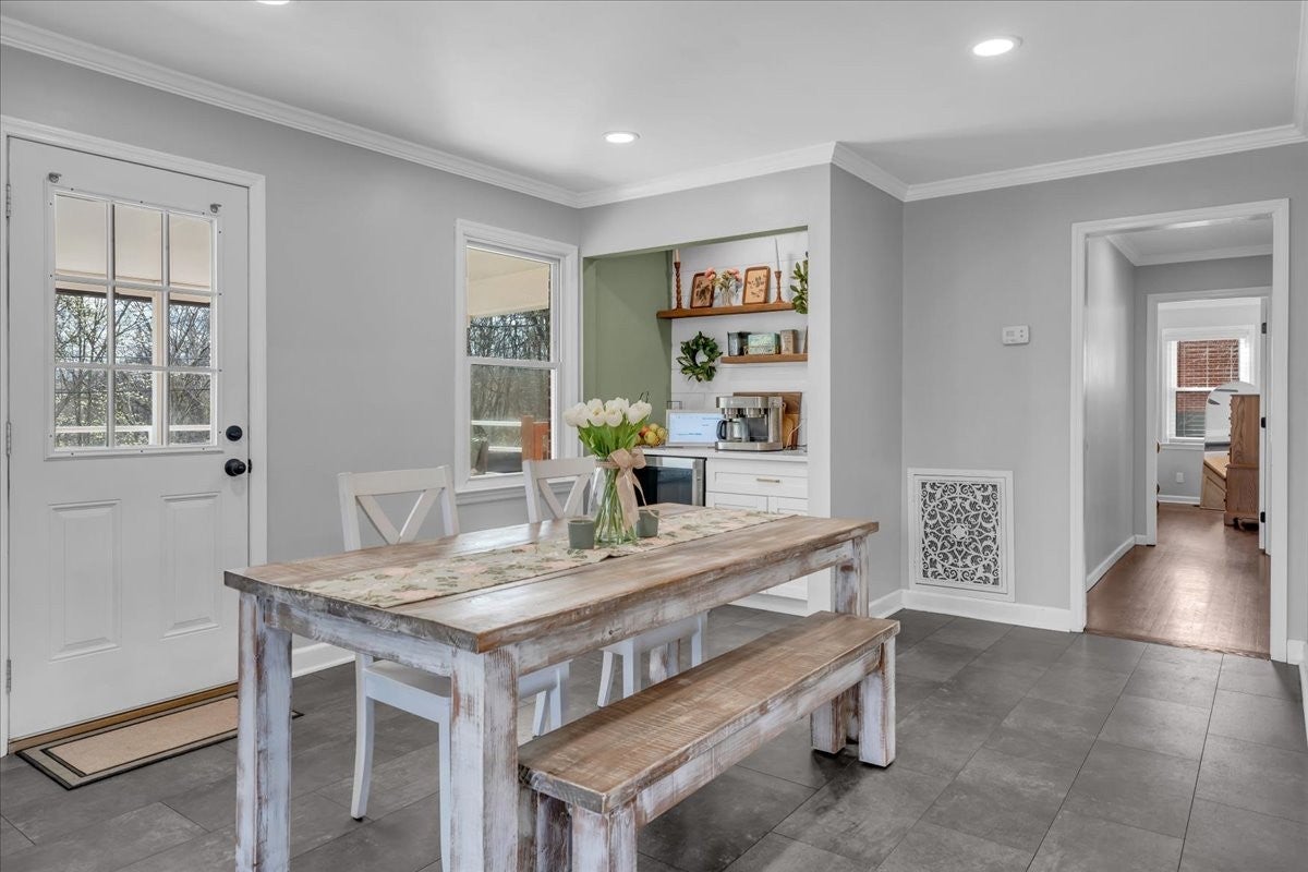 North Columbia 3/2 all brick with full basement and no HOA. Open floor plan with new flooring, fireplace, crown molding, updated kitchen with soft shut cabinets and drawers, subway tile, farmhouse sink, new built in coffee bar, recessed lighting, updated bathrooms, custom designed closet in the primary bedroom, outdoor oasis with a covered porches, multiple decks, fire pit area and fenced in yard. Full basement for garage, hobbies, gym or workshop.