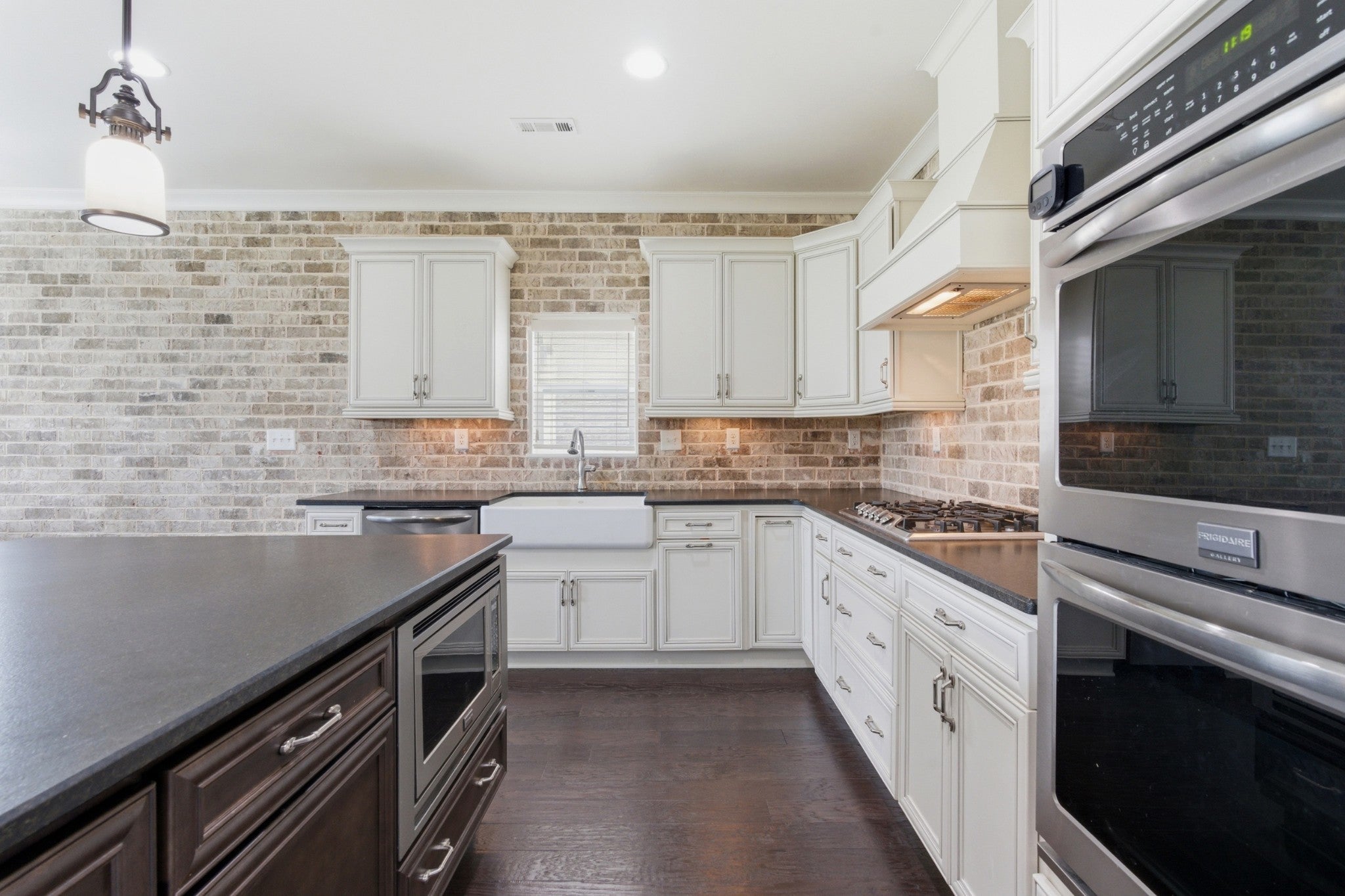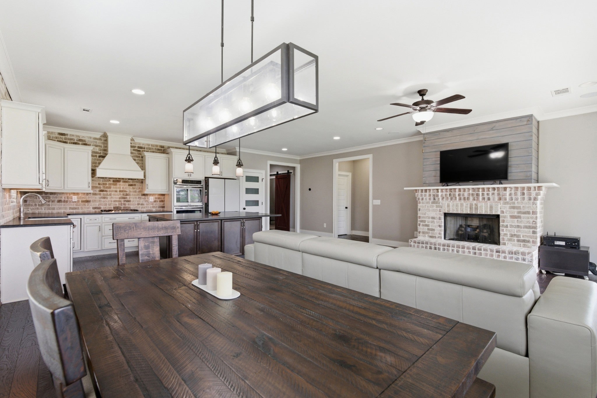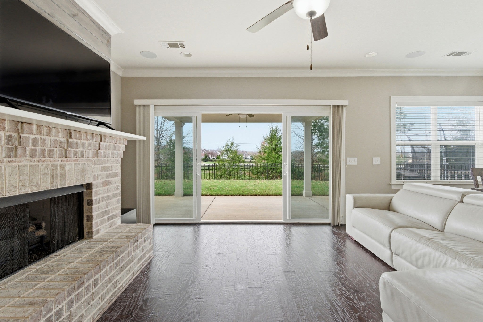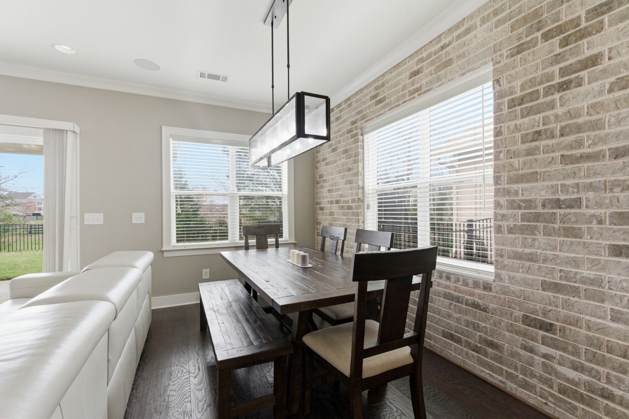 This handsome and not commonly available one level single family home is situated in the highly desirable Ladd Park community with convenient access to I-65 and top rated schools! The home has been meticulously and lovingly maintained by the original owner. The Great room with an impressive brick fireplace opens up to the dining area and kitchen with cool exposed brick accent walls. The expansive kitchen is a chef’s dream with huge island, gas cooktop, upgraded white cabinets, white porcelain farmhouse sink, double ovens and stainless steel appliances. The primary bedroom suite is very spacious and the oversized spa bath with rainforest shower has the wow factor. A versatile Flex room with sliding doors is ideal as a home office or hobby room. The level lot boasts a full irrigation system, wrought iron fenced backyard, and covered patio that looks out upon beautifully landscaped green space. The home also has additional thoughtful upgrades, including a gas tankless water heater, Tesla charger and 5 indoor and 2 outdoor built-in ceiling speakers. The AC unit was just replaced with a brand new unit that carries a transferable warranty. Residents of Ladd Park enjoy exceptional community amenities including two swimming pools, playgrounds, walking trails, and a basketball court. The nearby river is only about five minutes away, offering opportunities for kayaking and fishing. Don’t miss this unique opportunity for easy one level living in historic and charming Franklin, Tennessee!