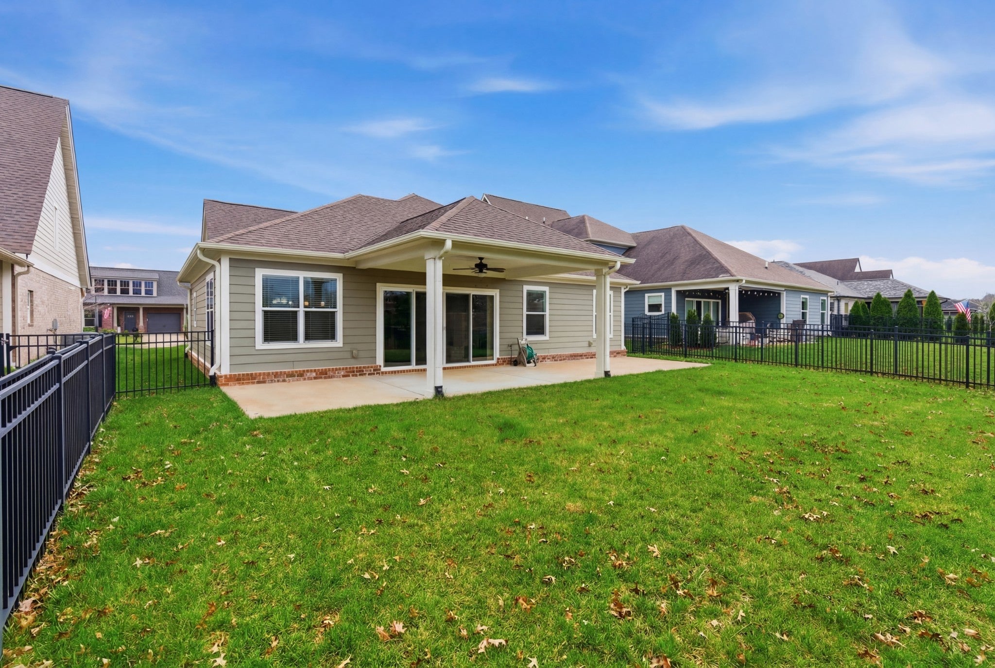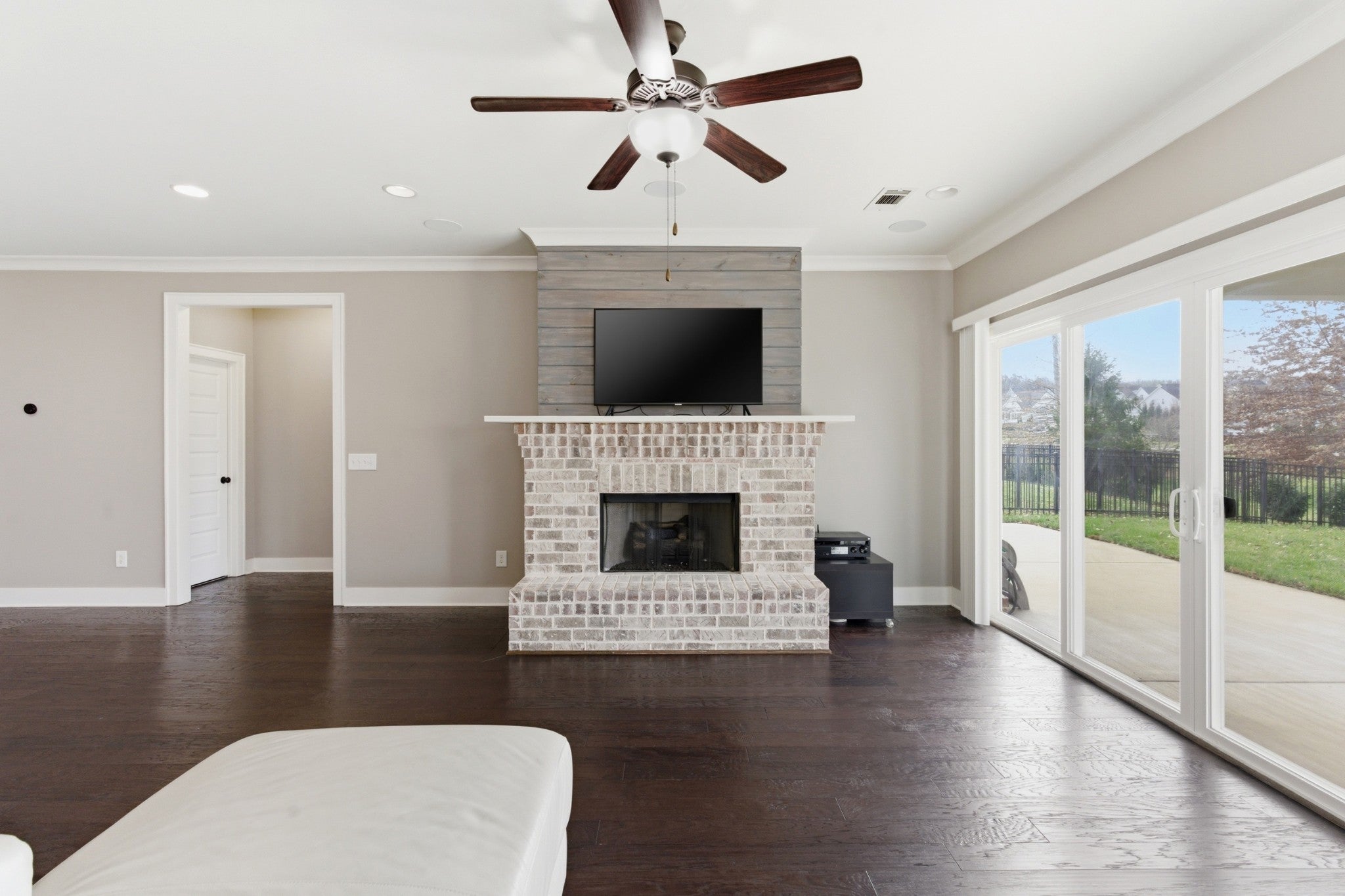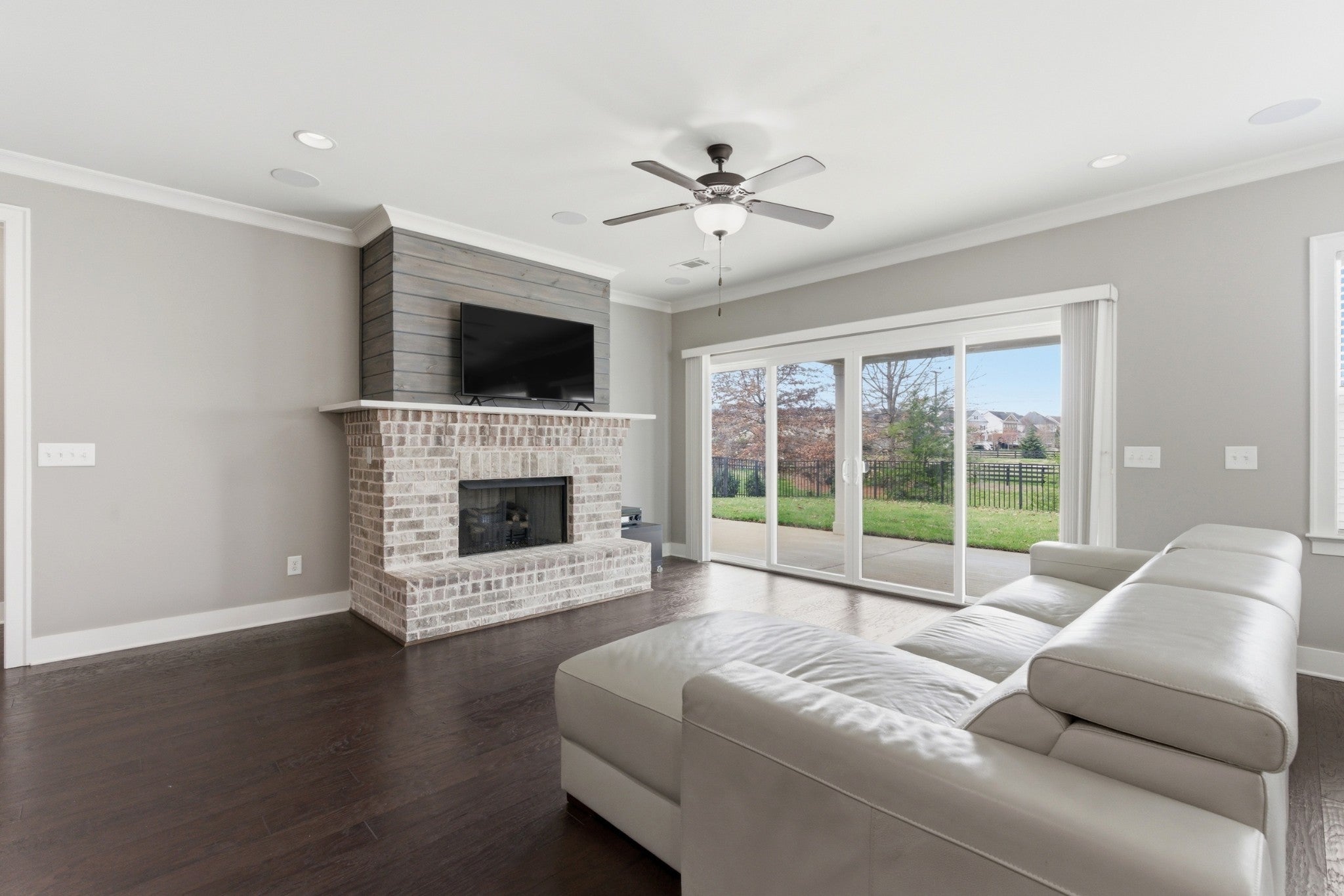 This handsome and not commonly available one level single family home is situated in the highly desirable Ladd Park community with convenient access to I-65 and top rated schools! The home has been meticulously and lovingly maintained by the original owner. The Great room with an impressive brick fireplace opens up to the dining area and kitchen with cool exposed brick accent walls. The expansive kitchen is a chef’s dream with huge island, gas cooktop, upgraded white cabinets, white porcelain farmhouse sink, double ovens and stainless steel appliances. The primary bedroom suite is very spacious and the oversized spa bath with rainforest shower has the wow factor. A versatile Flex room with sliding doors is ideal as a home office or hobby room. The level lot boasts a full irrigation system, wrought iron fenced backyard, and covered patio that looks out upon beautifully landscaped green space. The home also has additional thoughtful upgrades, including a gas tankless water heater, Tesla charger and 5 indoor and 2 outdoor built-in ceiling speakers. The AC unit was just replaced with a brand new unit that carries a transferable warranty. Residents of Ladd Park enjoy exceptional community amenities including two swimming pools, playgrounds, walking trails, and a basketball court. The nearby river is only about five minutes away, offering opportunities for kayaking and fishing. Don’t miss this unique opportunity for easy one level living in historic and charming Franklin, Tennessee!