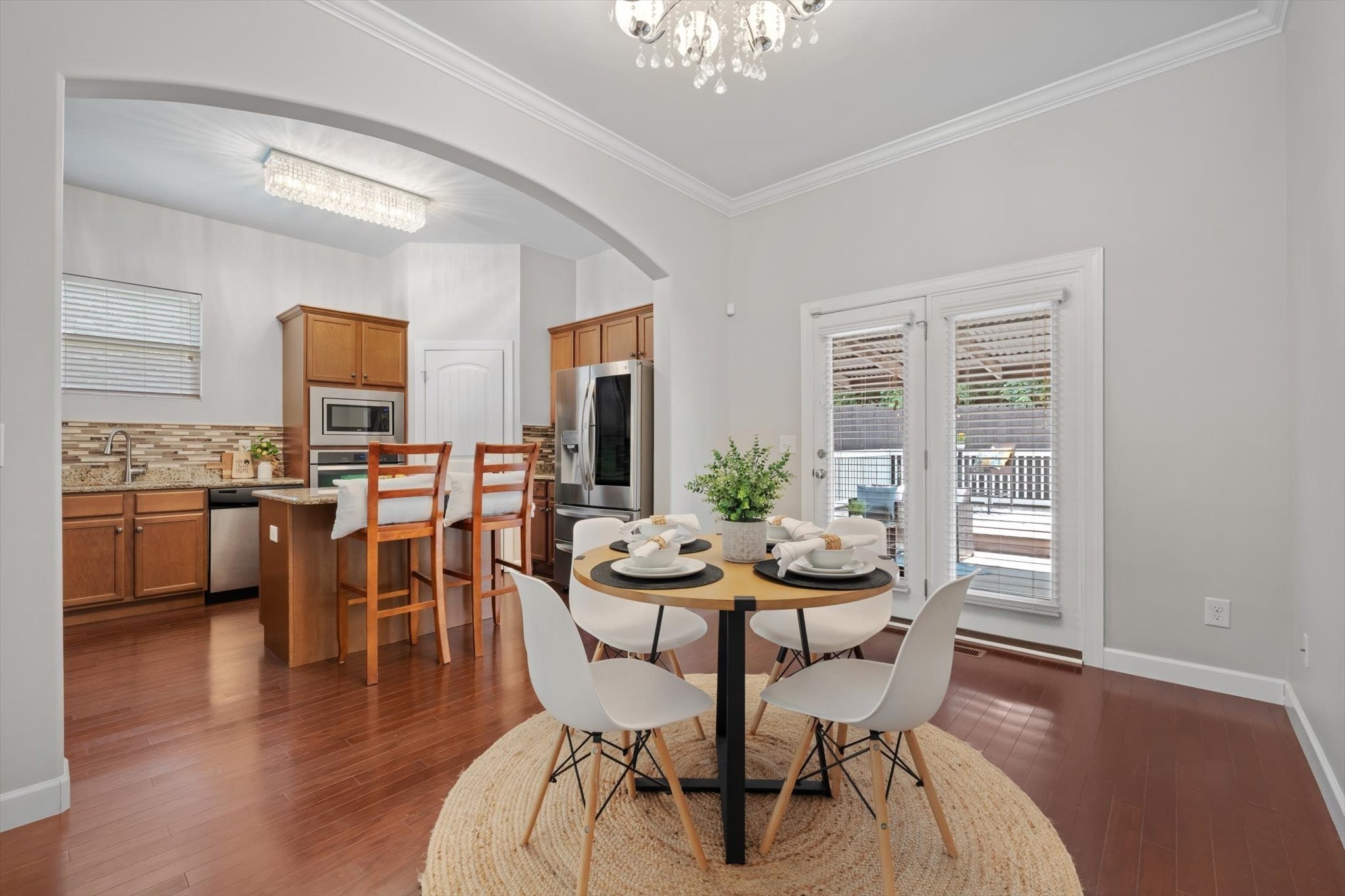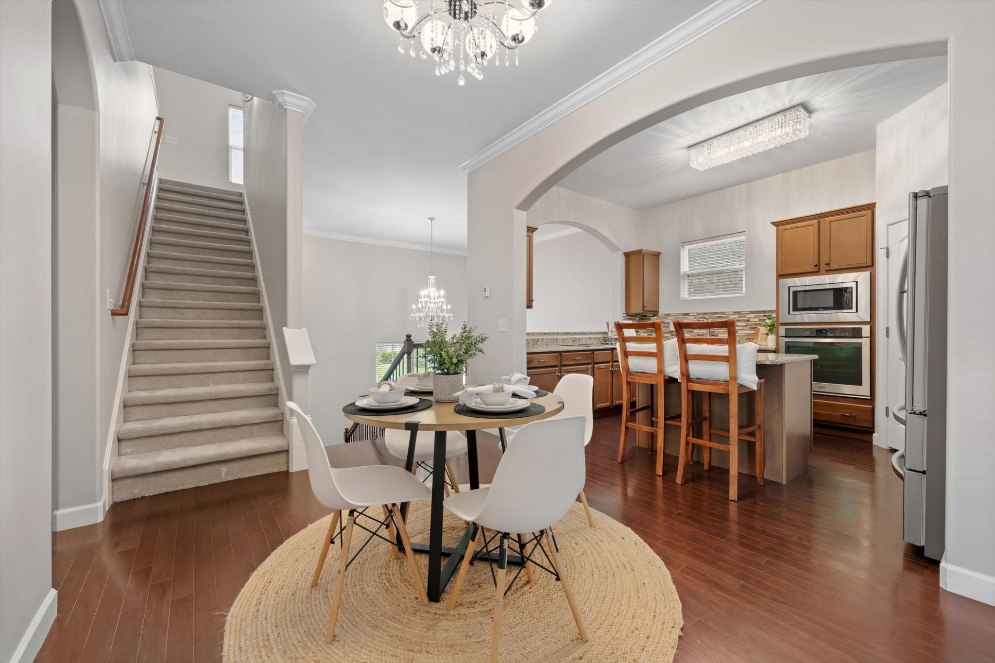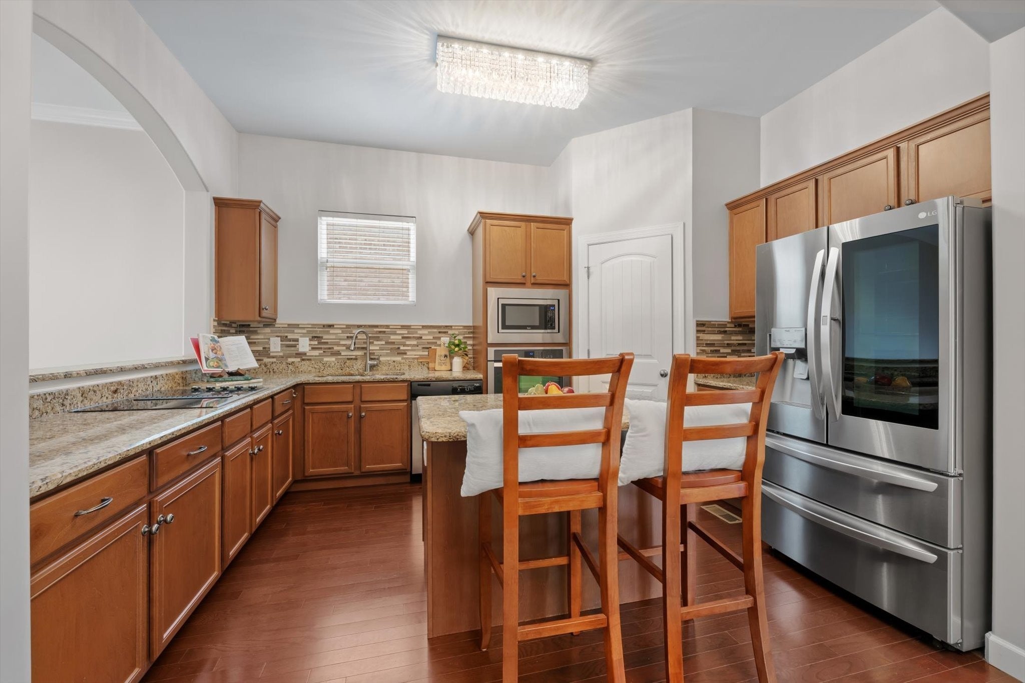 - Built-In Electric Oven, Cooktop, Dishwasher, Disposal, Refrigerator, Stainless Steel Appliance(s)
