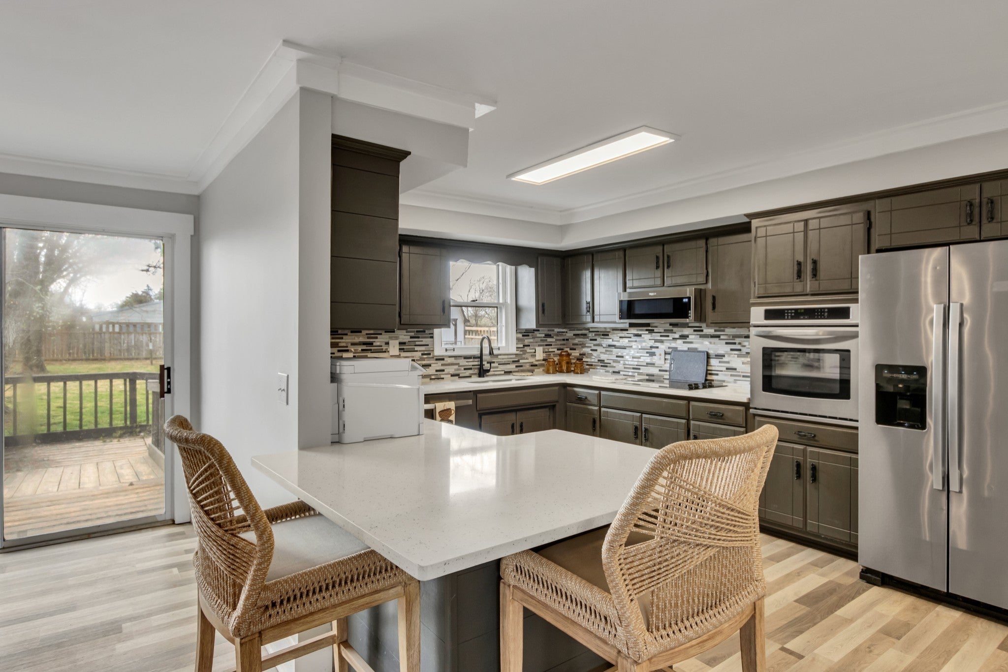 - Built-In Electric Oven, Cooktop, Dishwasher, Refrigerator, Stainless Steel Appliance(s)