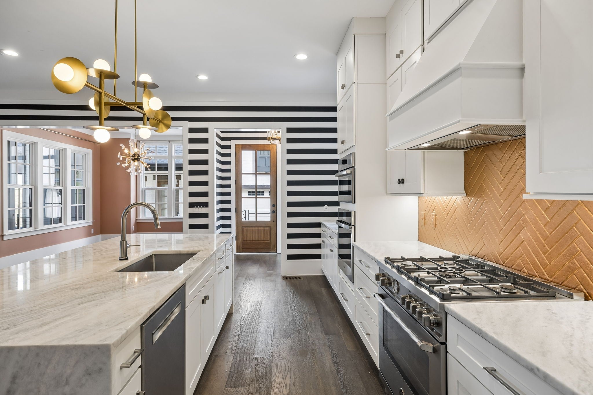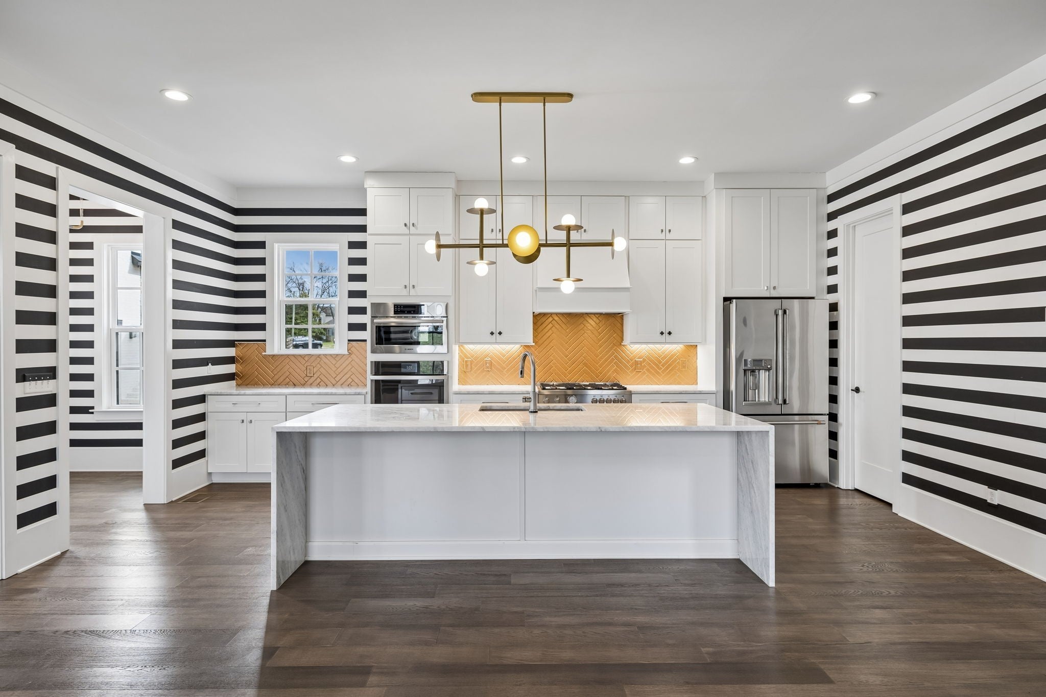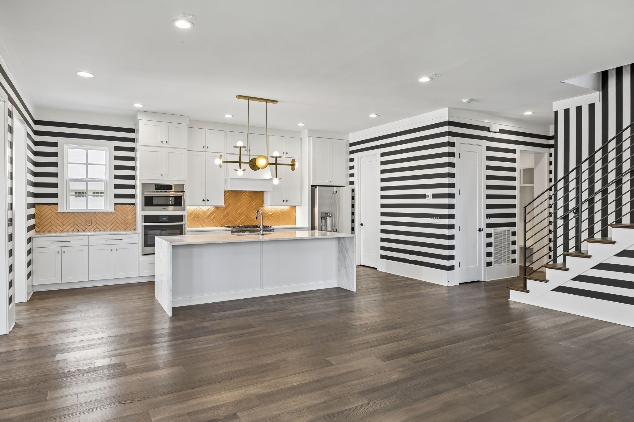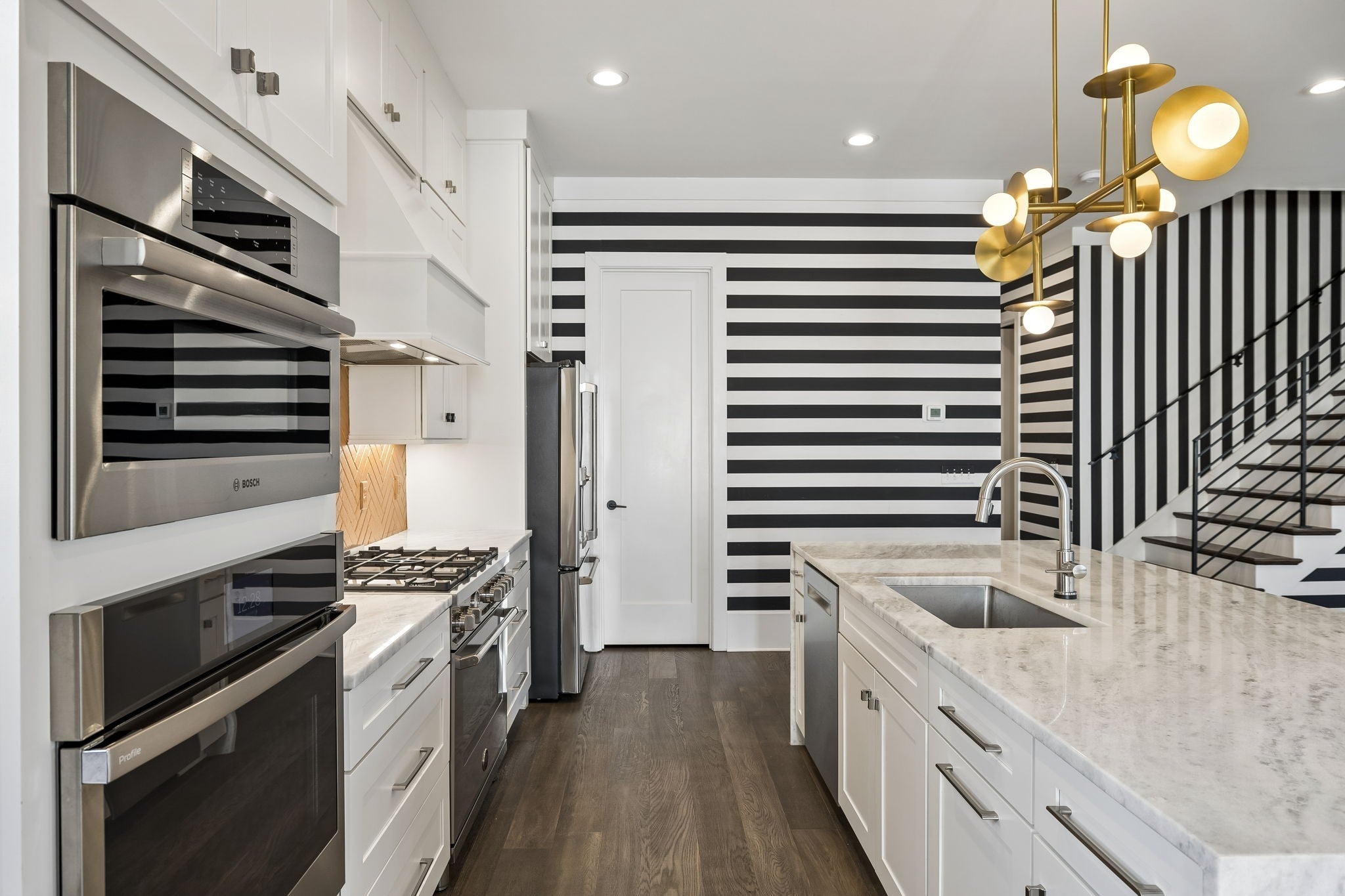 - Built-In Electric Oven, Gas Oven, Gas Range, Dishwasher, Disposal, Dryer, Microwave, Refrigerator, Stainless Steel Appliance(s), Washer