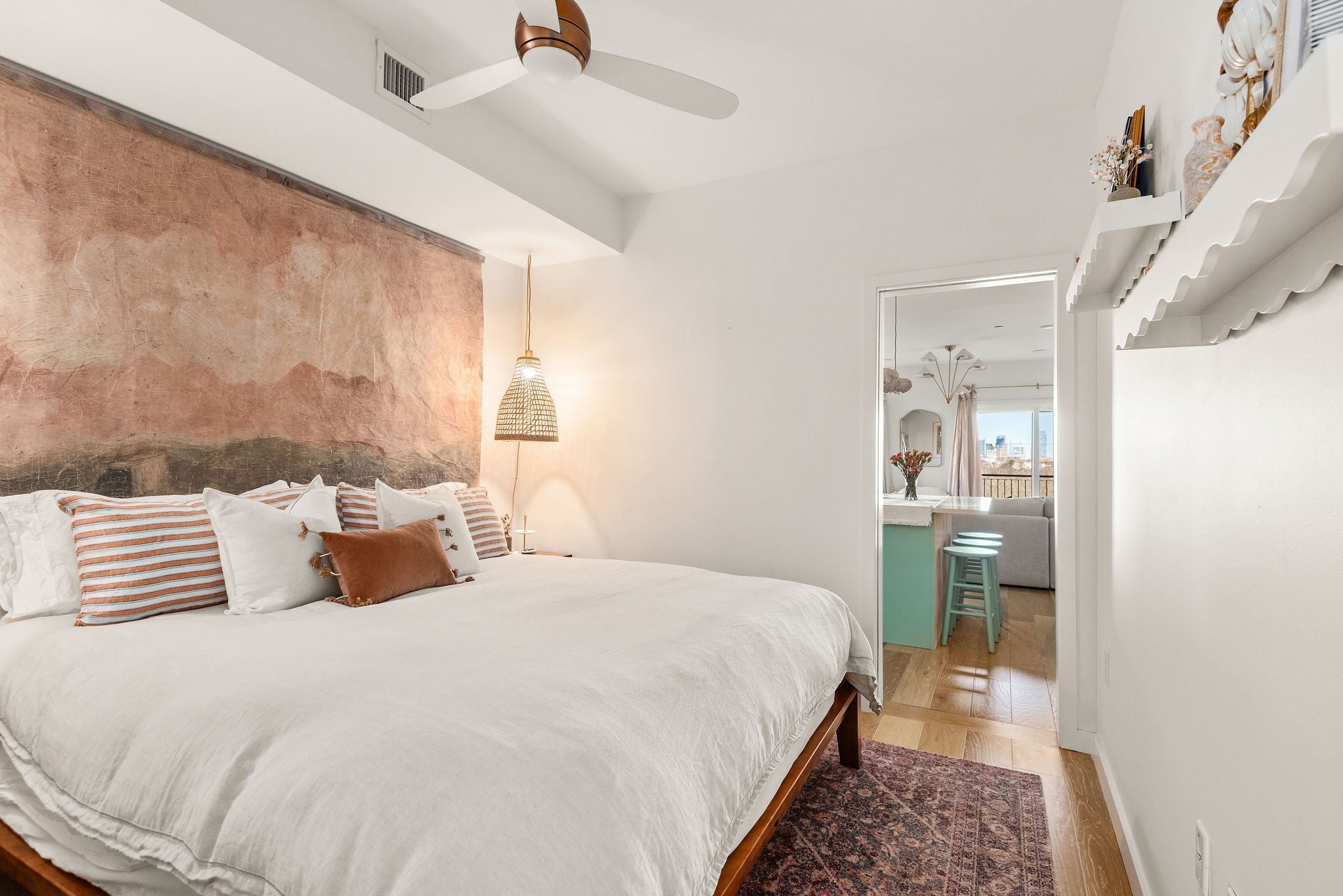 This condo is truly one of a kind! Wake up to the stunning NASHVILLE SKYLINE as your everyday backdrop — all just minutes from the thriving Wedgewood-Houston art district, Downtown and Geodis Park. Enjoy being within walking distance to neighborhood favorites like Poppy & Peep Chocolatier, Matryoshka Coffee, and Meel Poke — this location is unbeatable. The unit features panoramic views from every room and was THOUGHTFULLY DESIGNED by Evane Stoner Interiors. The space blends functionality with elevated design. Discover all NEW light fixtures, faucets and hardware. Storage is exceptional, with a MASSIVE CLOSET featuring installed custom racks and shelving throughout. This TRUE ONE BEDROOM UNIT is a rare and highly sought-after feature in this building. Community amenities include a gorgeous pool with downtown views, dog park and community area.