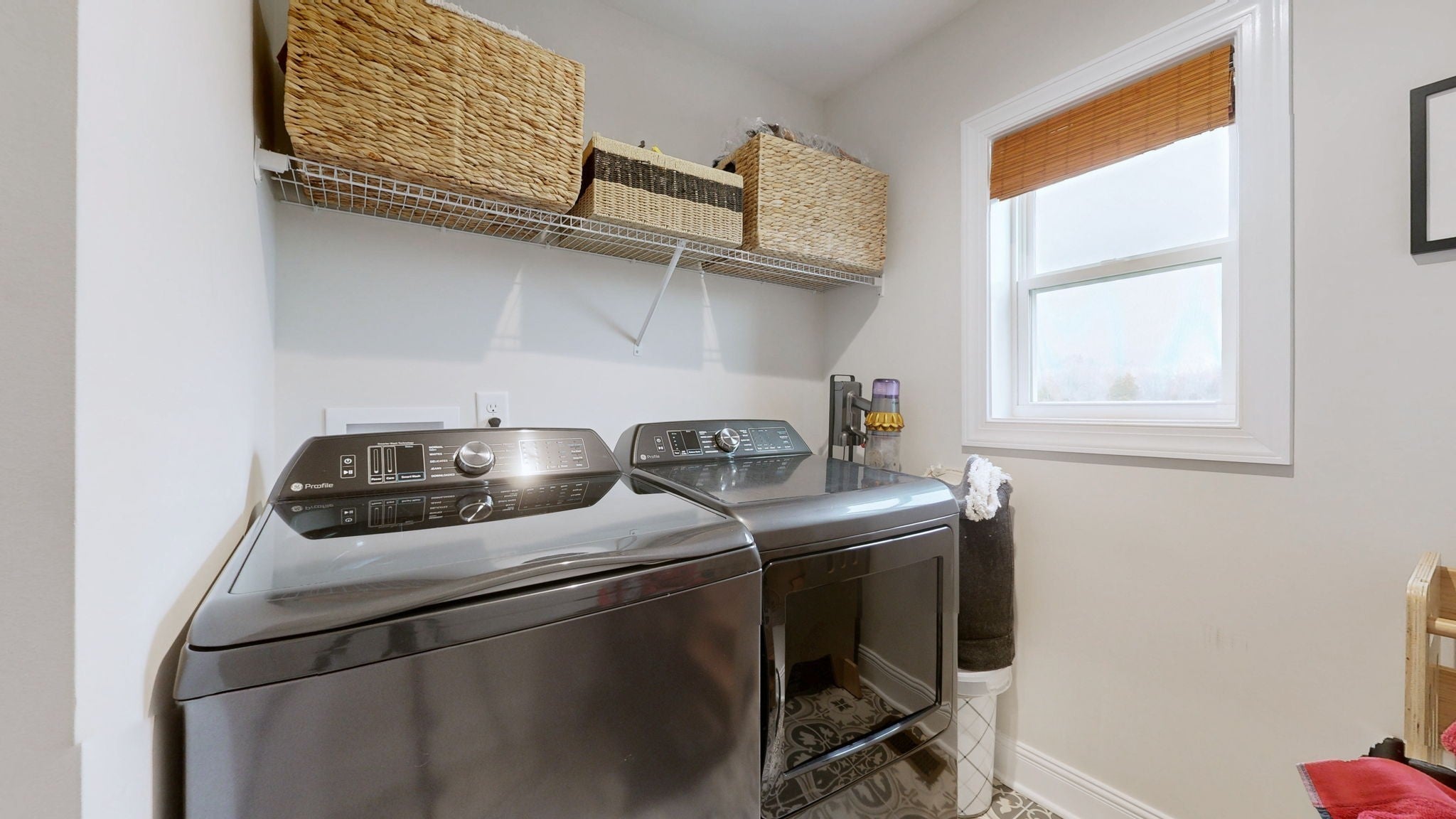 - Built-In Electric Oven, Electric Range, Dishwasher, Disposal, Dryer, Freezer, Microwave, Refrigerator, Stainless Steel Appliance(s), Washer
