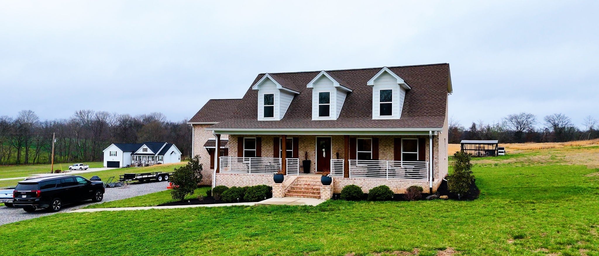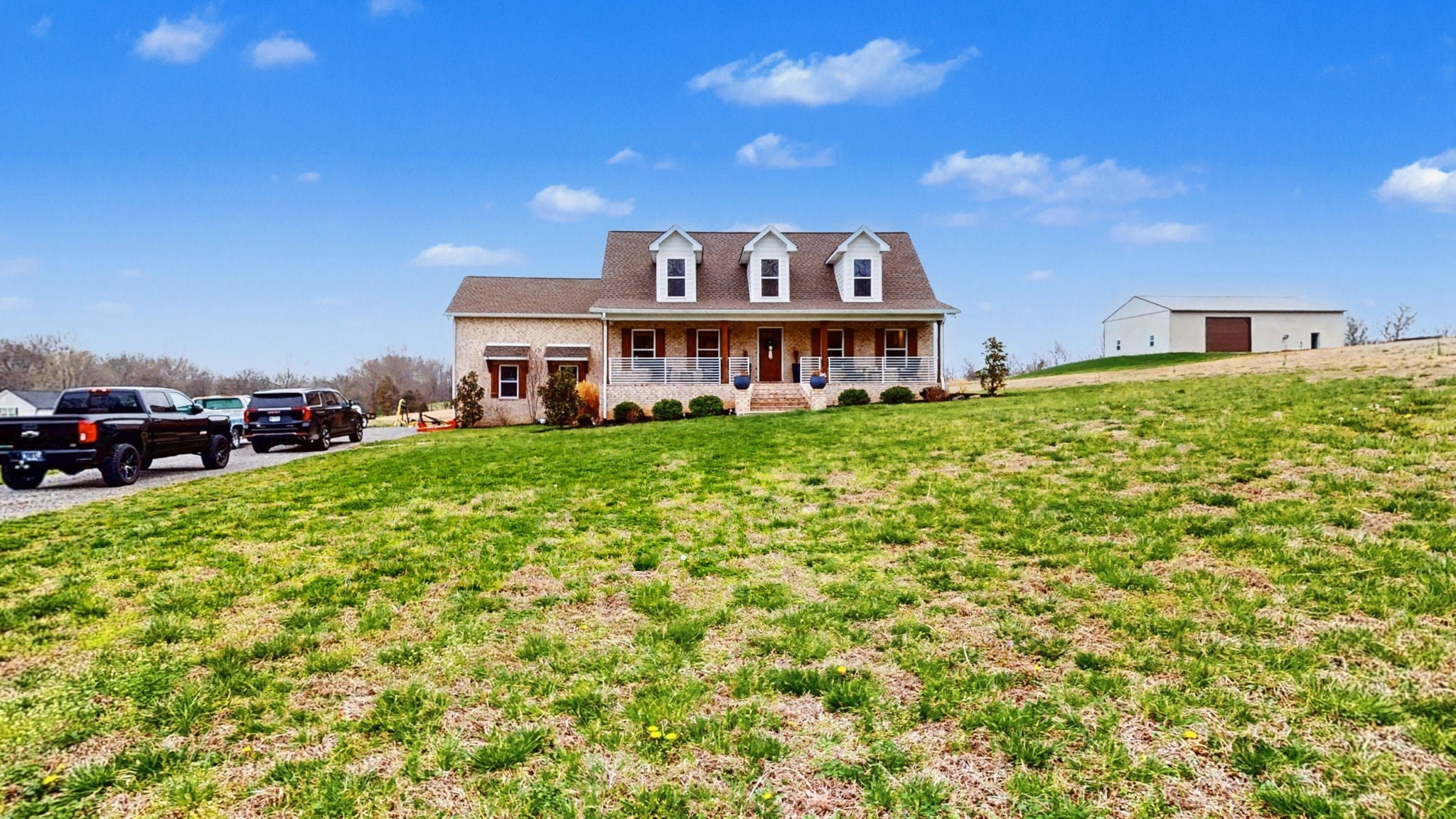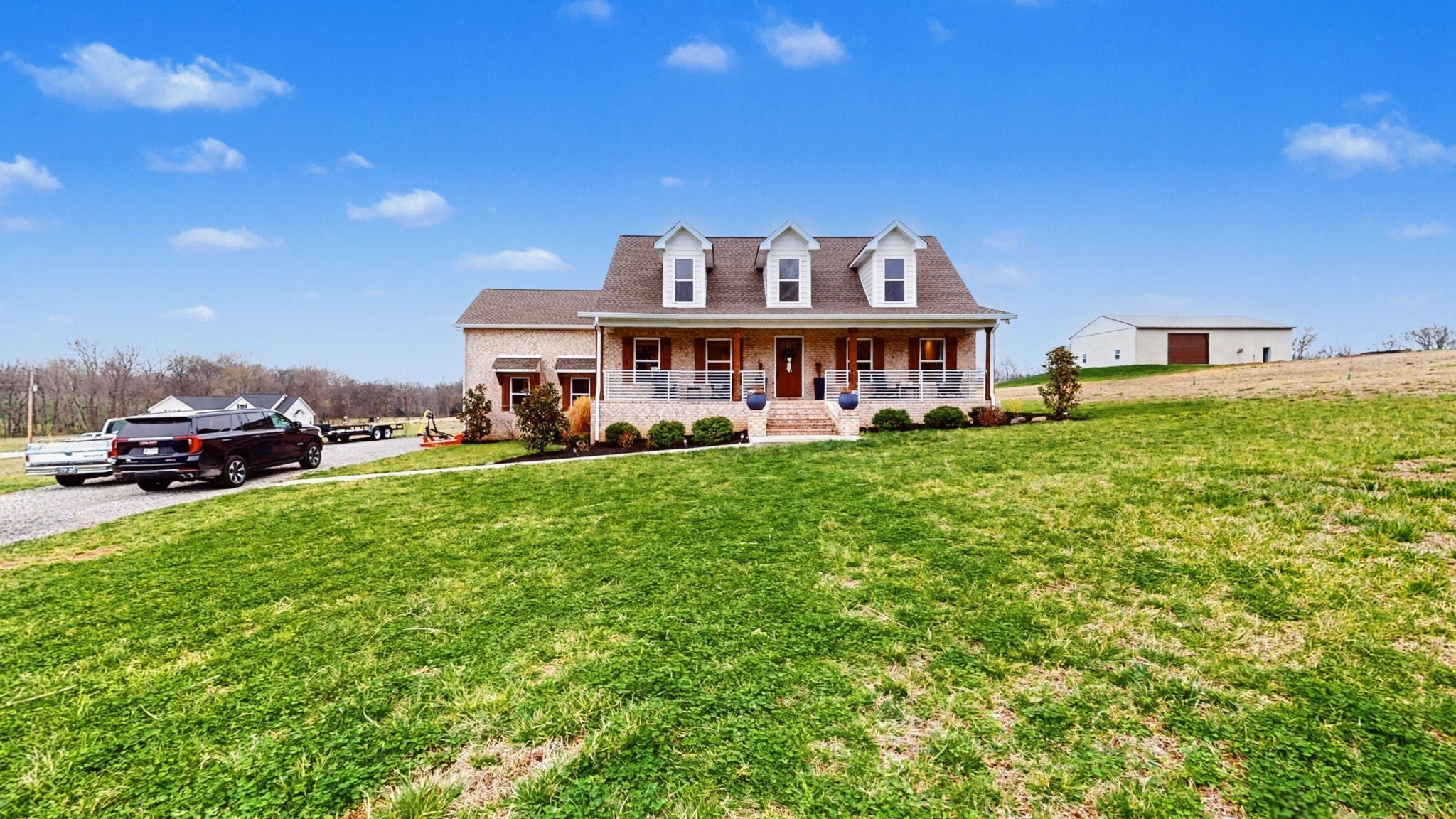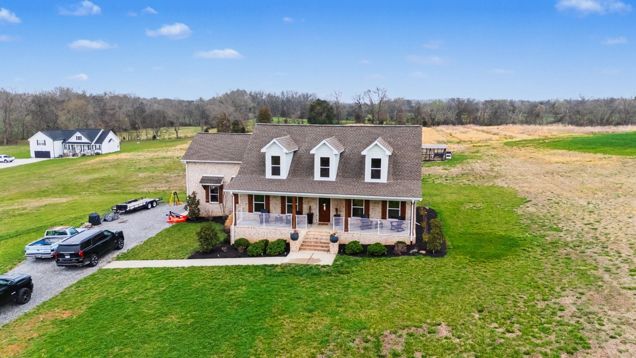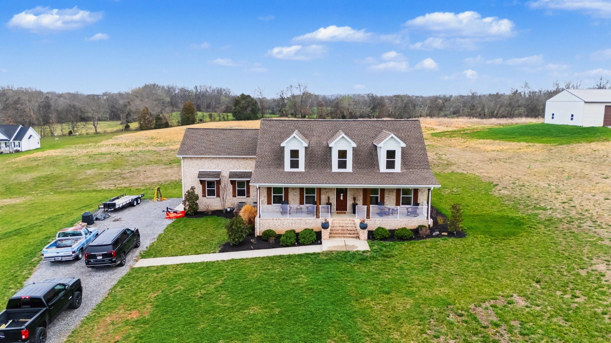 Welcome Home! This practically brand new brick home on 5 acres sets on your very own countryside oasis! Walk-in to vaulted ceilings, an abundance of natural light, and 2,550 Sq. Ft. of open main living – Granite in the Kitchen, Stainless Appliances, Hardwood/Tile/Carpet flooring throughout, Barn Slider leading into the Master Bathroom, generously sized Guest Bedrooms, and so much more while the covered Front and Rear Porches extend the living space to the outdoors to allow enjoyment of the surrounding beauty! Centrally located - just 25 min from Clarksville and 30 min from Nashville - country living, conveniently located!