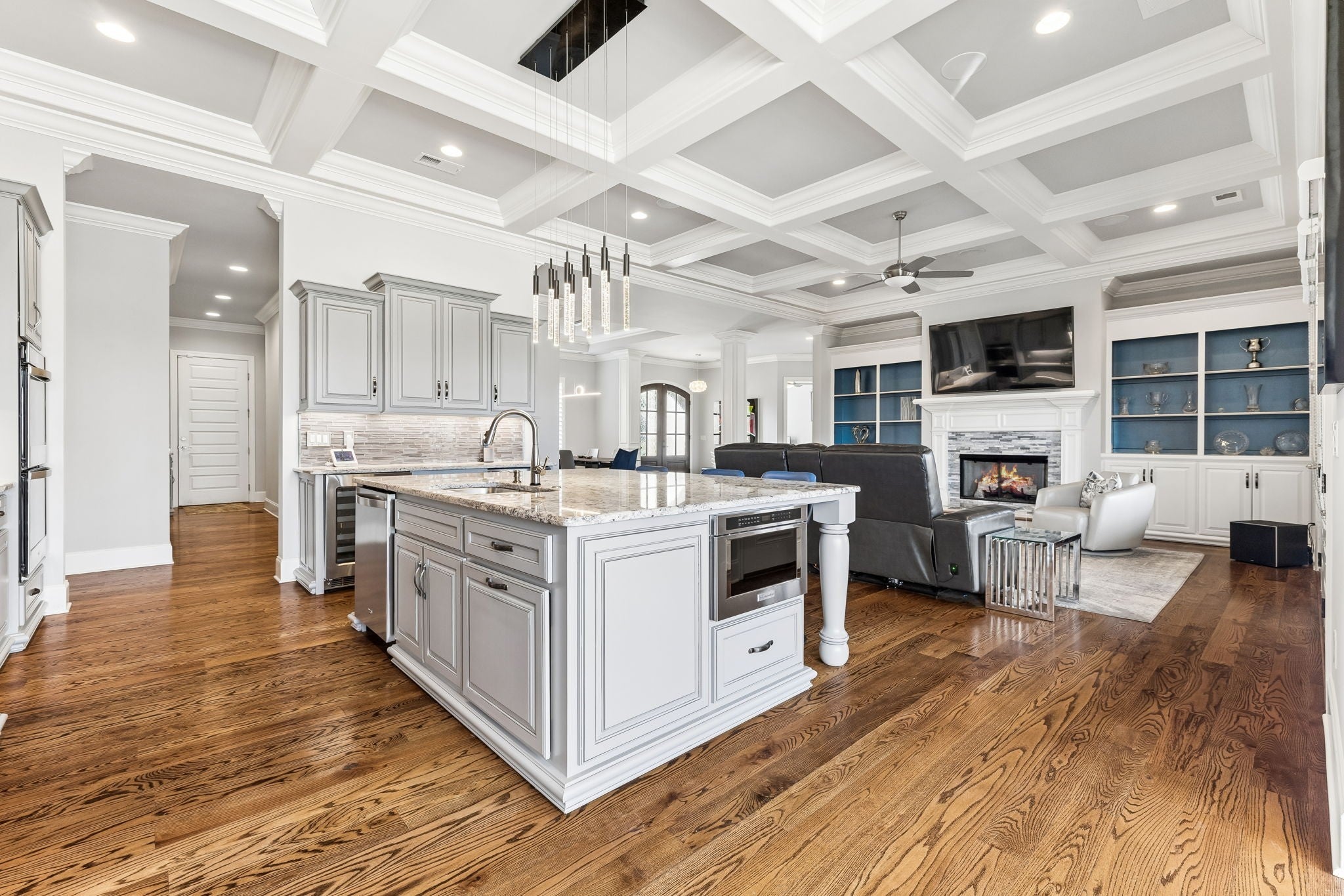 - Air Filter, Bookcases, Built-in Features, Ceiling Fan(s), Extra Closets, High Ceilings, Open Floorplan, Pantry, Kitchen Island