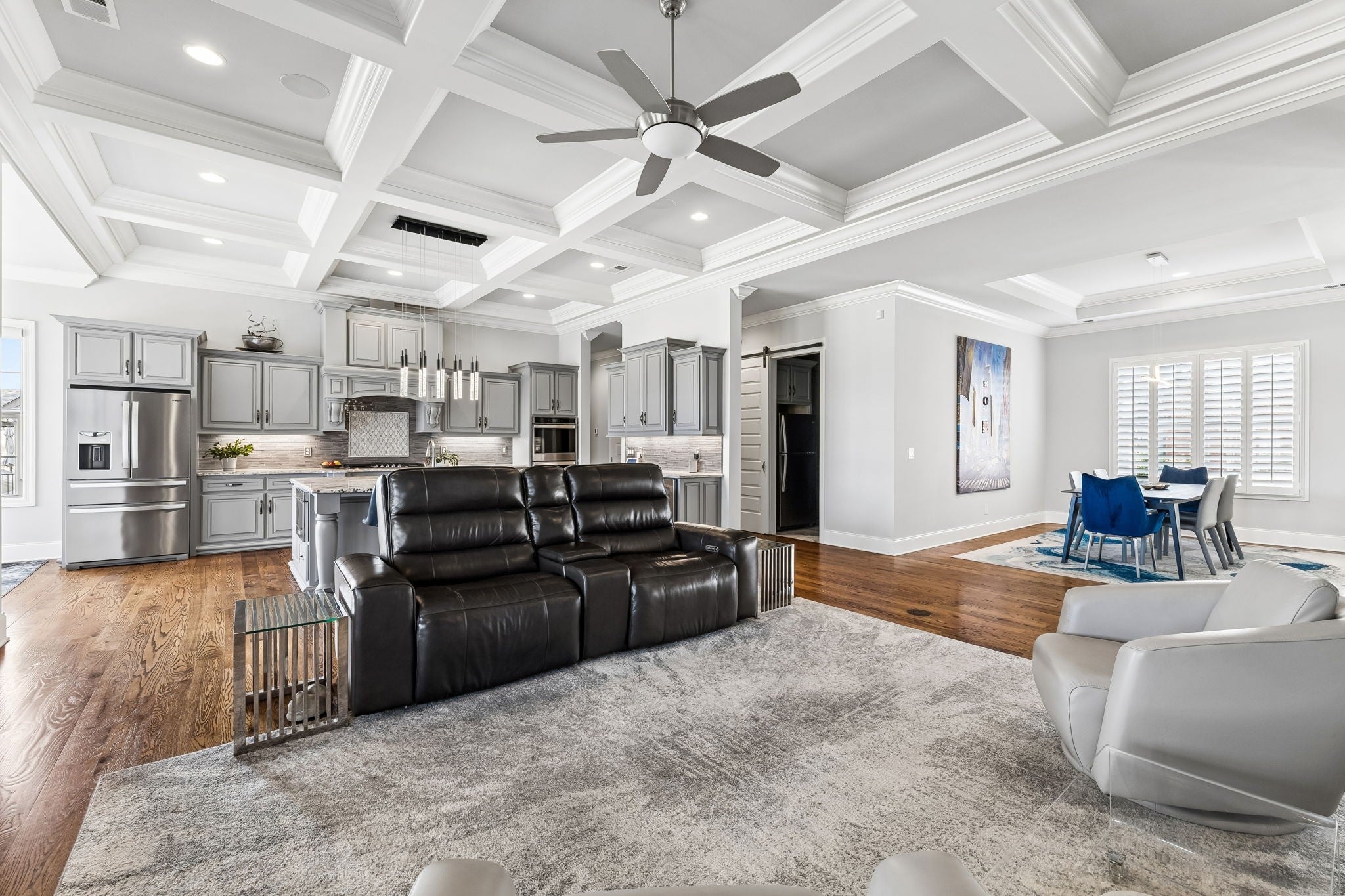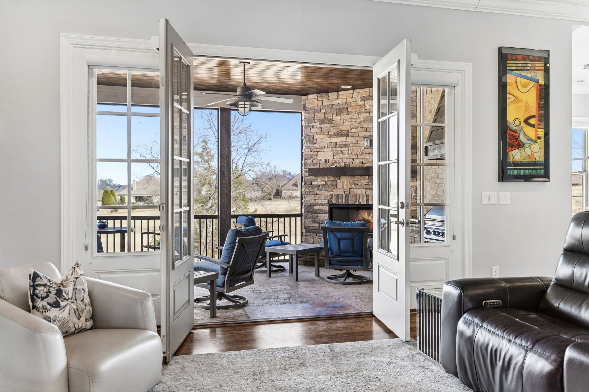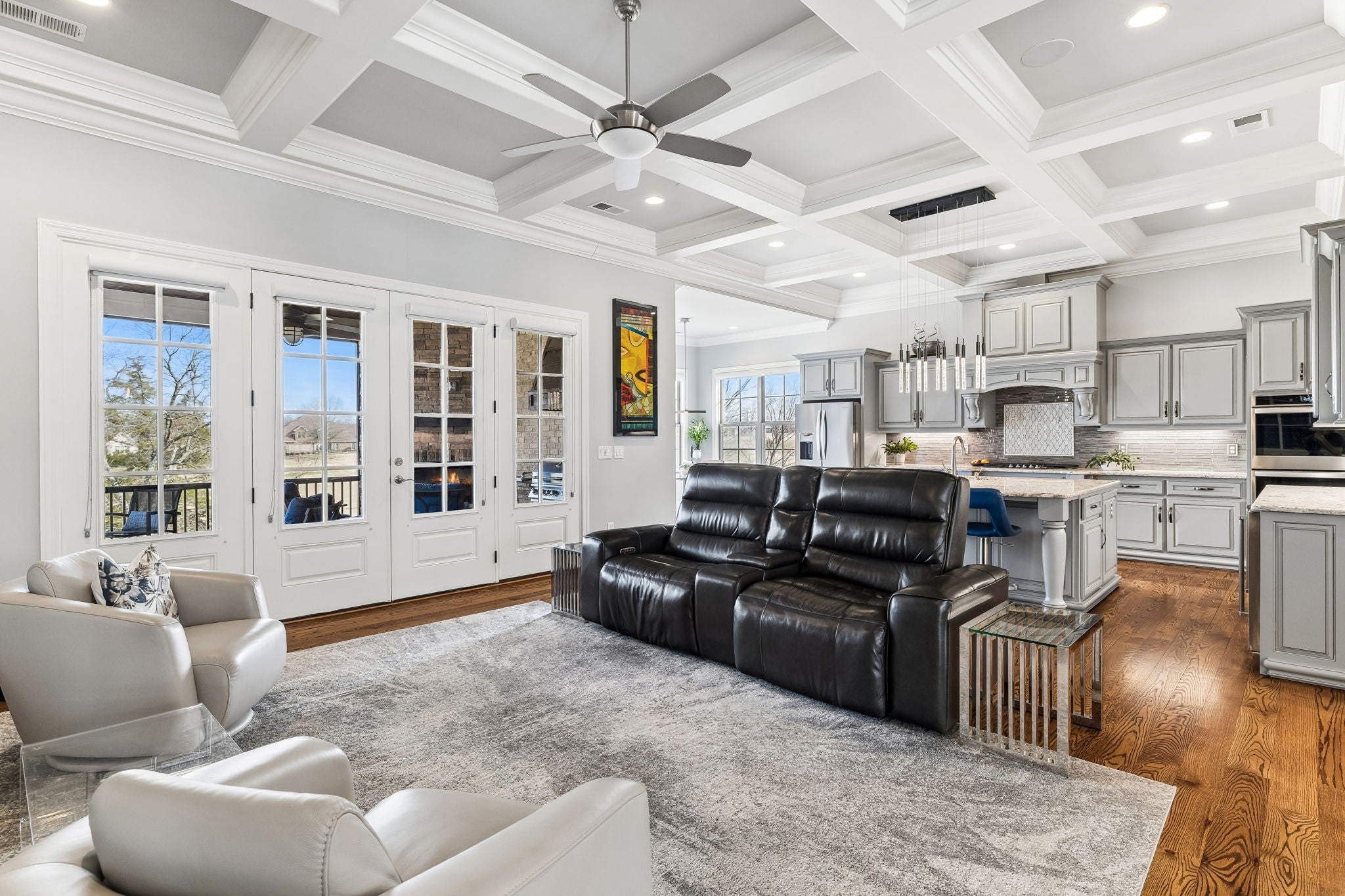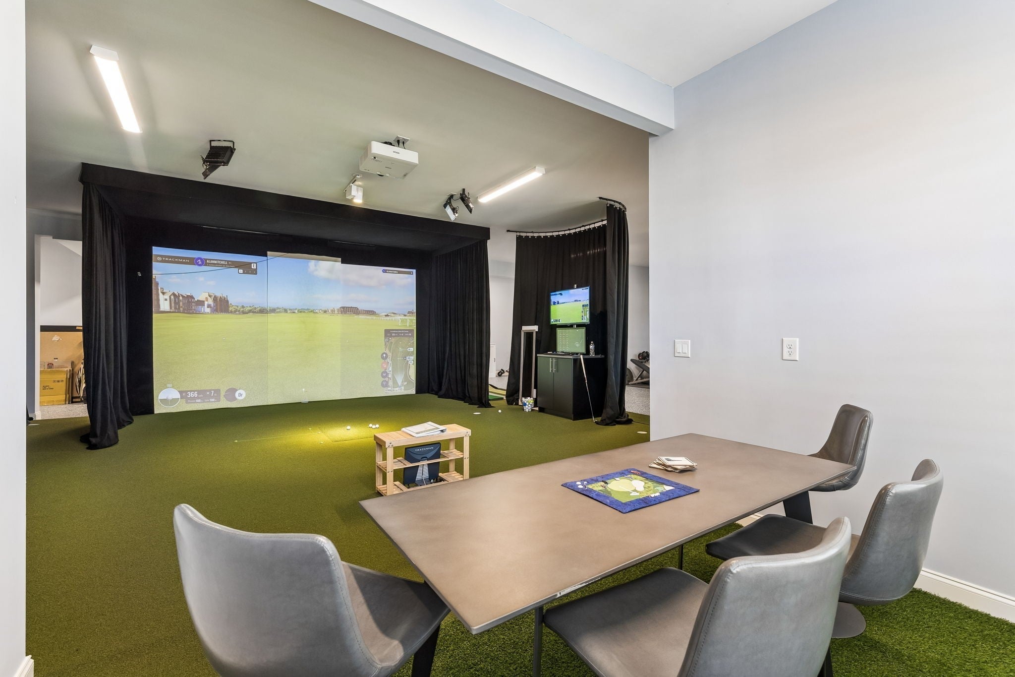 Experience luxury golf course living in this custom-built home perfectly positioned along the 10th and 16th fairways of the prestigious Foxland Harbor Golf Course. Thoughtfully designed with three levels of living, this exceptional residence blends comfort, elegance, and recreation in one remarkable setting. Golf enthusiasts will appreciate the home’s private Trackman Golf Studio, allowing you to practice and play year-round without ever leaving the house. Why wait for the weekend when you can perfect your swing anytime? The home offers the ease of mostly main-level living with three bedrooms on the main floor. The spacious great room flows seamlessly to a screened-in porch overlooking the course, creating the perfect spot to take in breathtaking sunsets, enjoy outdoor dining, or unwind with casual drinks among friends. The chef’s kitchen is designed to impress, featuring a gas cooktop, double ovens, wine fridge, oversized island, and custom cabinetry, ideal for both everyday living and entertaining. Beautiful coffered ceilings extend throughout the kitchen and great room, highlighting the craftsmanship and thoughtful design found throughout the home. The primary suite is a true retreat, featuring a spa-like bath with an oversized shower, a large soaking tub, and a custom-designed owners closet with built-in cabinetry to keep everything beautifully organized. Meticulously maintained and filled with thoughtful details at every turn, this home showcases exceptional quality and craftsmanship in one of the area’s most sought-after golf communities.