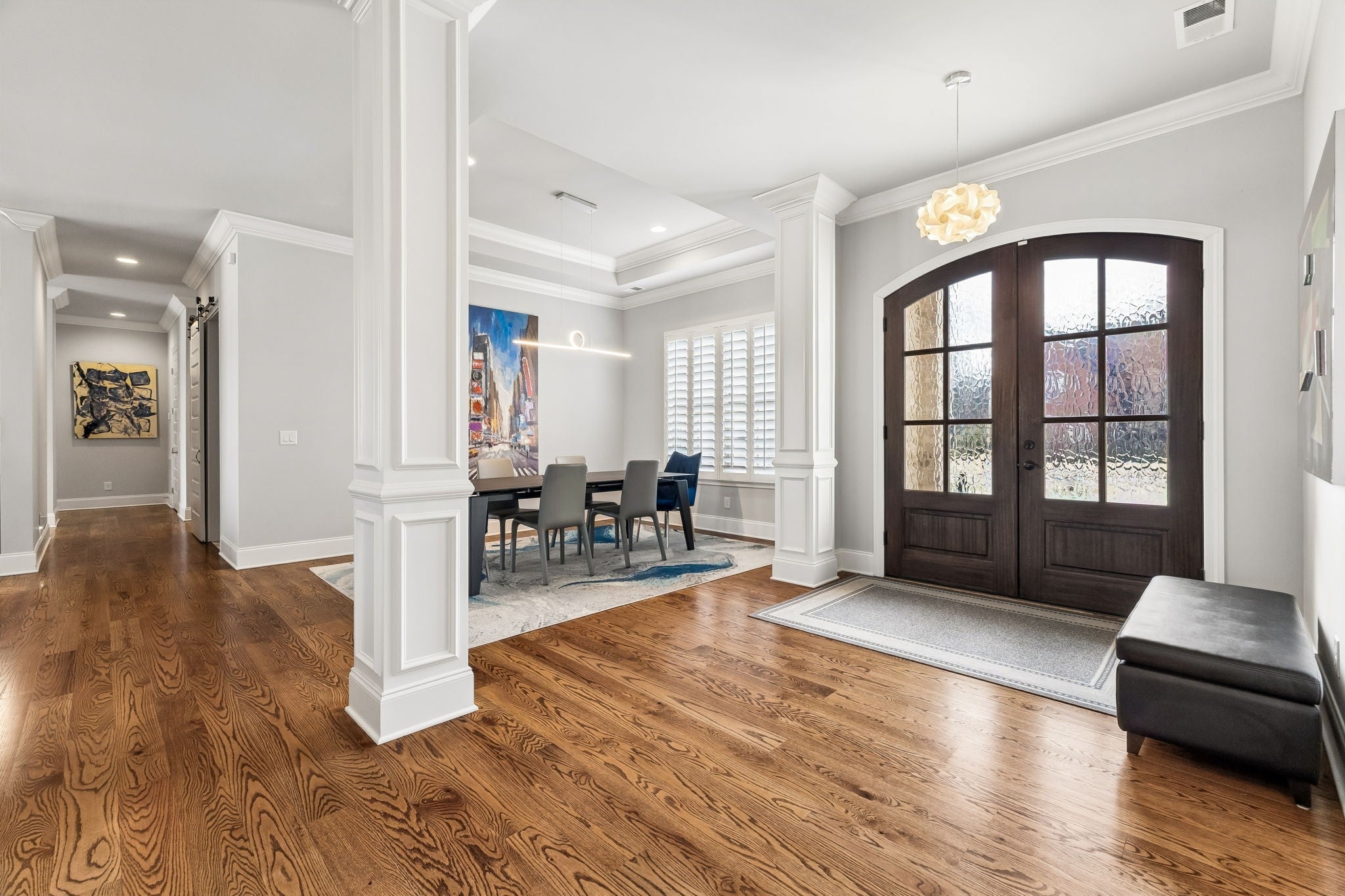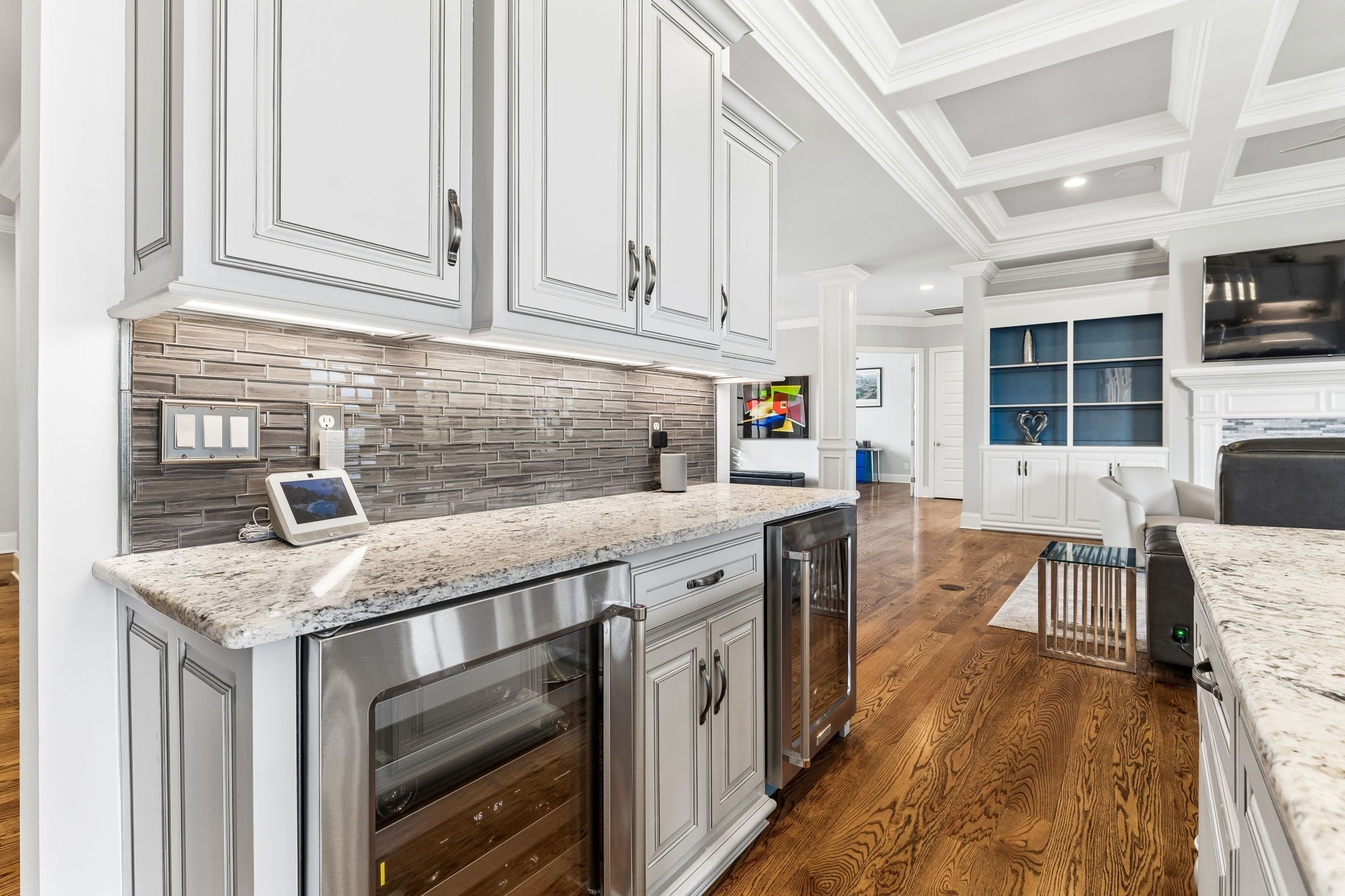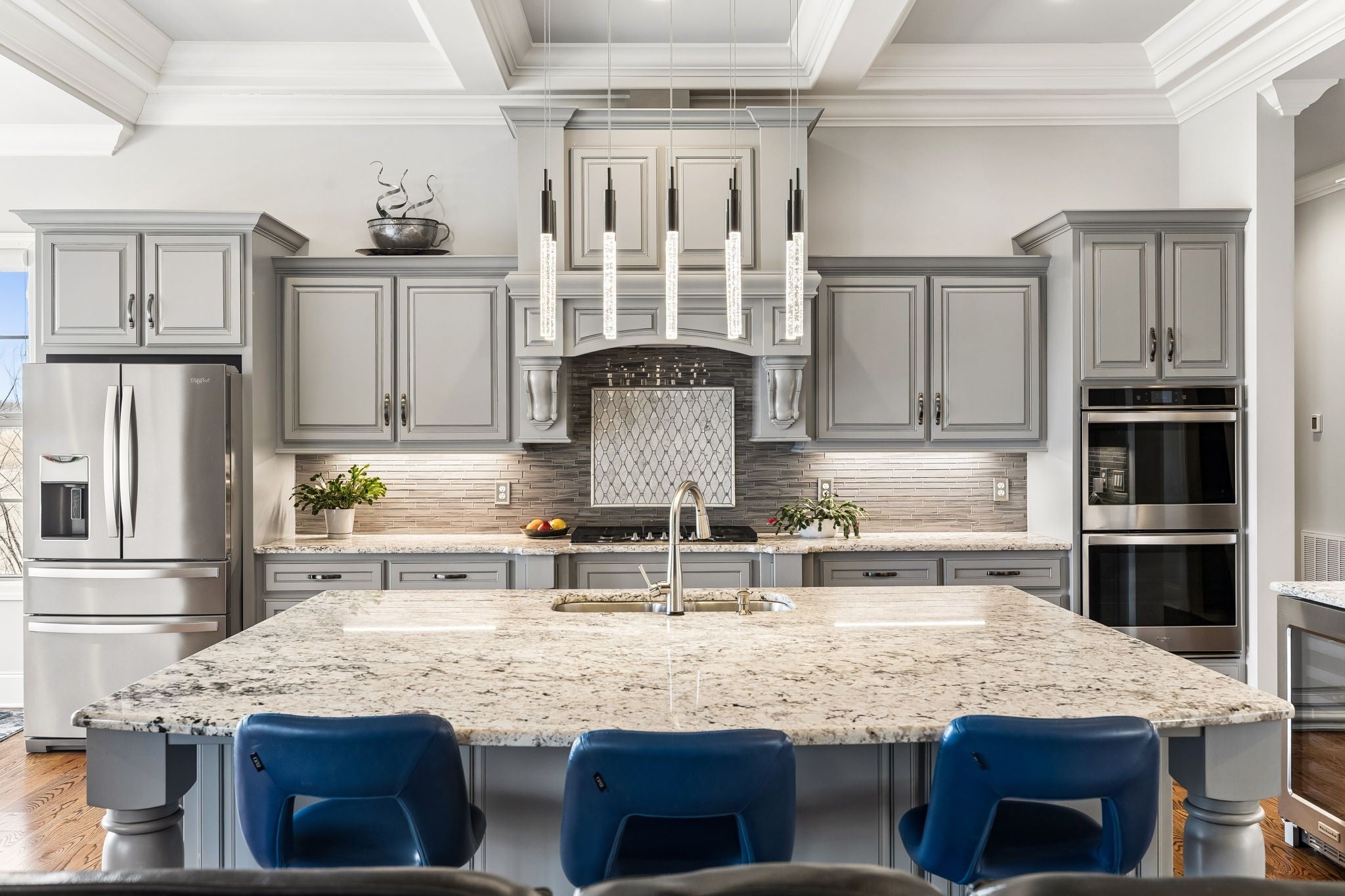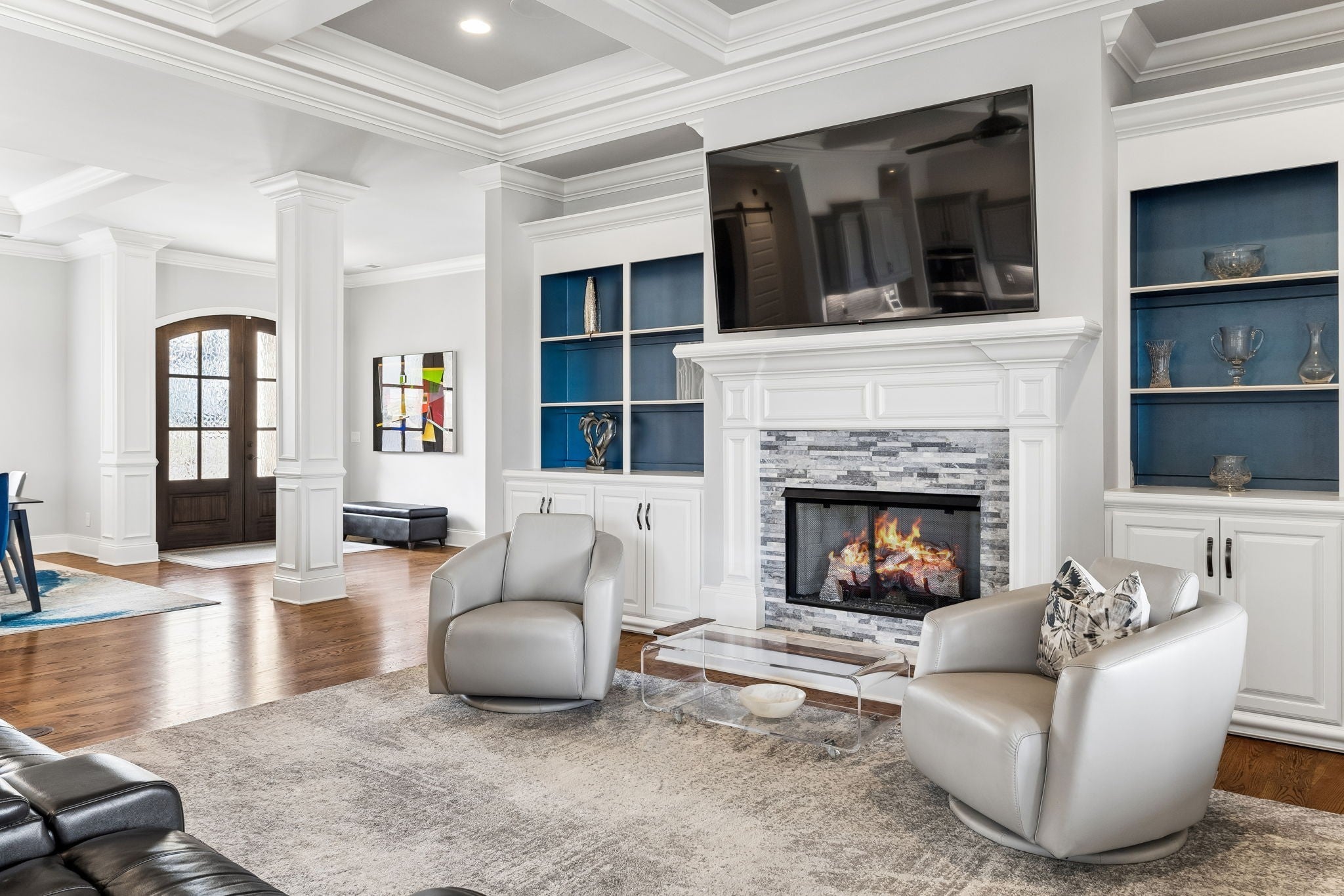 Experience luxury golf course living in this custom-built home perfectly positioned along the 10th and 16th fairways of the prestigious Foxland Harbor Golf Course. Thoughtfully designed with three levels of living, this exceptional residence blends comfort, elegance, and recreation in one remarkable setting. Golf enthusiasts will appreciate the home’s private Trackman Golf Studio, allowing you to practice and play year-round without ever leaving the house. Why wait for the weekend when you can perfect your swing anytime? The home offers the ease of mostly main-level living with three bedrooms on the main floor. The spacious great room flows seamlessly to a screened-in porch overlooking the course, creating the perfect spot to take in breathtaking sunsets, enjoy outdoor dining, or unwind with casual drinks among friends. The chef’s kitchen is designed to impress, featuring a gas cooktop, double ovens, wine fridge, oversized island, and custom cabinetry, ideal for both everyday living and entertaining. Beautiful coffered ceilings extend throughout the kitchen and great room, highlighting the craftsmanship and thoughtful design found throughout the home. The primary suite is a true retreat, featuring a spa-like bath with an oversized shower, a large soaking tub, and a custom-designed owners closet with built-in cabinetry to keep everything beautifully organized. Meticulously maintained and filled with thoughtful details at every turn, this home showcases exceptional quality and craftsmanship in one of the area’s most sought-after golf communities.