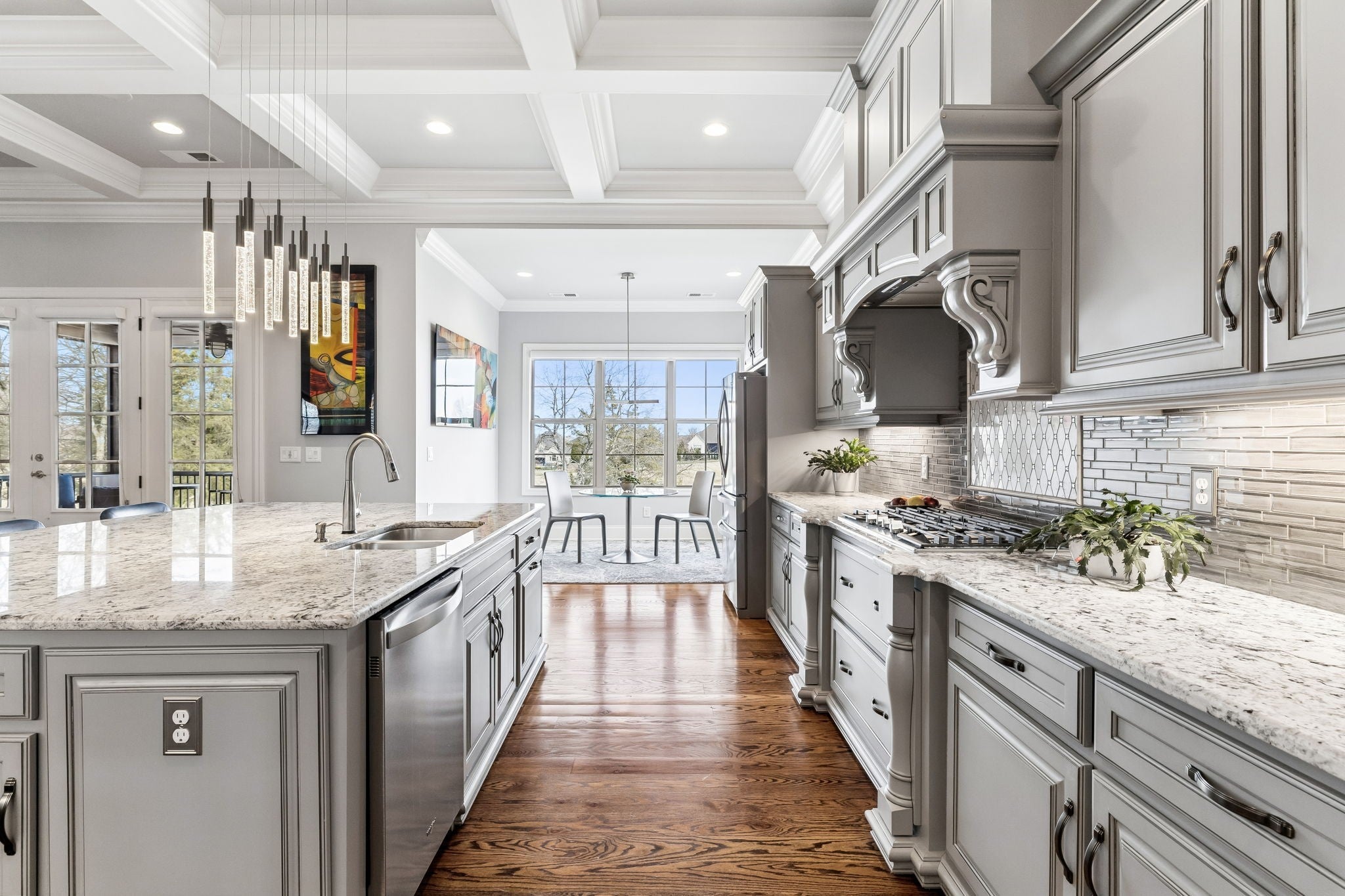 - Double Oven, Cooktop, Gas Range, Dishwasher, Disposal, Microwave, Refrigerator, Stainless Steel Appliance(s)