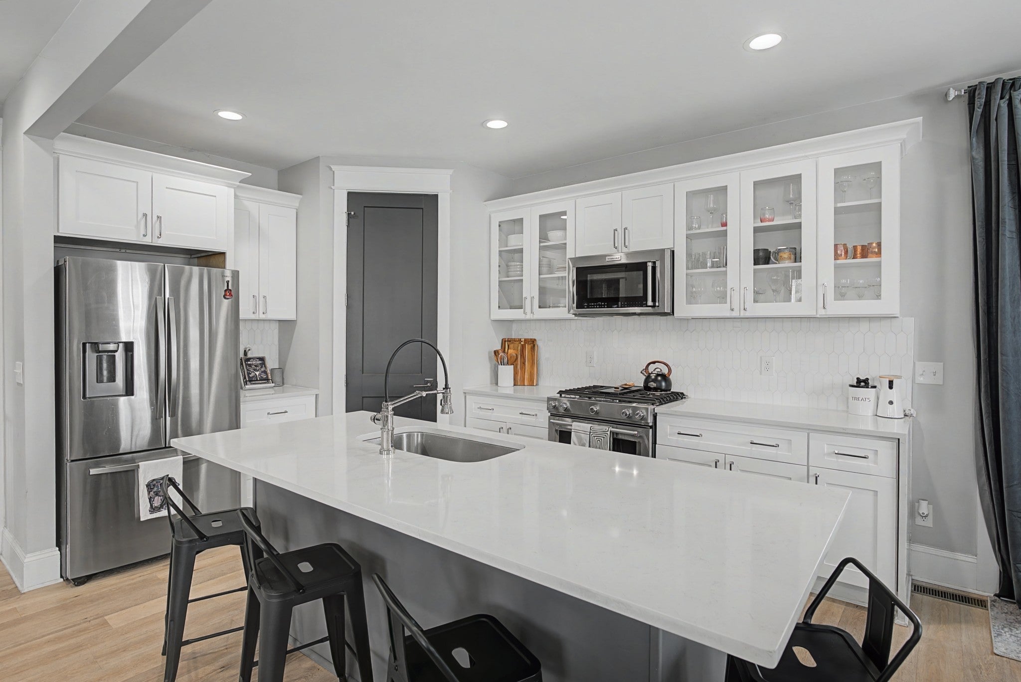 - Built-In Gas Oven, Oven, Dishwasher, Disposal, Microwave, Refrigerator, Stainless Steel Appliance(s)