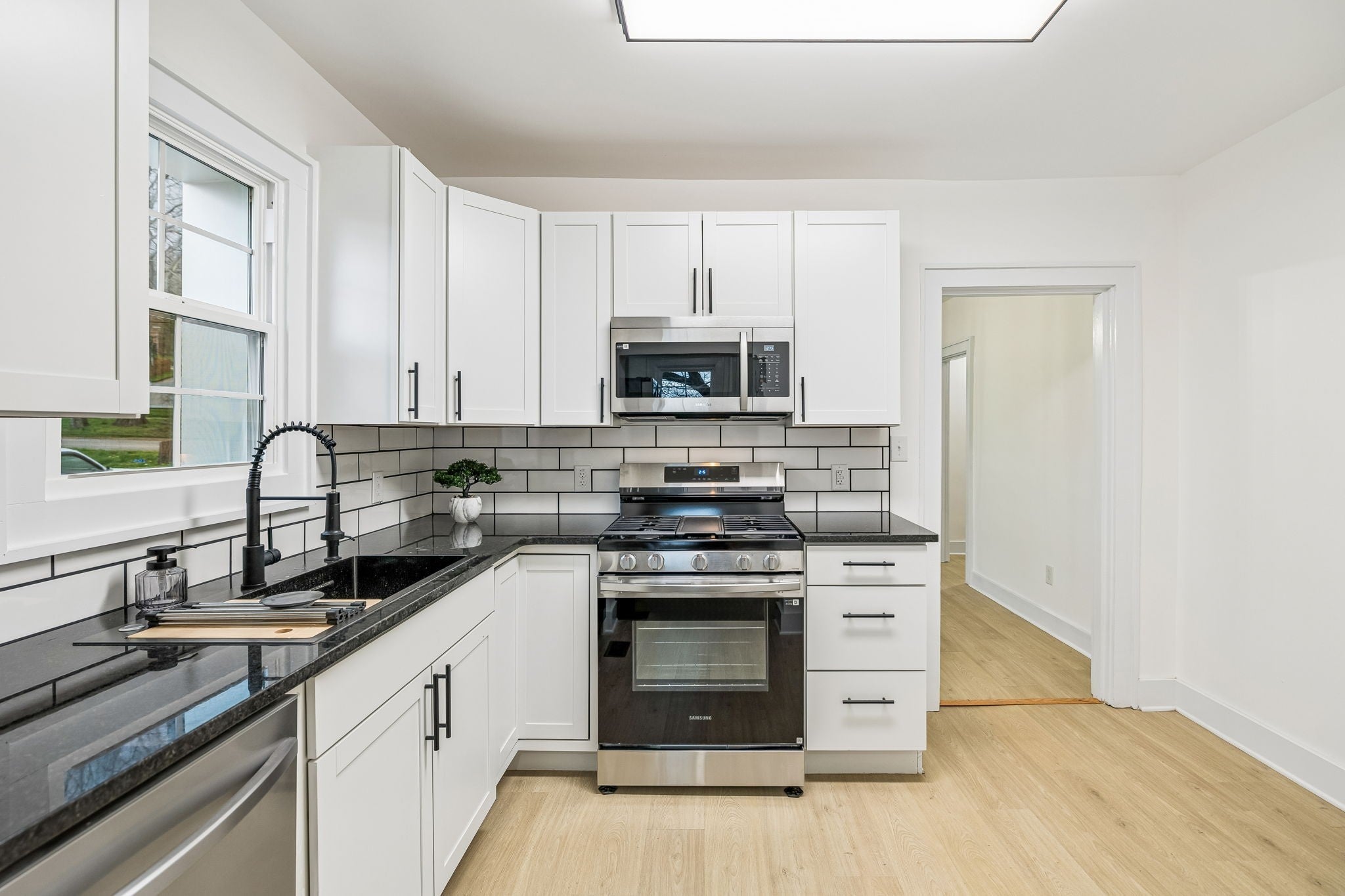 - Gas Range, Dishwasher, Microwave, Refrigerator, Stainless Steel Appliance(s)