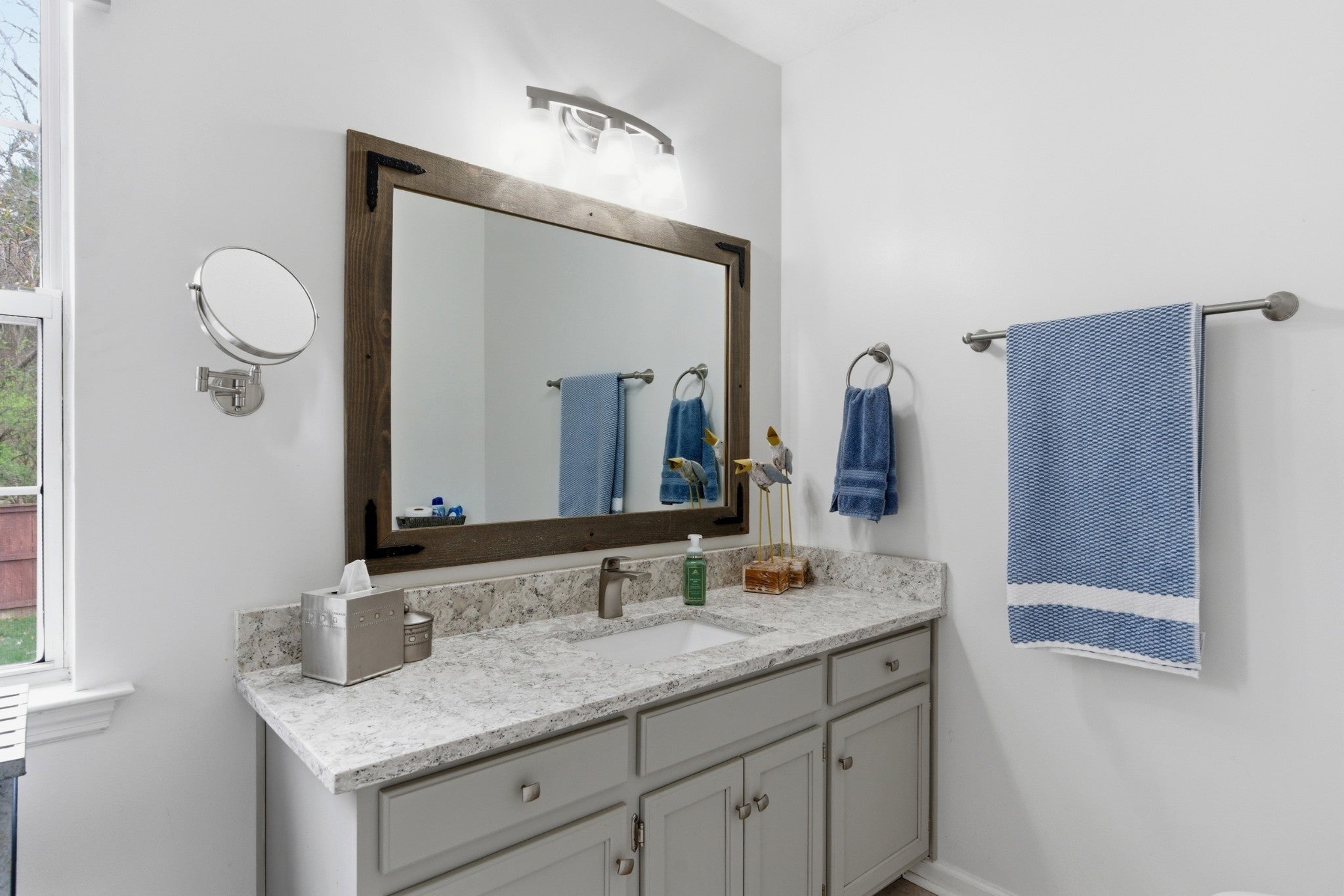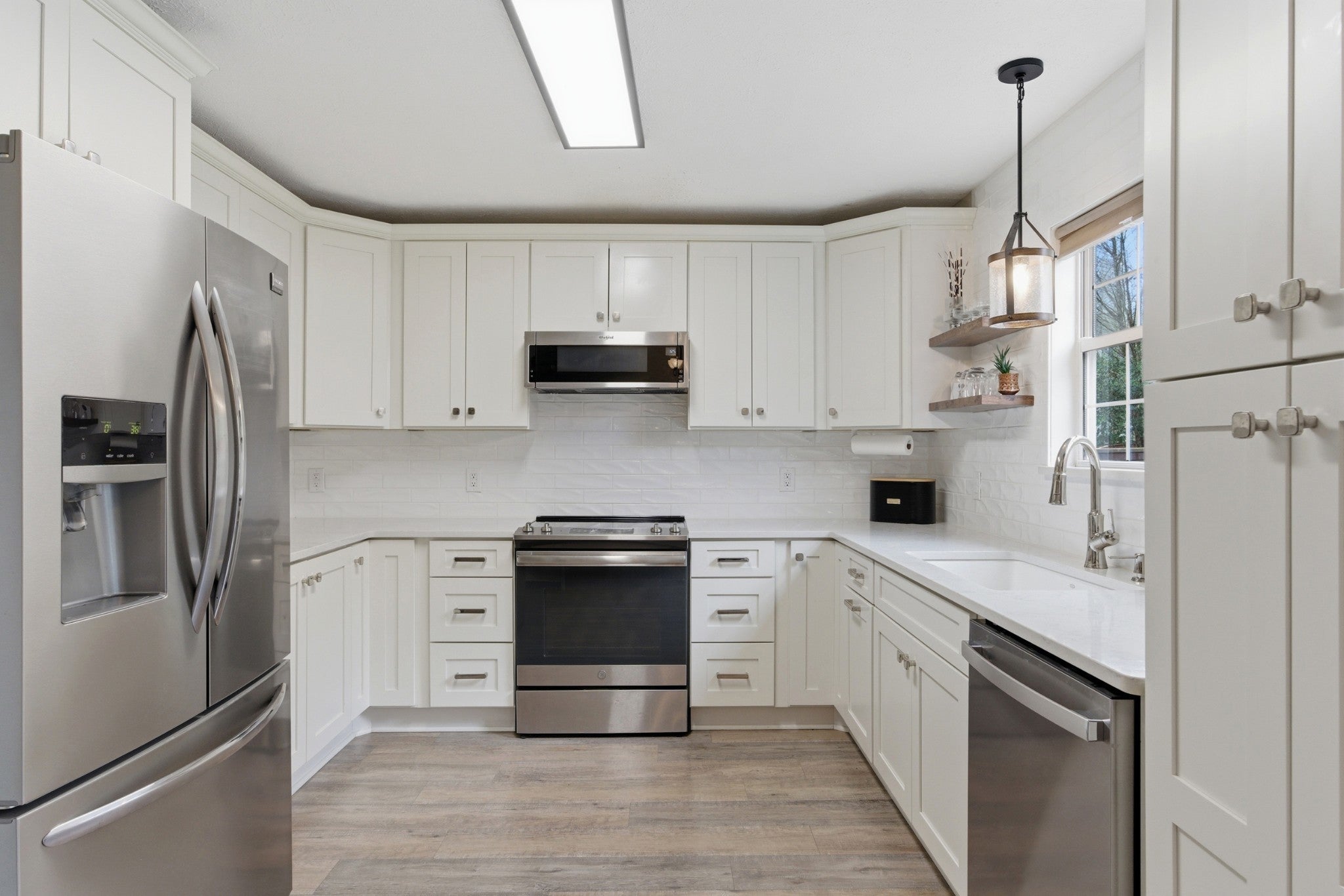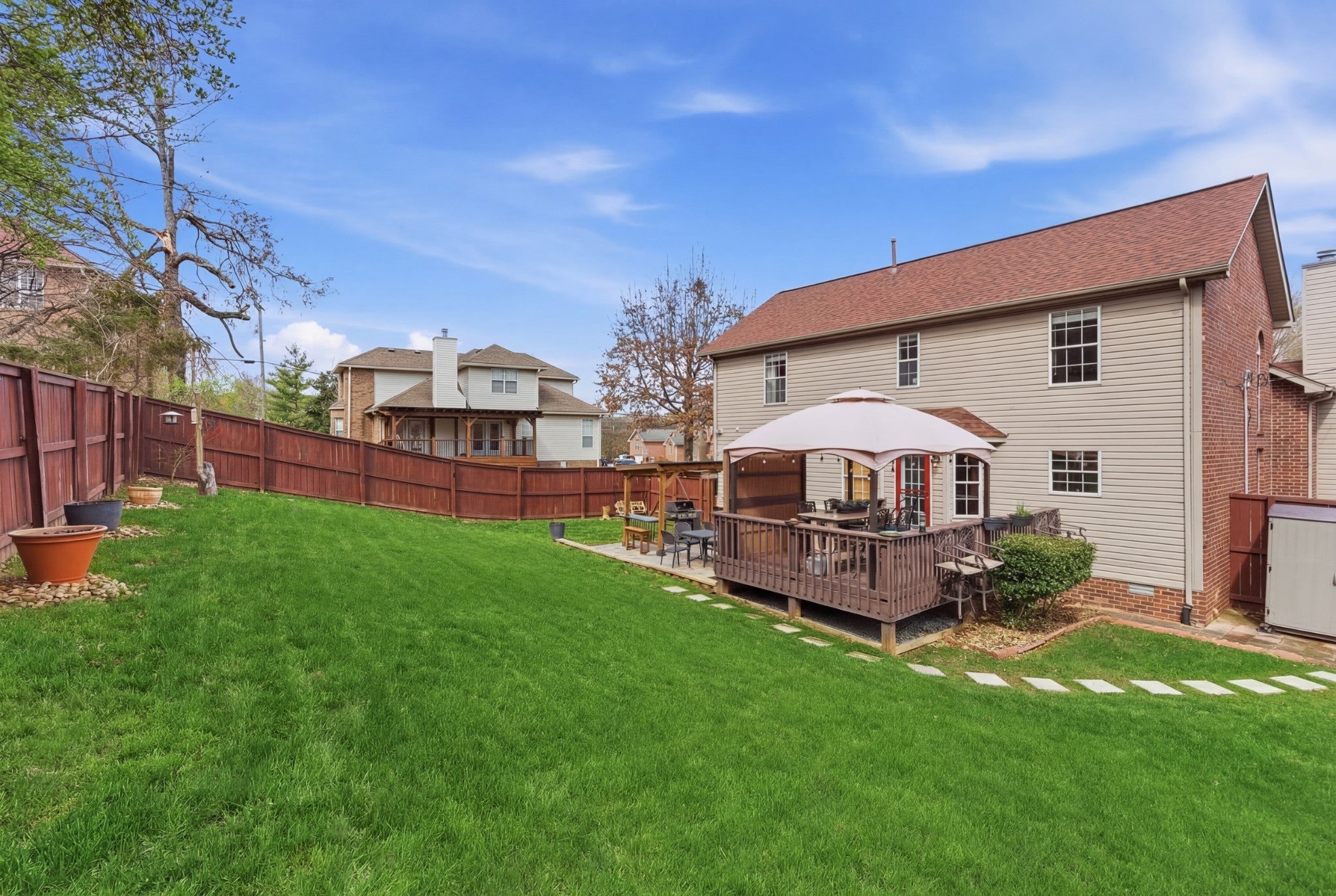Welcome to a home where thoughtful upgrades, a functional layout, and a fantastic location come together seamlessly. Built with rare three-sided brick construction, the home offers durability and timeless curb appeal. The main level feels open and inviting, anchored by a spacious living room with soaring ceilings and a cozy gas fireplace framed with quartzite and a wood mantle, creating a warm setting for everyday living or entertaining. The fully renovated kitchen offers a clean, modern feel with soft-close cabinetry, quartz countertops, tile backsplash, a slide-in range, and a low-profile microwave. The layout provides excellent storage and workspace while opening naturally to the main living areas. Just off the kitchen, the eat-in area offers a convenient space for casual meals, morning coffee, or gathering with family and friends. The primary suite is located on the main level and has been refreshed with a full bathroom remodel featuring a large walk-in shower with frameless glass, quartz countertops, and an expanded closet that provides excellent storage. Upstairs, a flexible loft overlooks the living room below and can easily function as a home office, playroom, workout area, or additional living space. Two comfortable guest bedrooms with walk-in closets complete the floor plan. Extra closets/storage spaces are found throughout the home! Outdoor living is just as inviting with an extended deck, paved grilling area, deck gazebo, and pergola, perfect for relaxing or hosting friends. The fully fenced backyard backs to a heavy tree line that creates a peaceful, private setting. The expanded aggregate concrete driveway provides additional parking. The location truly stands out. Just minutes from the heart of Lenox Village, where you can enjoy restaurants, shops, fitness studios, and everyday conveniences. With easy access to Nolensville Pike, Brentwood, and downtown Nashville, this home offers a great balance of neighborhood charm and city convenience.