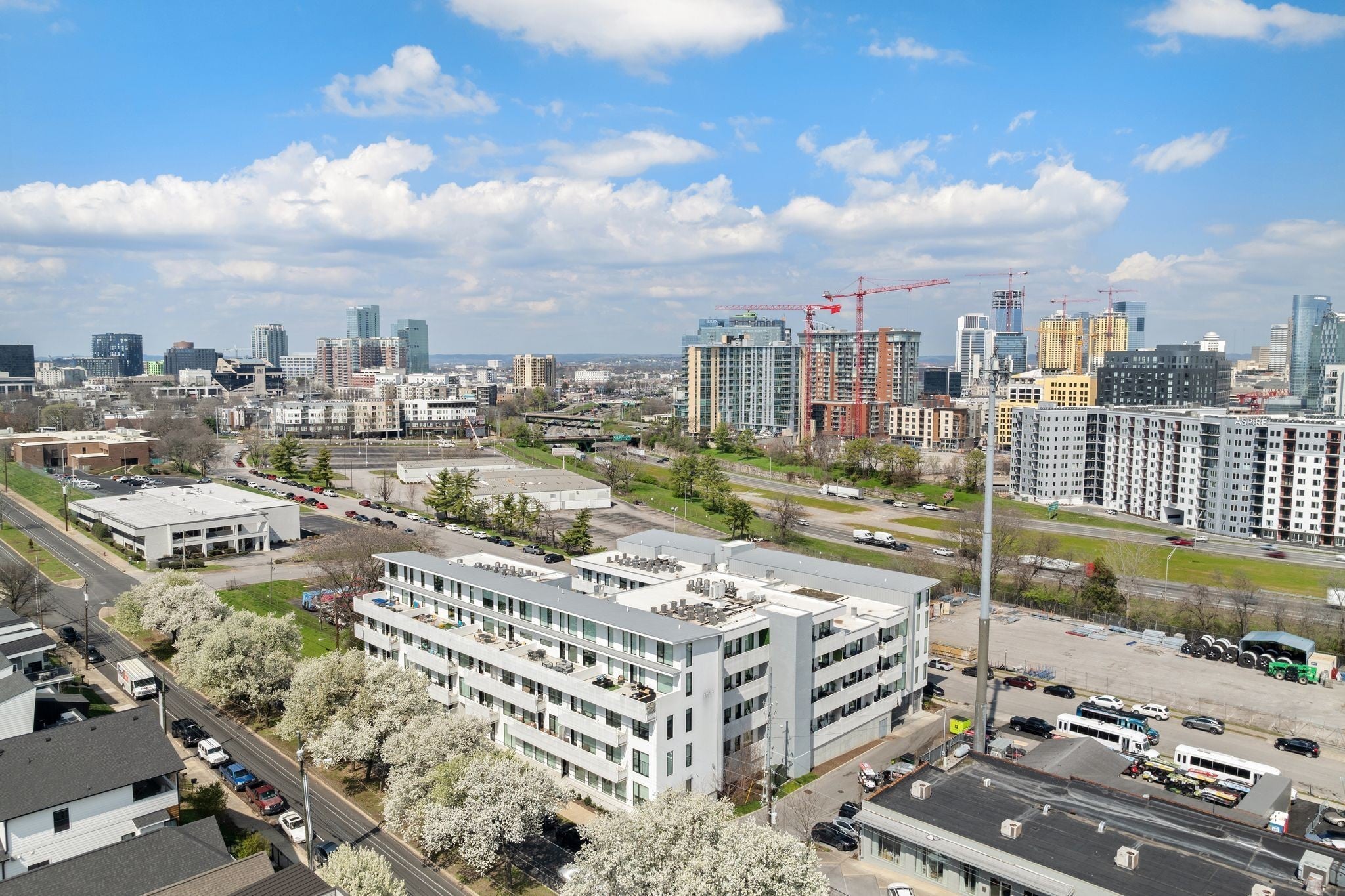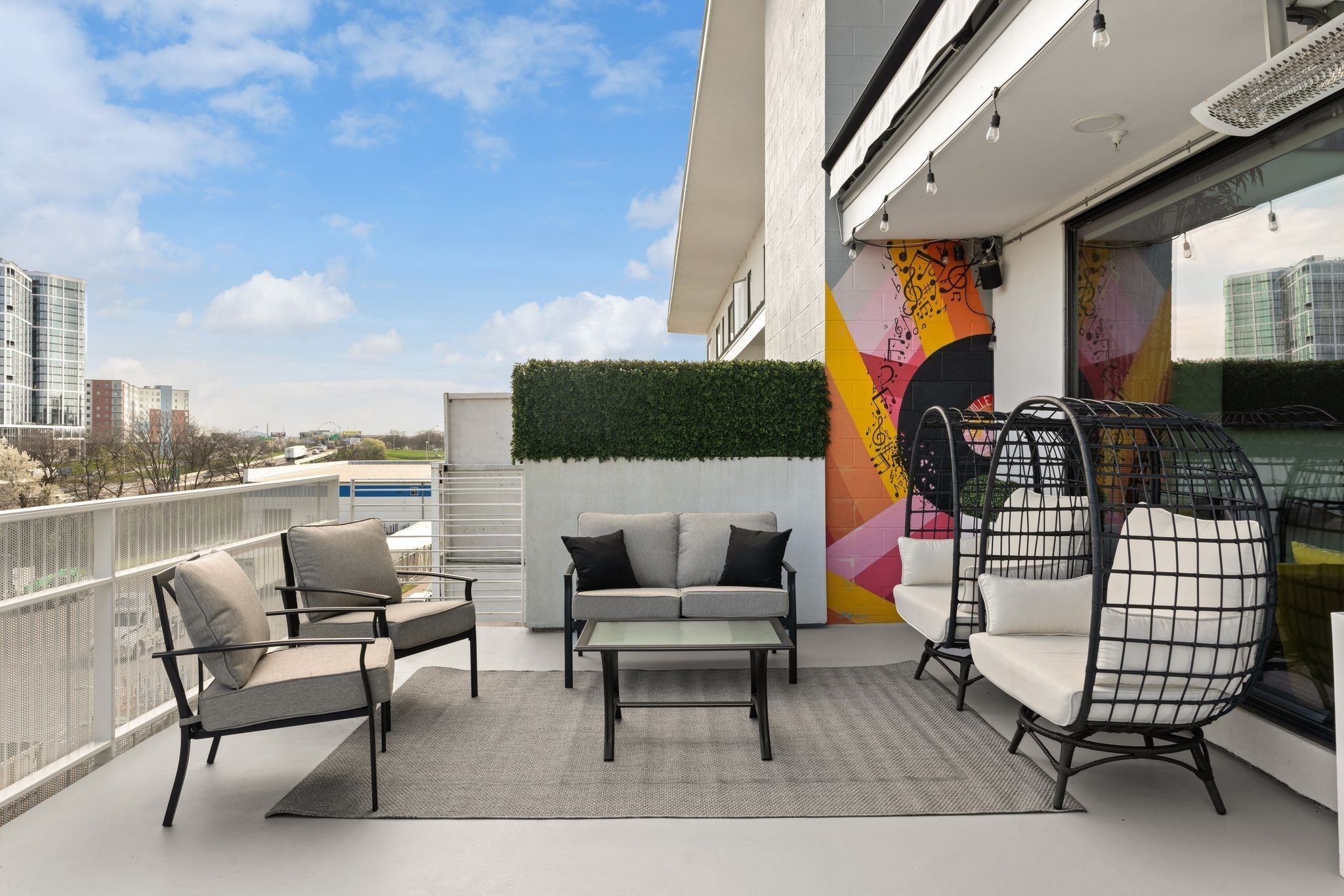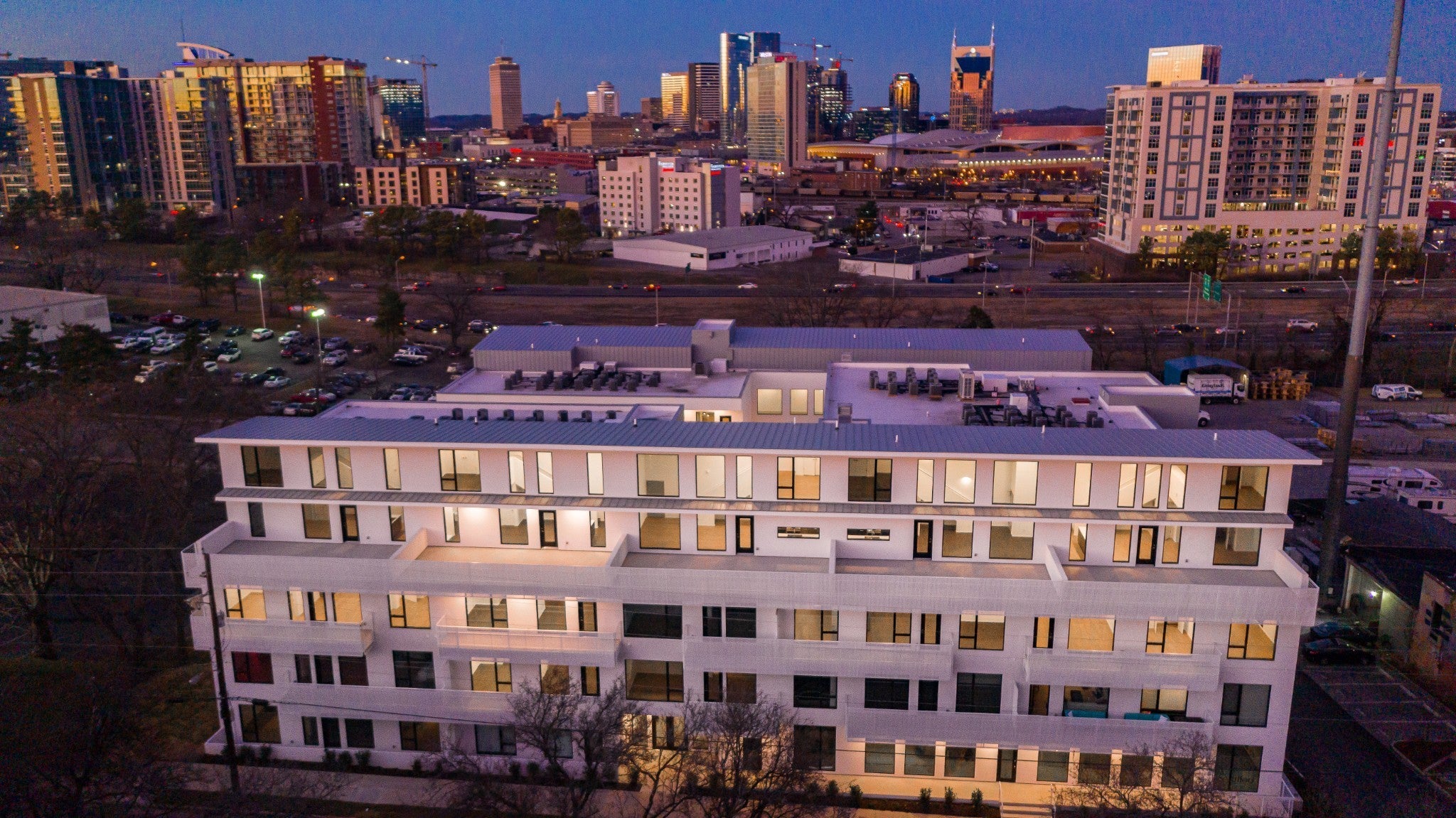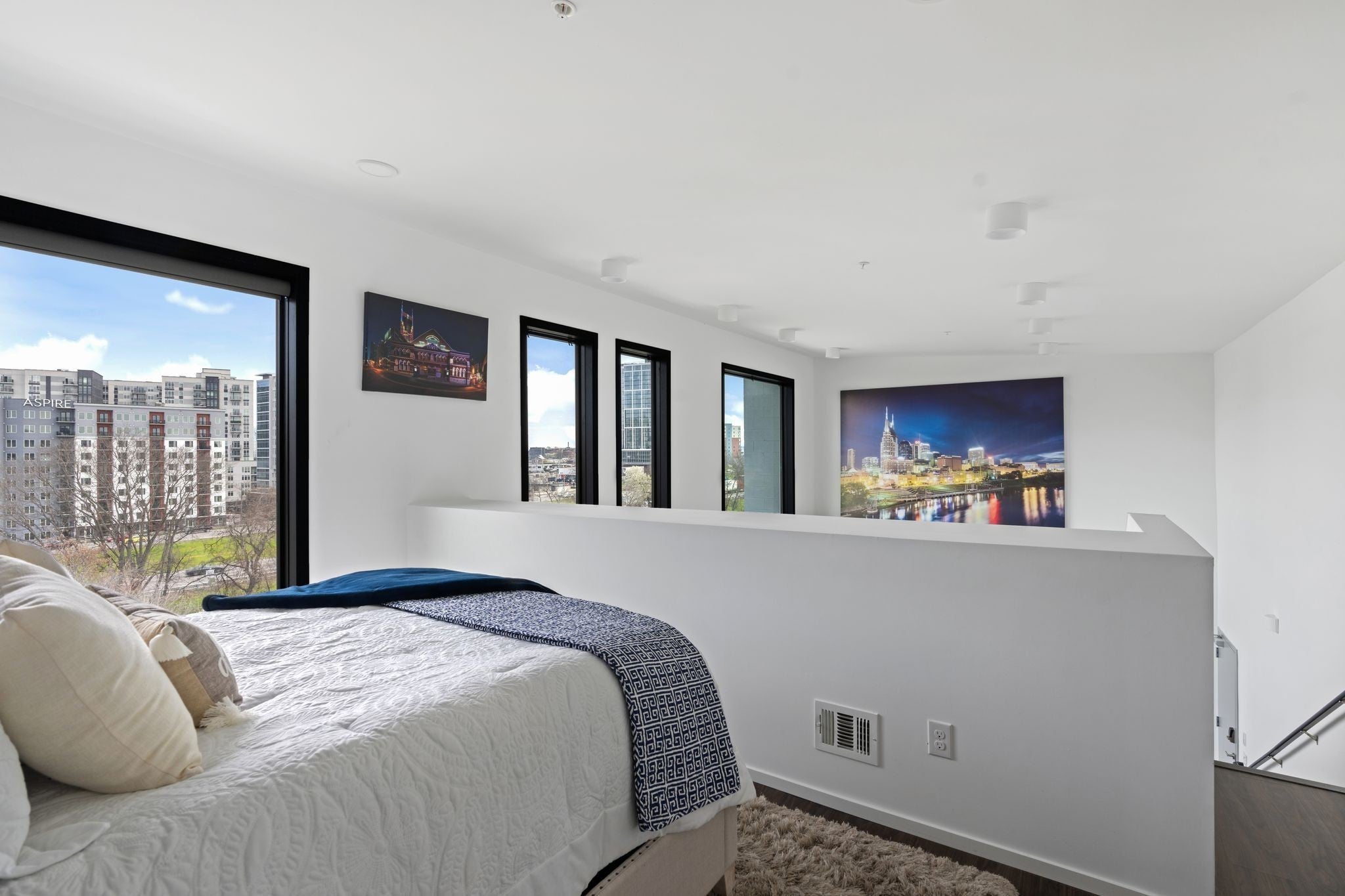 Perched above the city in the heart of Nashville, 320 Illume is the perfect investment opportunity to own one of the building’s most coveted units—offering the largest private patio in the entire complex + sweeping skyline views that elevate everyday living. Designed as a true modern loft featuring dramatic 20-foot ceilings + expansive commercial-grade Pella windows that flood the space w/ natural light while framing the city beyond. Remote-controlled shades, recessed lighting, + built-in speakers throughout the interior + patio create a seamless, elevated atmosphere for both relaxing + entertaining. The open living space flows effortlessly into a thoughtfully designed bar area w/ a mini beverage refrigerator, ideal for hosting. A dedicated linen closet adds practical storage without compromising the clean, modern aesthetic. The bedroom retreat is anchored by a bold architectural accent wall, offering both comfort + visual impact. What truly sets Unit 320 apart is the extraordinary patio—a true extension of the living space. Outfitted with industrialgrade heaters, a remote-controlled retractable canopy, built-in speakers, and a custom mural, this outdoor space is designed for yearround enjoyment. Whether entertaining guests or unwinding with skyline views, this patio is unmatched in scale + experience. Located just a 10-minute walk to The Gulch + within easy walking distance to Broadway + Bridgestone Arena, Illume offers a prime urban lifestyle w/ resort-style amenities including a courtyard pool, fitness center, dog run, grilling area, secure building access, + assigned parking in a secure garage. Approved for non-owner occupied short-term rental, this residence presents a compelling opportunity for investors or owner-occupants alike—offered fully furnished + turnkey, w/ flexibility for personal use, long-term rental, or STR management. Modern, walkable, + investment-ready—Unit 320 is an exceptional Nashville offering where design, location, + lifestyle converge