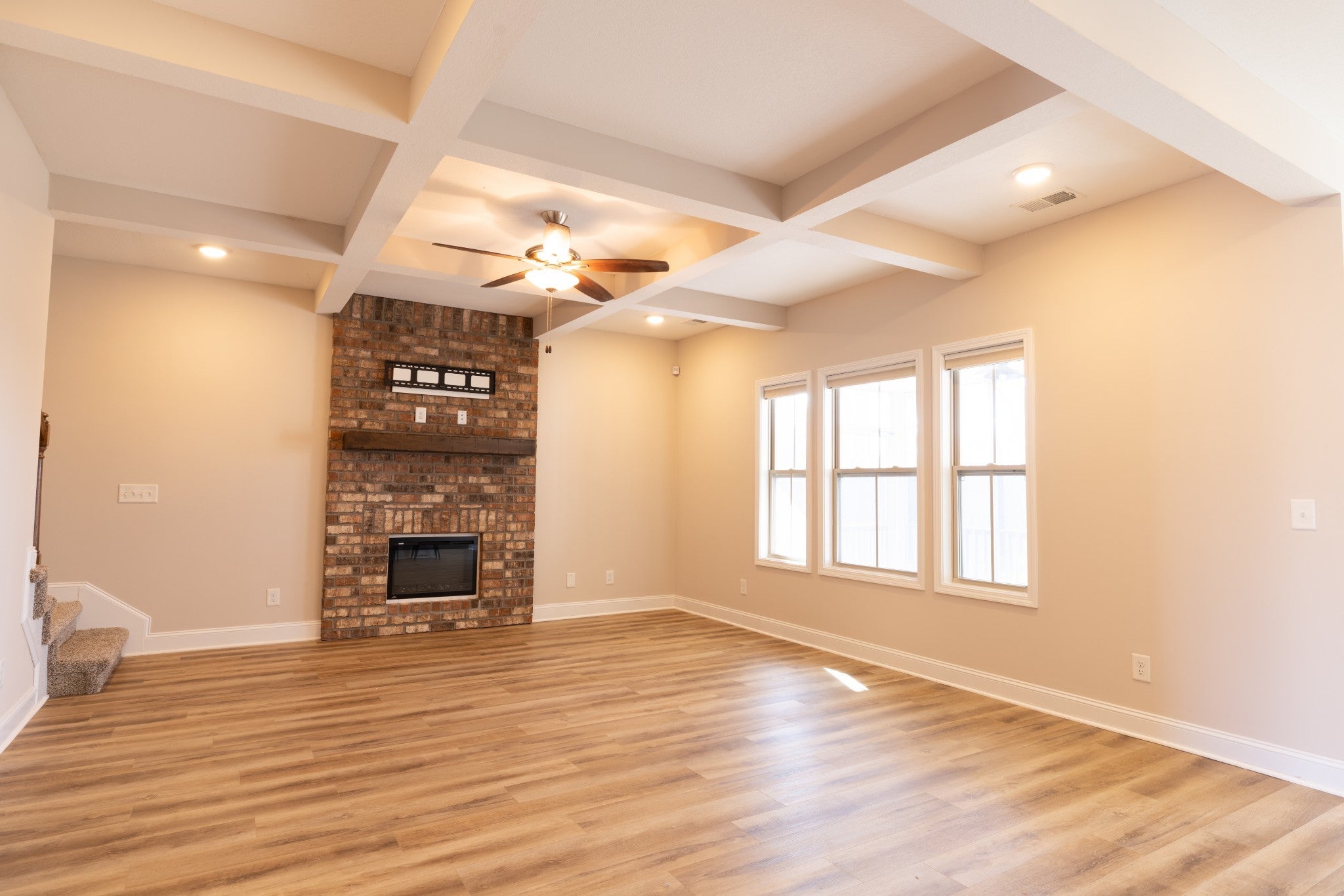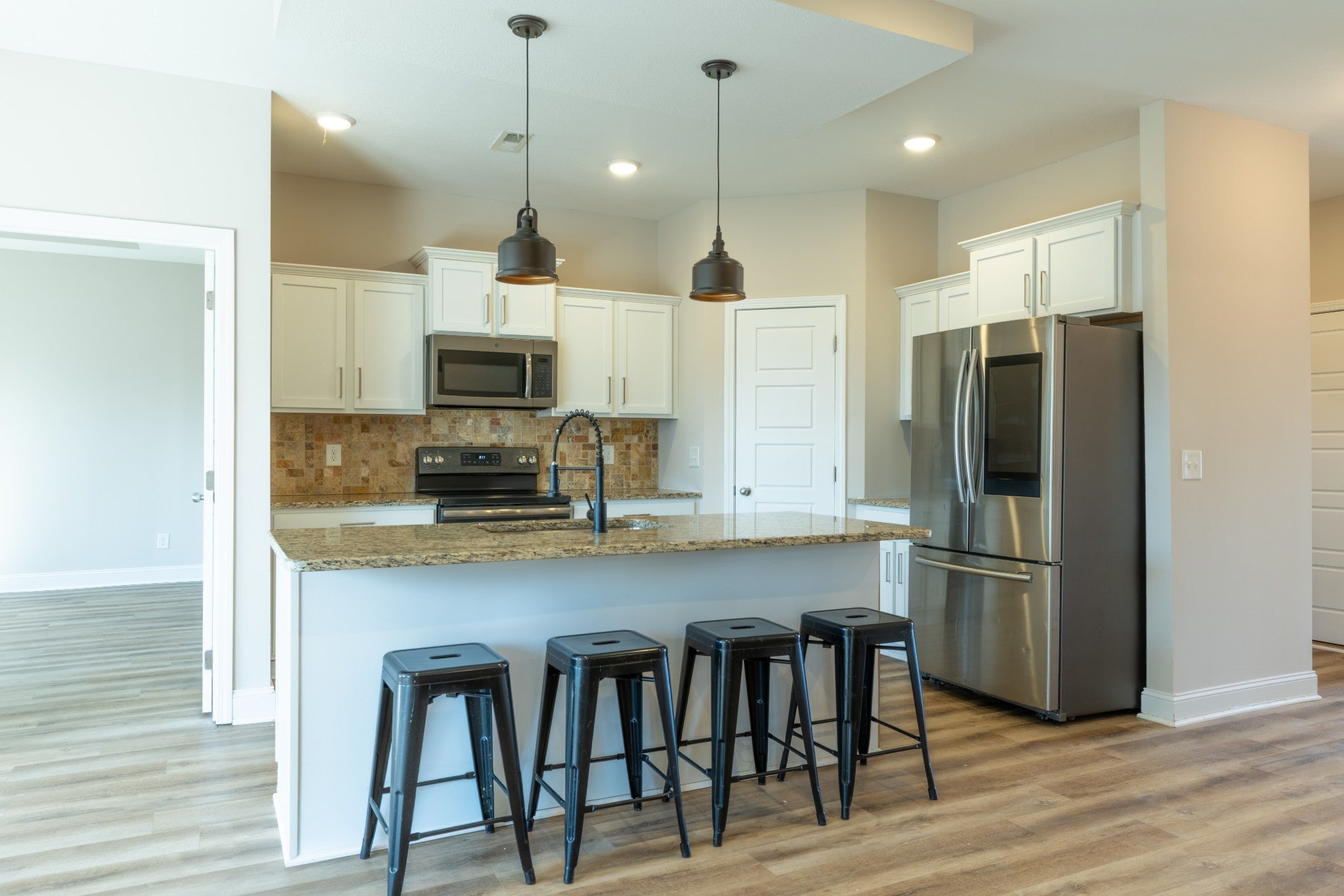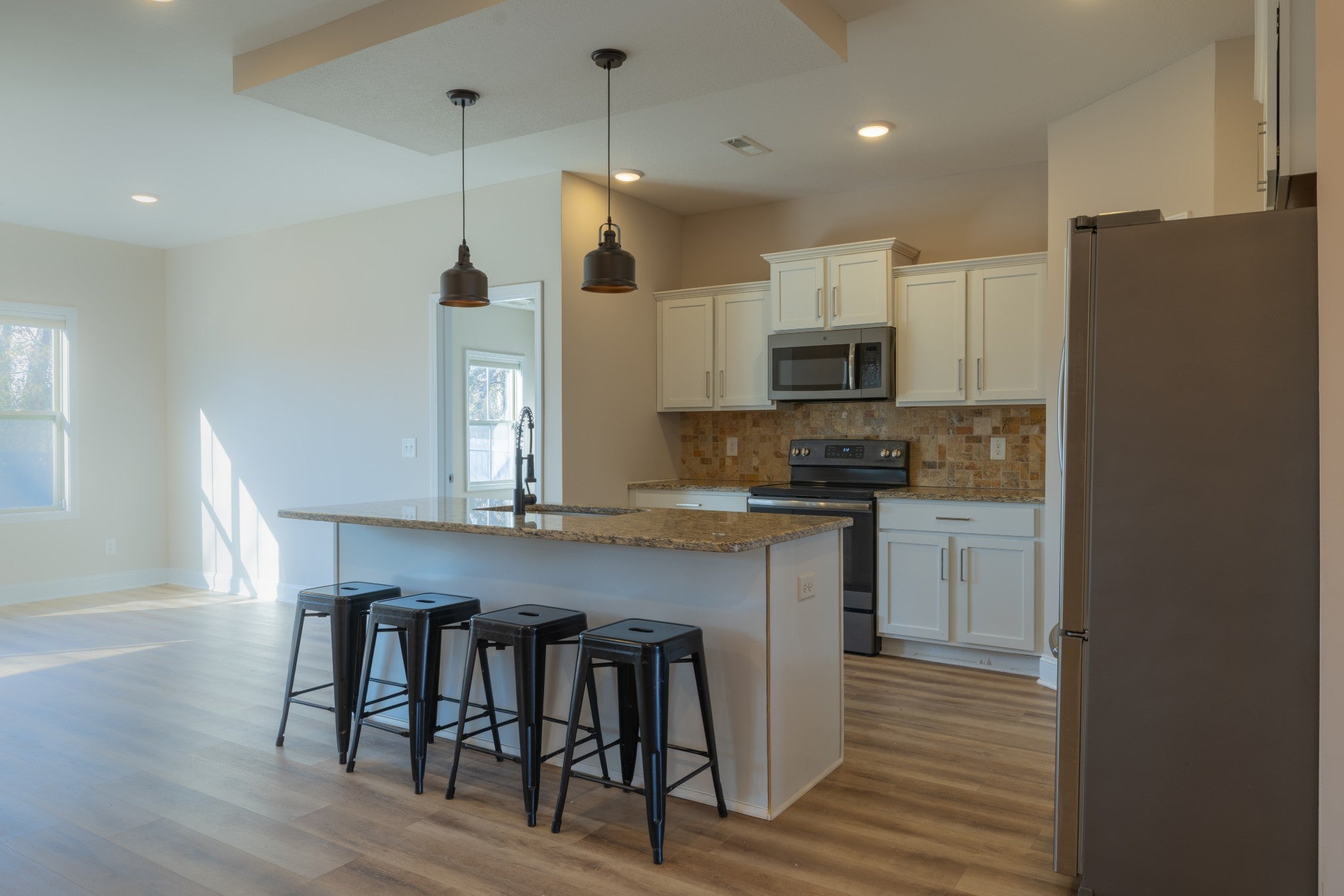 Welcome to 1169 Ewing Way — a beautifully designed home in the highly sought-after Sango area! This stunning property blends modern elegance with everyday comfort and has been freshly painted, features brand-new LVP flooring on the first floor, and brand-new carpet upstairs, making it completely move-in ready. Step inside to discover an open and inviting floor plan filled with natural light, perfect for entertaining or relaxing at home. The kitchen is a true showpiece featuring quartz countertops, stainless steel appliances, custom cabinetry, and a large island that flows seamlessly into the spacious living area with its cozy fireplace. One of the standout features of this home is its functional layout with three bedrooms located on the main level, including the primary suite. The primary bedroom offers a peaceful retreat with a spa-like en-suite bathroom complete with double vanities, a soaking tub, a tiled shower, and a generous walk-in closet. Upstairs, you’ll find brand-new carpet, an additional bedroom, a full bathroom, and a versatile bonus room—perfect for a home office, playroom, or media space. The home also features an oversized laundry room with built-in storage for added convenience. Step outside and enjoy outdoor living on the screened-in covered patio overlooking a privacy-fenced backyard with no rear neighbors, creating the perfect space for relaxing or entertaining. The property also includes an automatic sprinkler system covering the front, sides, and back of the home, helping keep the yard beautifully maintained year-round. Conveniently located near shopping, dining, and easy access to I-24, this home offers the perfect balance of comfort, style, and convenience in one of Clarksville’s most desirable neighborhoods.