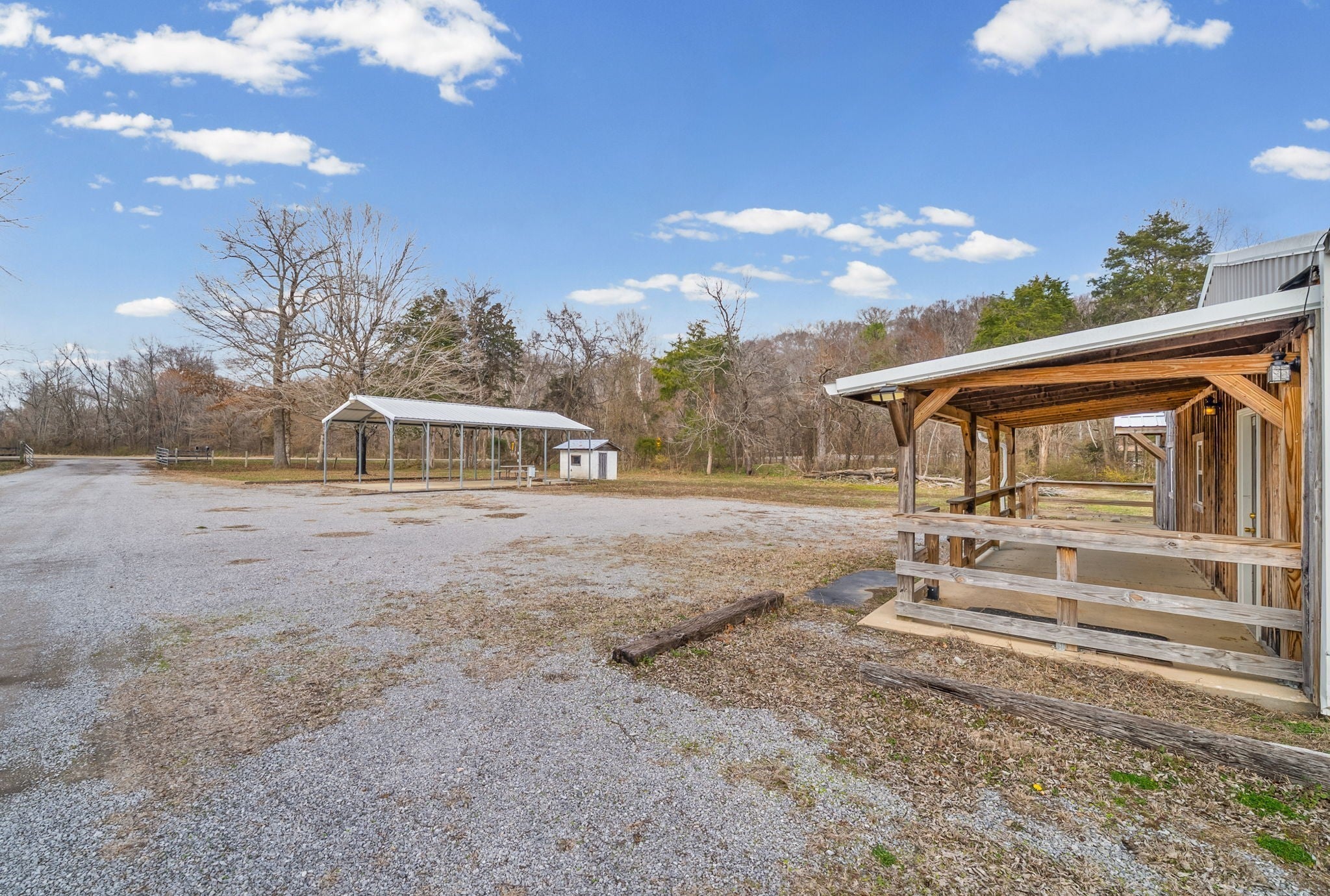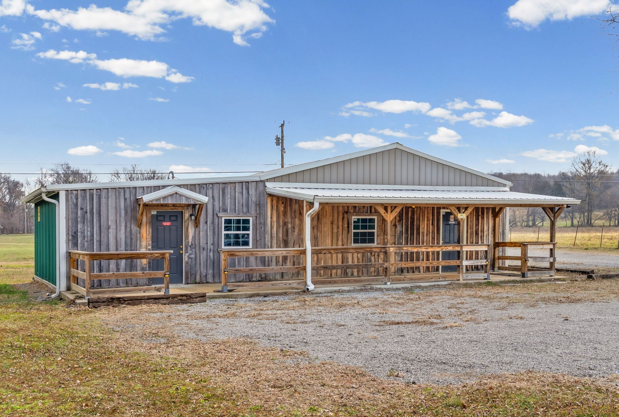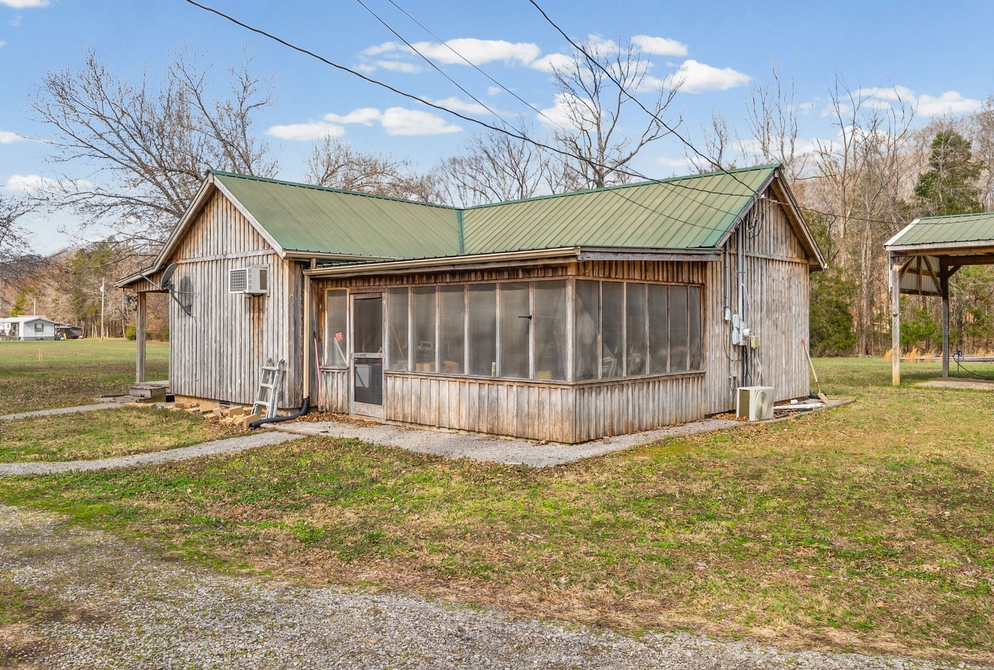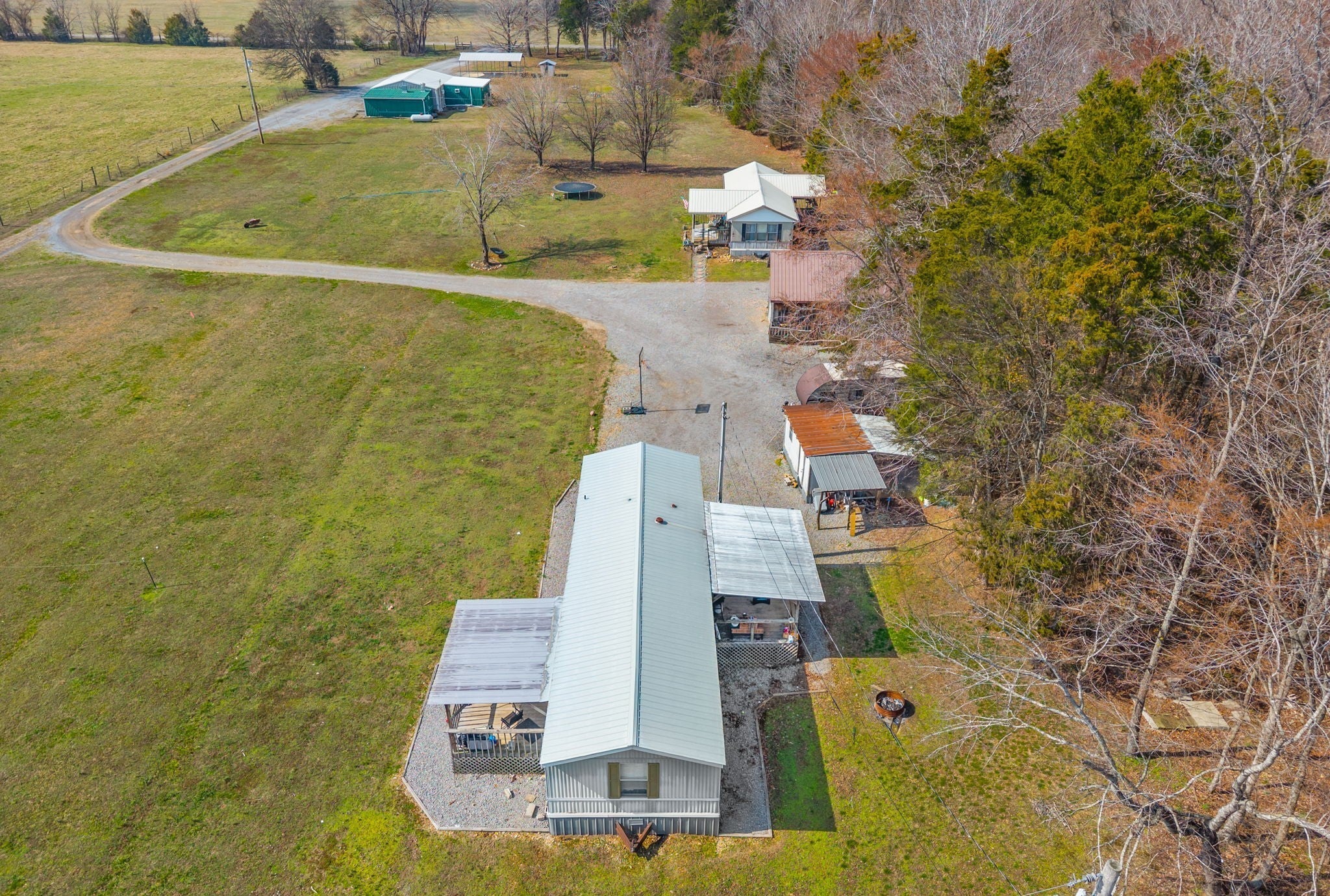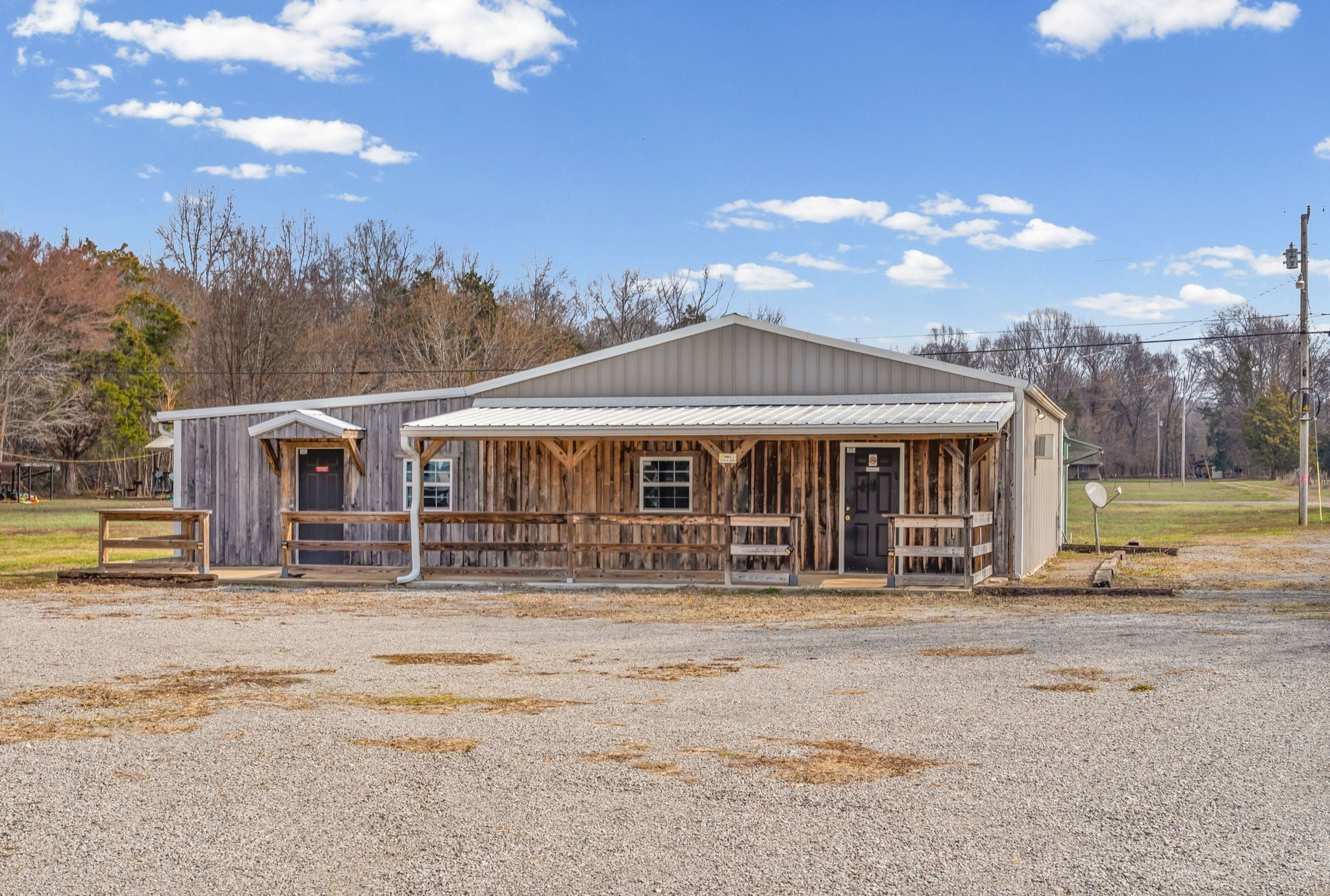 UNIQUE PROPERTY! On 7.48 acres with no restrictions, no zoning and minutes away from KY Lake-marina-launching and county airport, you find this neat mixture property. In the front of the property you find a 2004 commercial building with recent upgrades. 2024SF w/ 2 public bathrooms and located within an area for liquor and beer license; if desired business interest and approved (Previous Bar&Grill). Front section is Commercial and back section is Residential at the moment).Next, you find 2=>2BR-1BA mobile homes w/ storage building and tenant occupied. Then a clear and level 1.4 acre lot. Lastly, you find a neat rustic cabin with open great room-1BR-1BA, covered porch, back screened patio, a large detached covered pavilion-covered camper shelter w/50 AMP service-water & septic hookup, a large 3 bay storage garage/shed w/ back fish clean station and a 2 stall barn with back fenced area. This is an opportunity property for family, for commercial use, for campground with front store or what ever your heart desires!