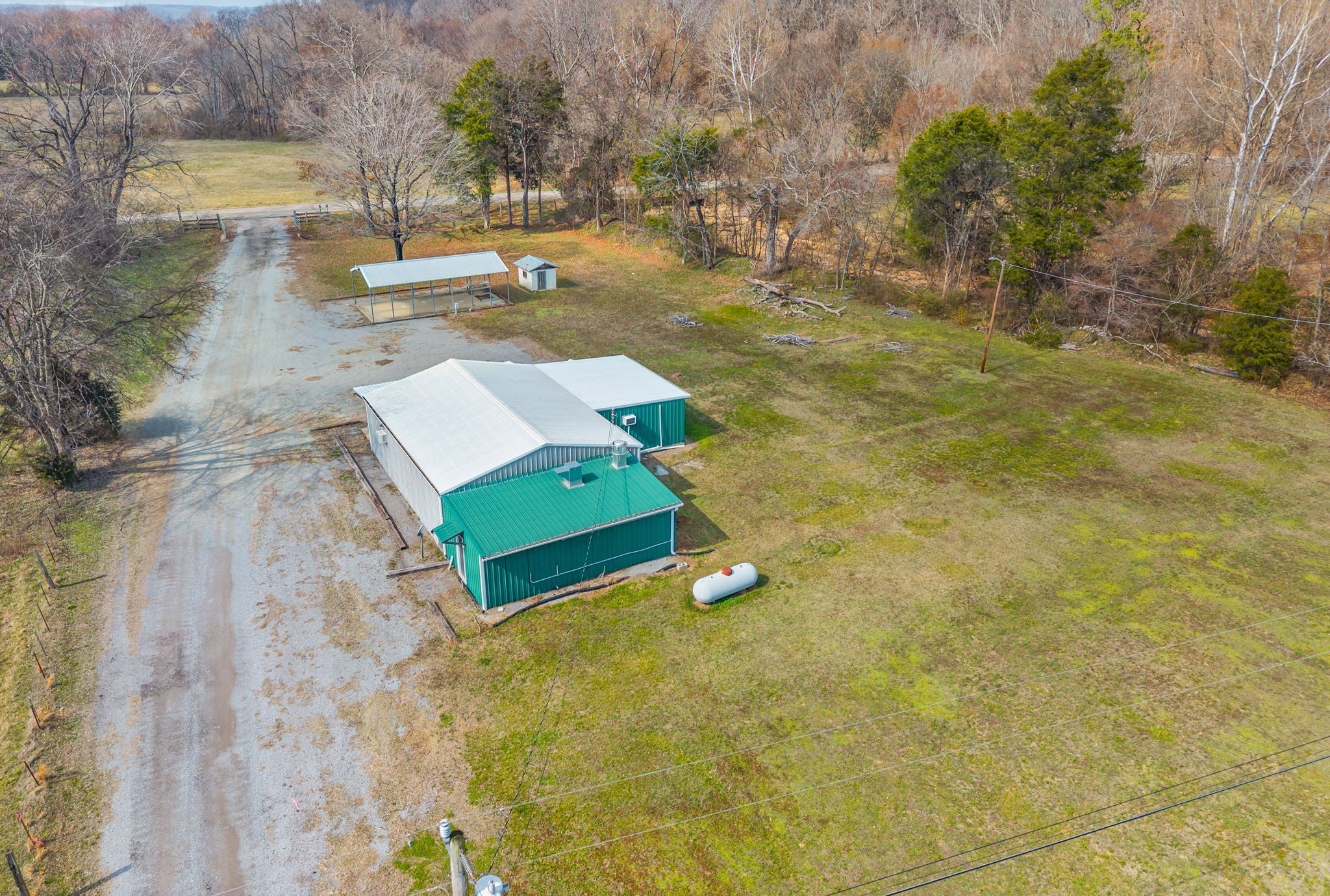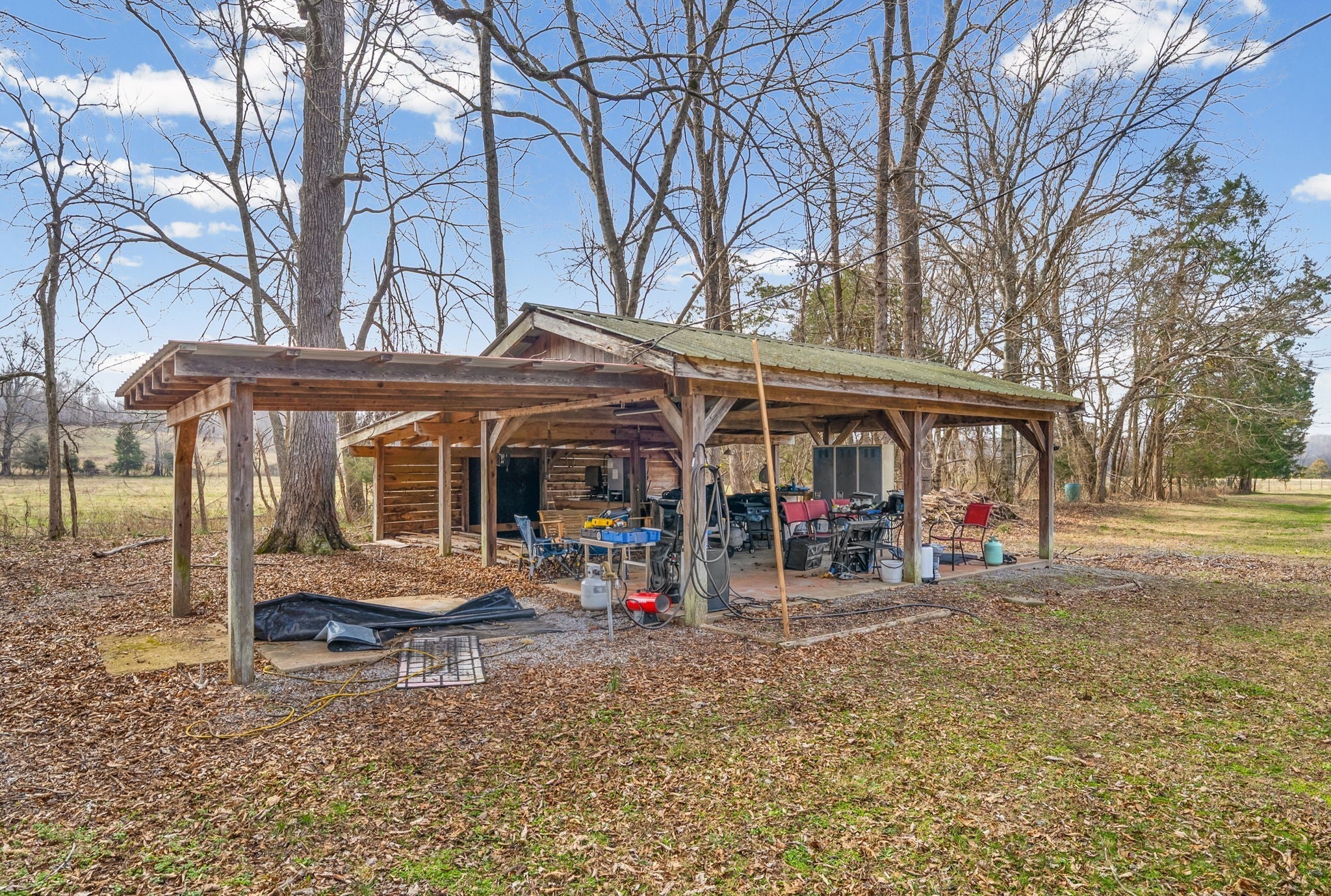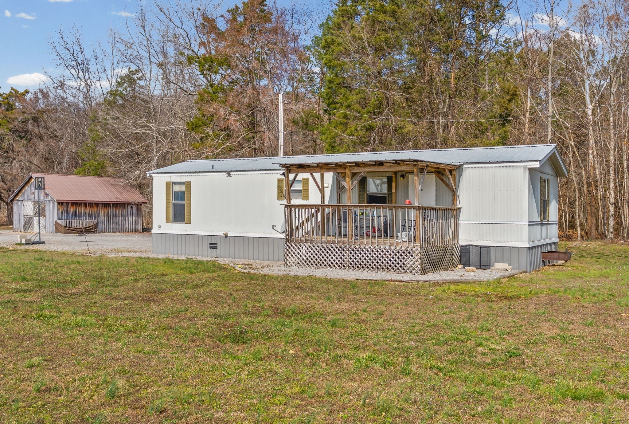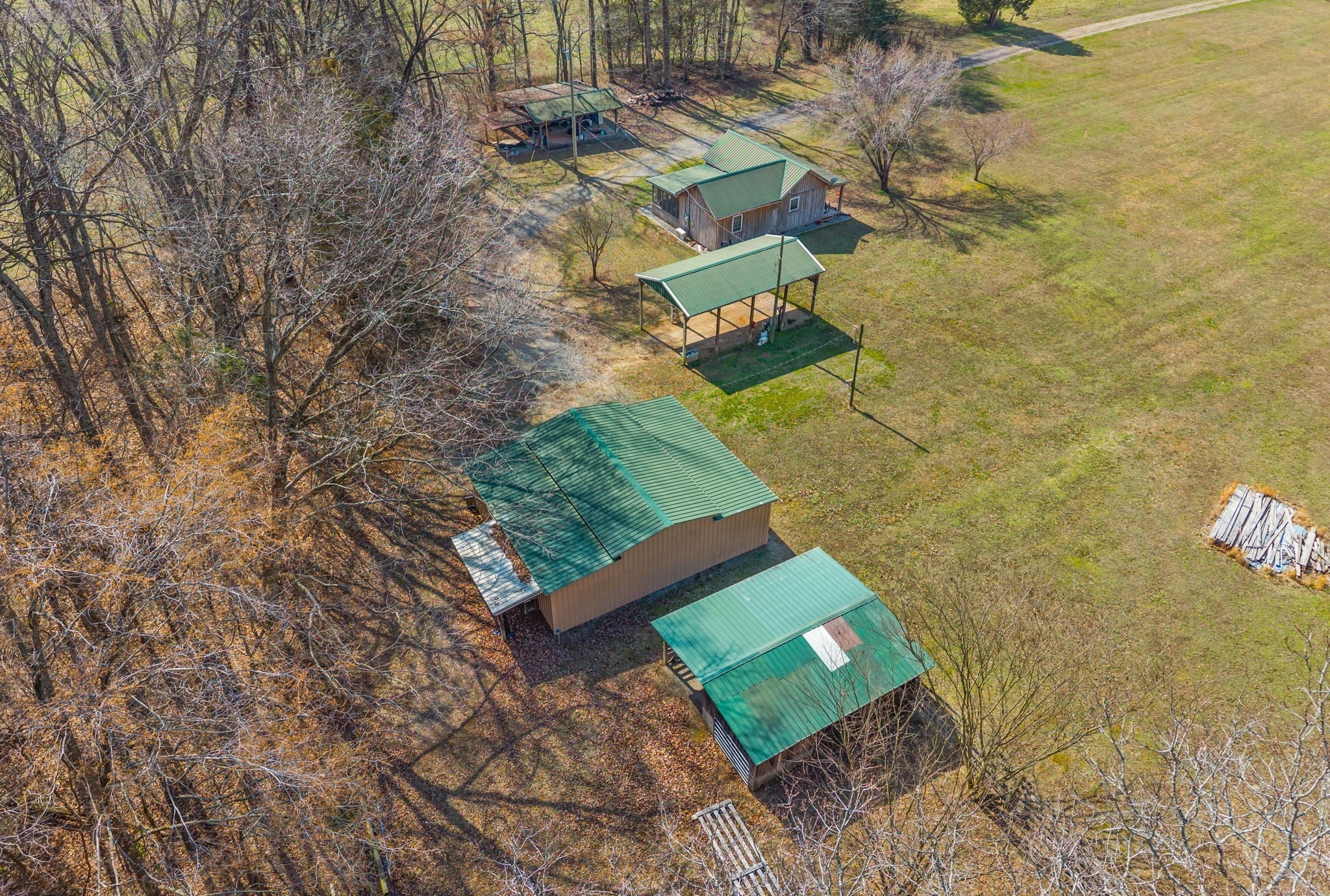 UNIQUE PROPERTY! On 7.48 acres with no restrictions, no zoning and minutes away from KY Lake-marina-launching and county airport, you find this neat mixture property. In the front of the property you find a 2004 commercial building with recent upgrades. 2024SF w/ 2 public bathrooms and located within an area for liquor and beer license; if desired business interest and approved (Previous Bar&Grill). Front section is Commercial and back section is Residential at the moment).Next, you find 2=>2BR-1BA mobile homes w/ storage building and tenant occupied. Then a clear and level 1.4 acre lot. Lastly, you find a neat rustic cabin with open great room-1BR-1BA, covered porch, back screened patio, a large detached covered pavilion-covered camper shelter w/50 AMP service-water & septic hookup, a large 3 bay storage garage/shed w/ back fish clean station and a 2 stall barn with back fenced area. This is an opportunity property for family, for commercial use, for campground with front store or what ever your heart desires!