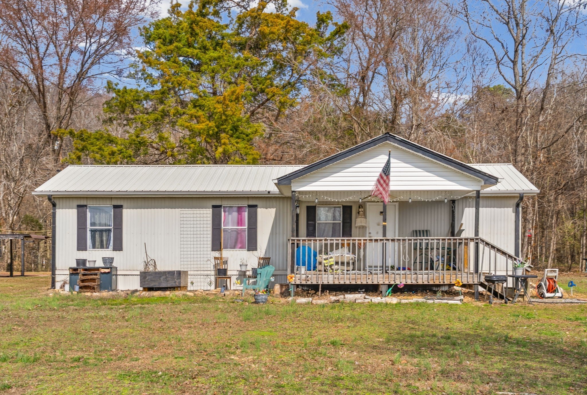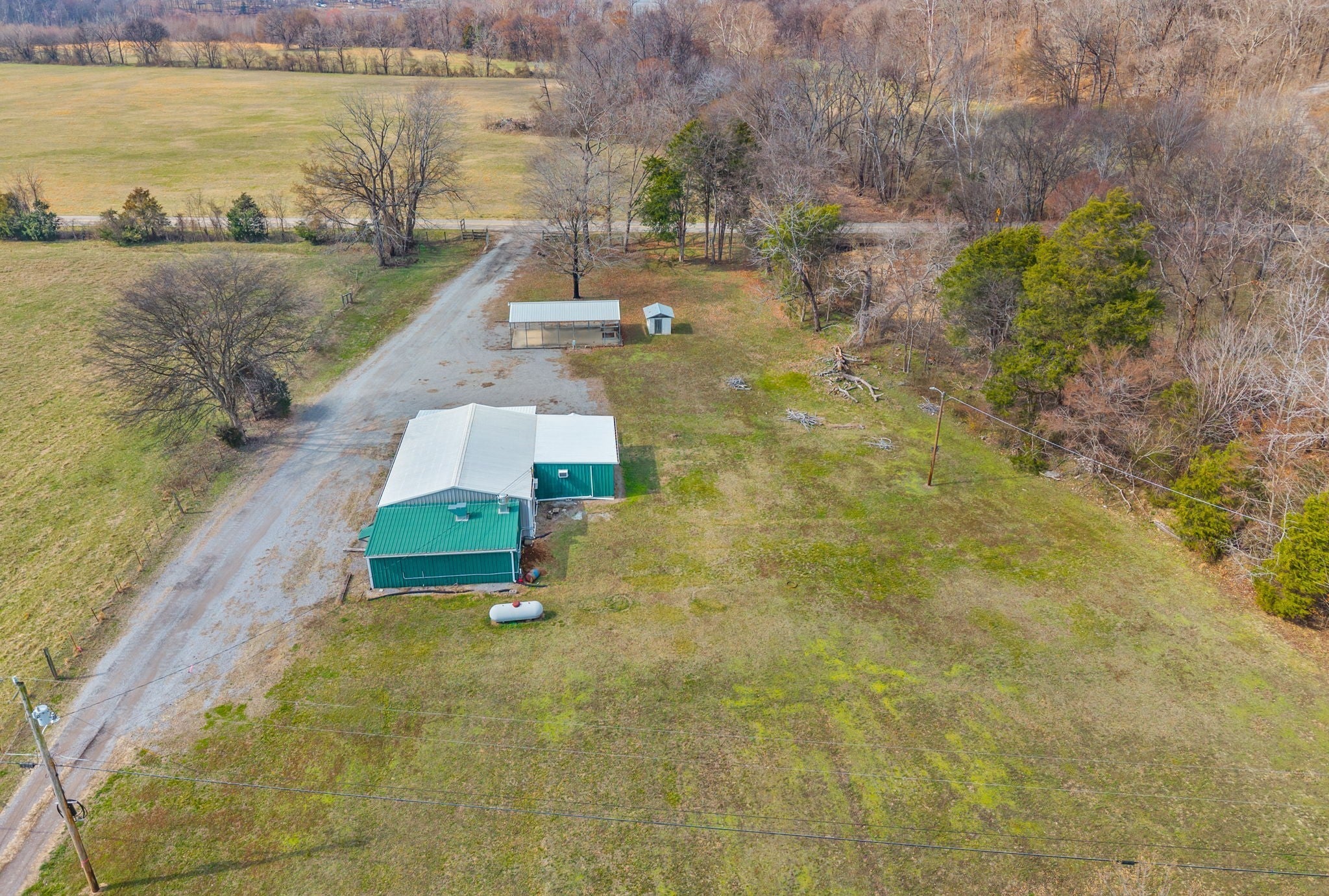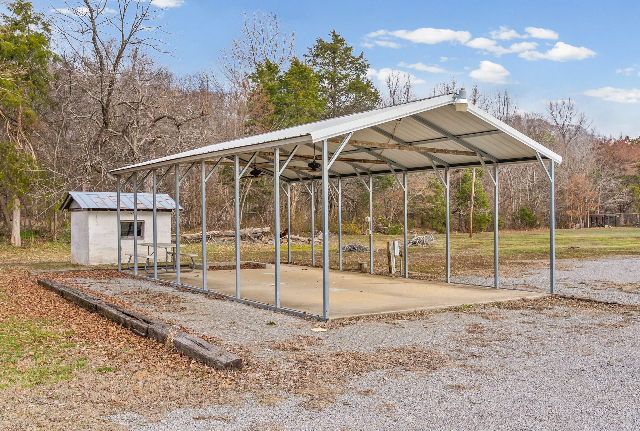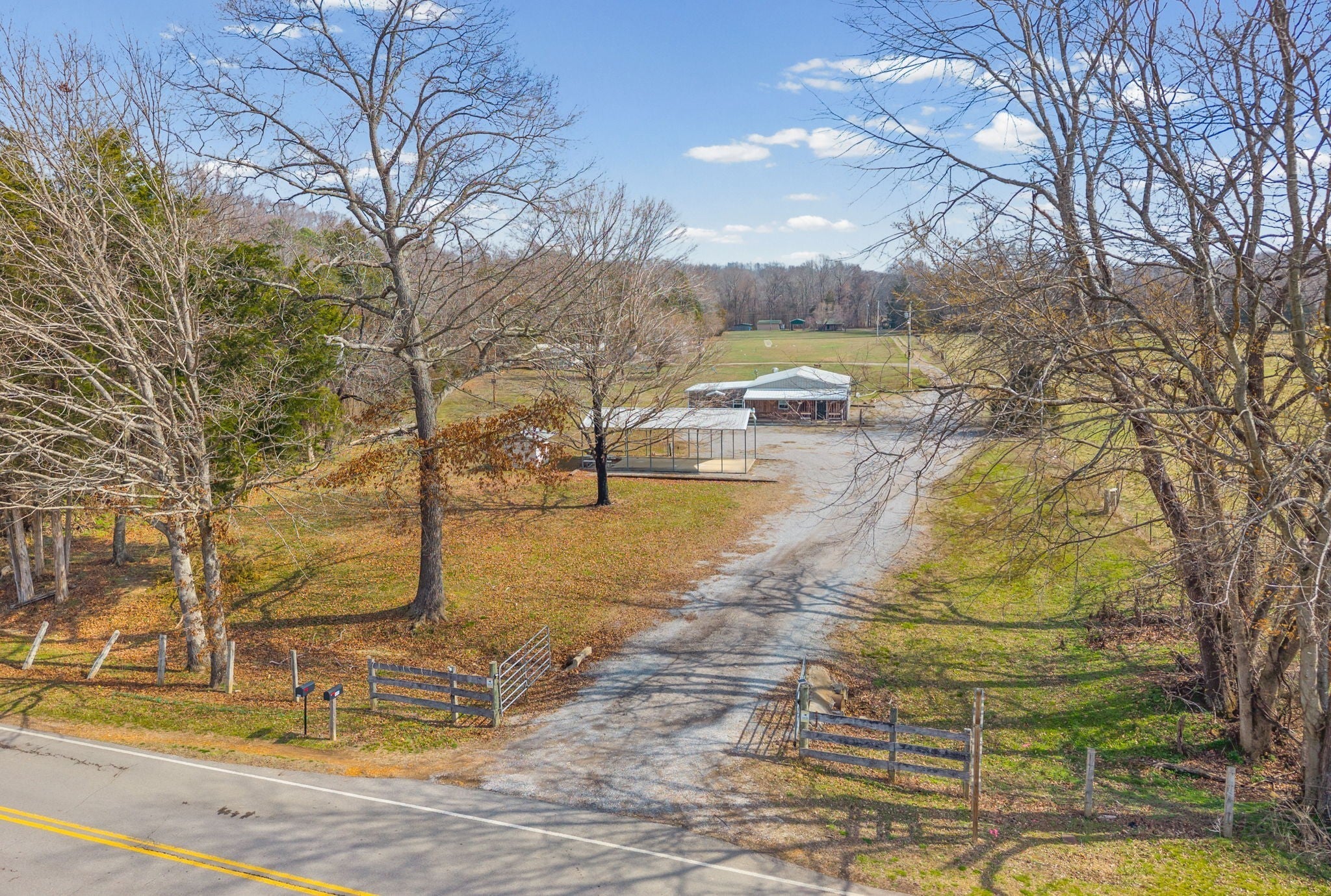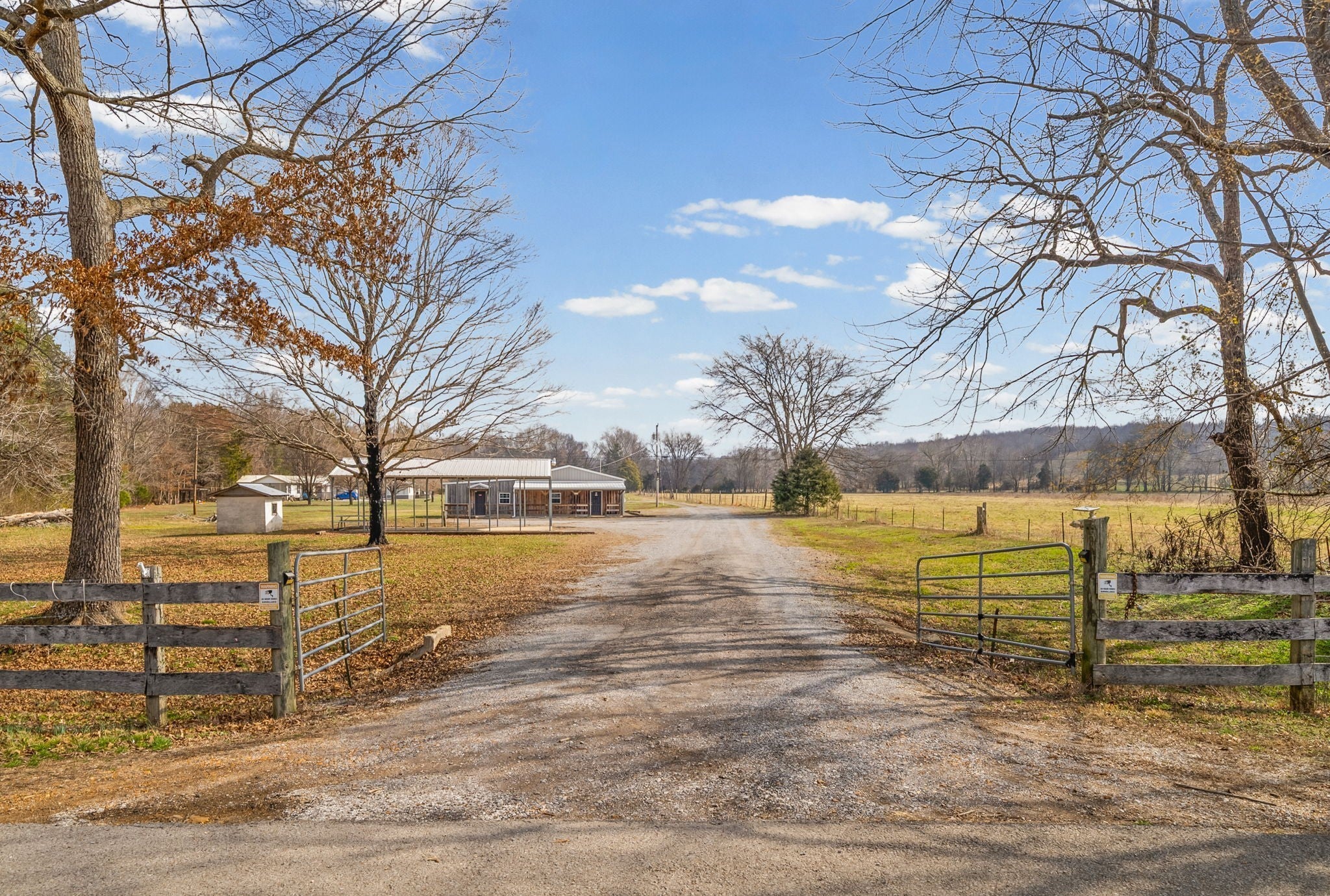 UNIQUE PROPERTY! On 7.48 acres with no restrictions, no zoning and minutes away from KY Lake-marina-launching and county airport, you find this neat mixture property. In the front of the property you find a 2004 commercial building with recent upgrades. 2024SF w/ 2 public bathrooms and located within an area for liquor and beer license; if desired business interest and approved (Previous Bar&Grill). Front section is Commercial and back section is Residential at the moment).Next, you find 2=>2BR-1BA mobile homes w/ storage building and tenant occupied. Then a clear and level 1.4 acre lot. Lastly, you find a neat rustic cabin with open great room-1BR-1BA, covered porch, back screened patio, a large detached covered pavilion-covered camper shelter w/50 AMP service-water & septic hookup, a large 3 bay storage garage/shed w/ back fish clean station and a 2 stall barn with back fenced area. This is an opportunity property for family, for commercial use, for campground with front store or what ever your heart desires!