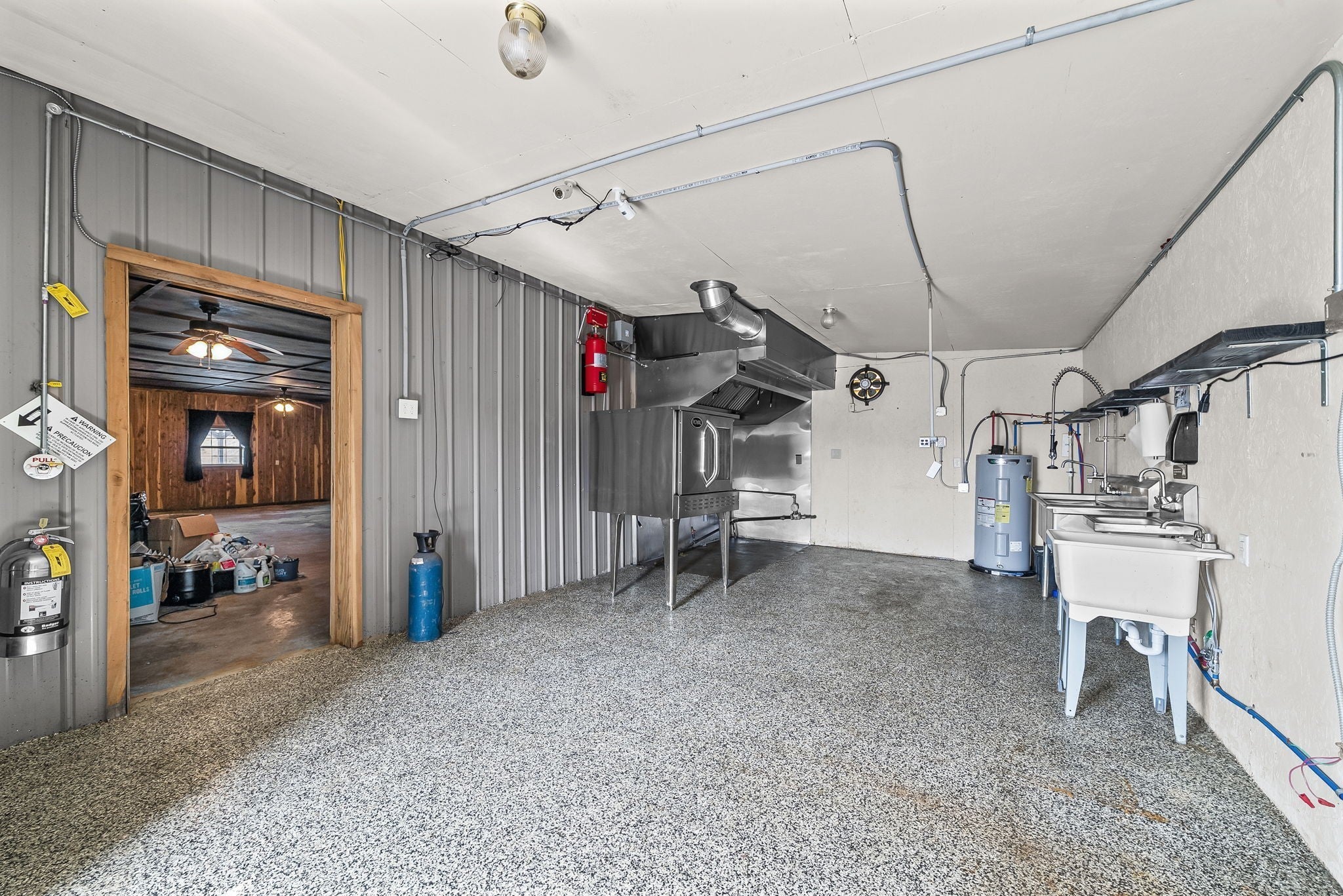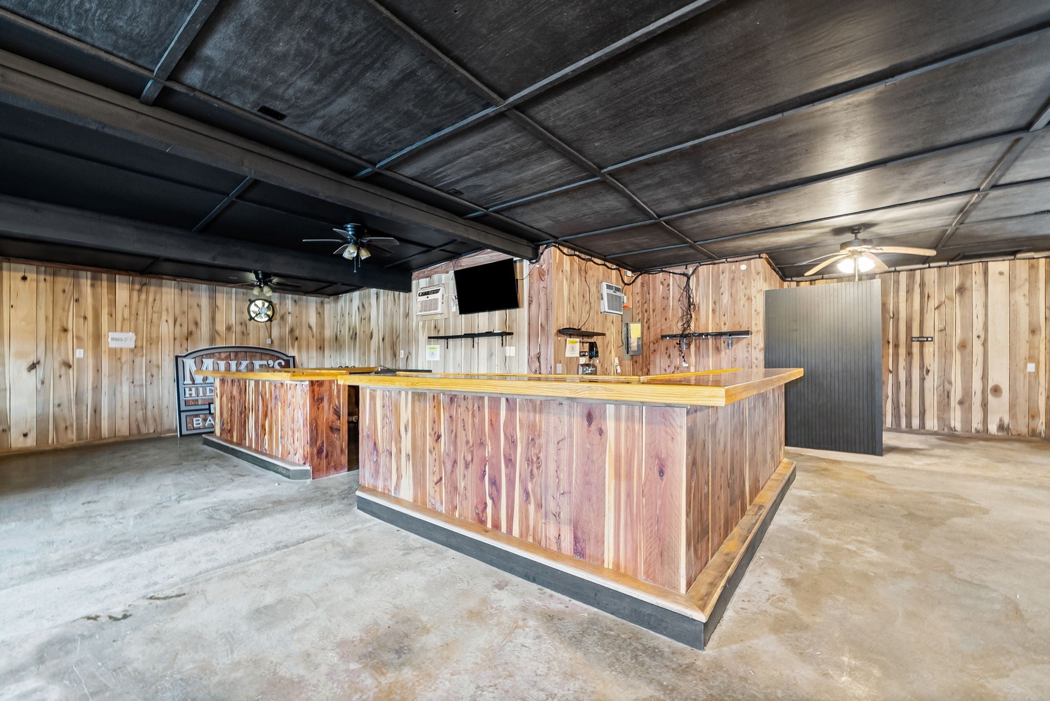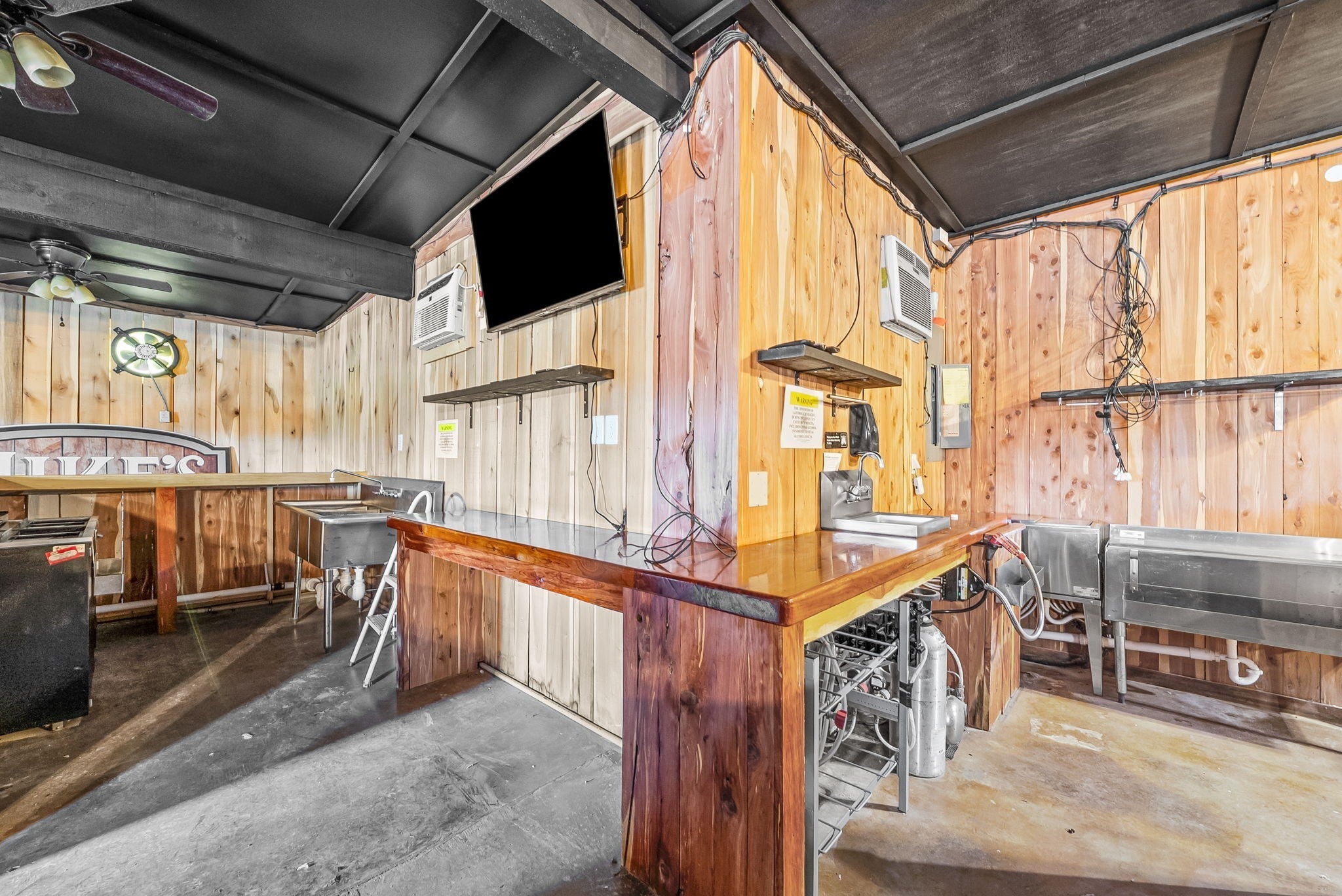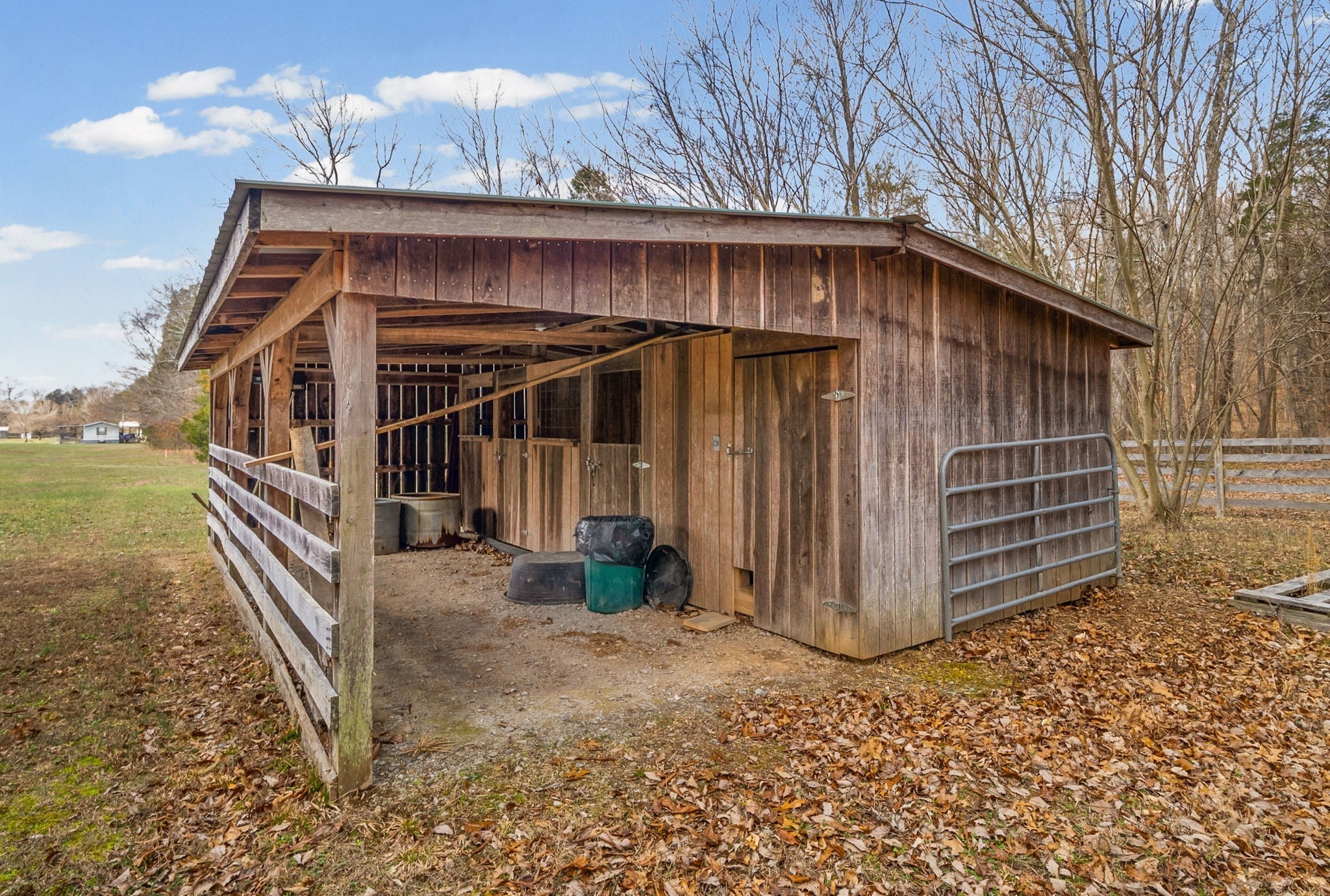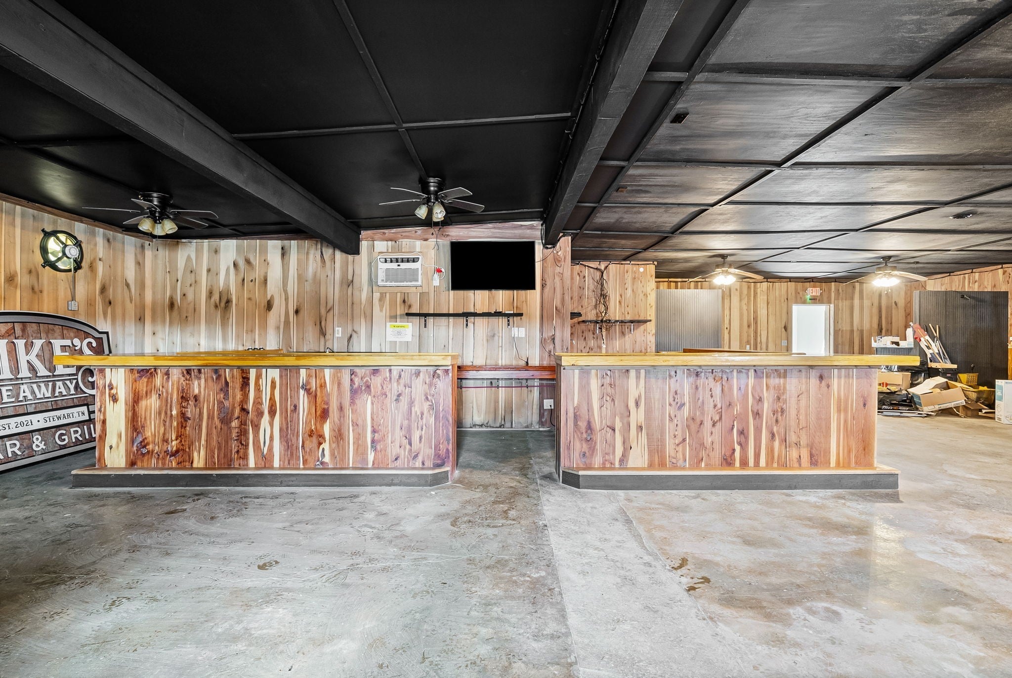 UNIQUE PROPERTY! On 7.48 acres with no restrictions, no zoning and minutes away from KY Lake-marina-launching and county airport, you find this neat mixture property. In the front of the property you find a 2004 commercial building with recent upgrades. 2024SF w/ 2 public bathrooms and located within an area for liquor and beer license; if desired business interest and approved (Previous Bar&Grill). Front section is Commercial and back section is Residential at the moment).Next, you find 2=>2BR-1BA mobile homes w/ storage building and tenant occupied. Then a clear and level 1.4 acre lot. Lastly, you find a neat rustic cabin with open great room-1BR-1BA, covered porch, back screened patio, a large detached covered pavilion-covered camper shelter w/50 AMP service-water & septic hookup, a large 3 bay storage garage/shed w/ back fish clean station and a 2 stall barn with back fenced area. This is an opportunity property for family, for commercial use, for campground with front store or what ever your heart desires!