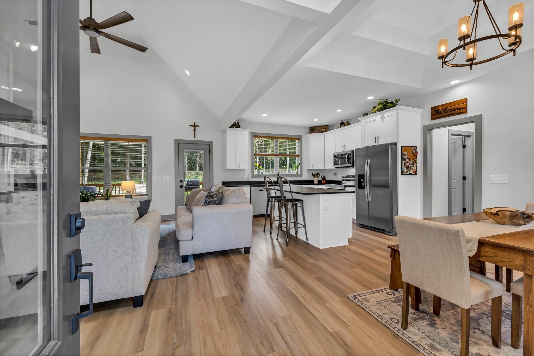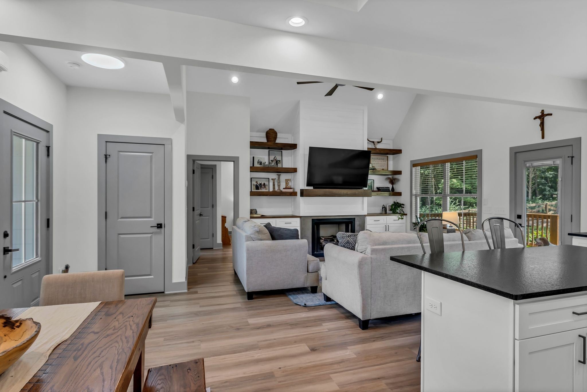 - Bookcases, Built-in Features, High Ceilings, Open Floorplan, Walk-In Closet(s), Kitchen Island