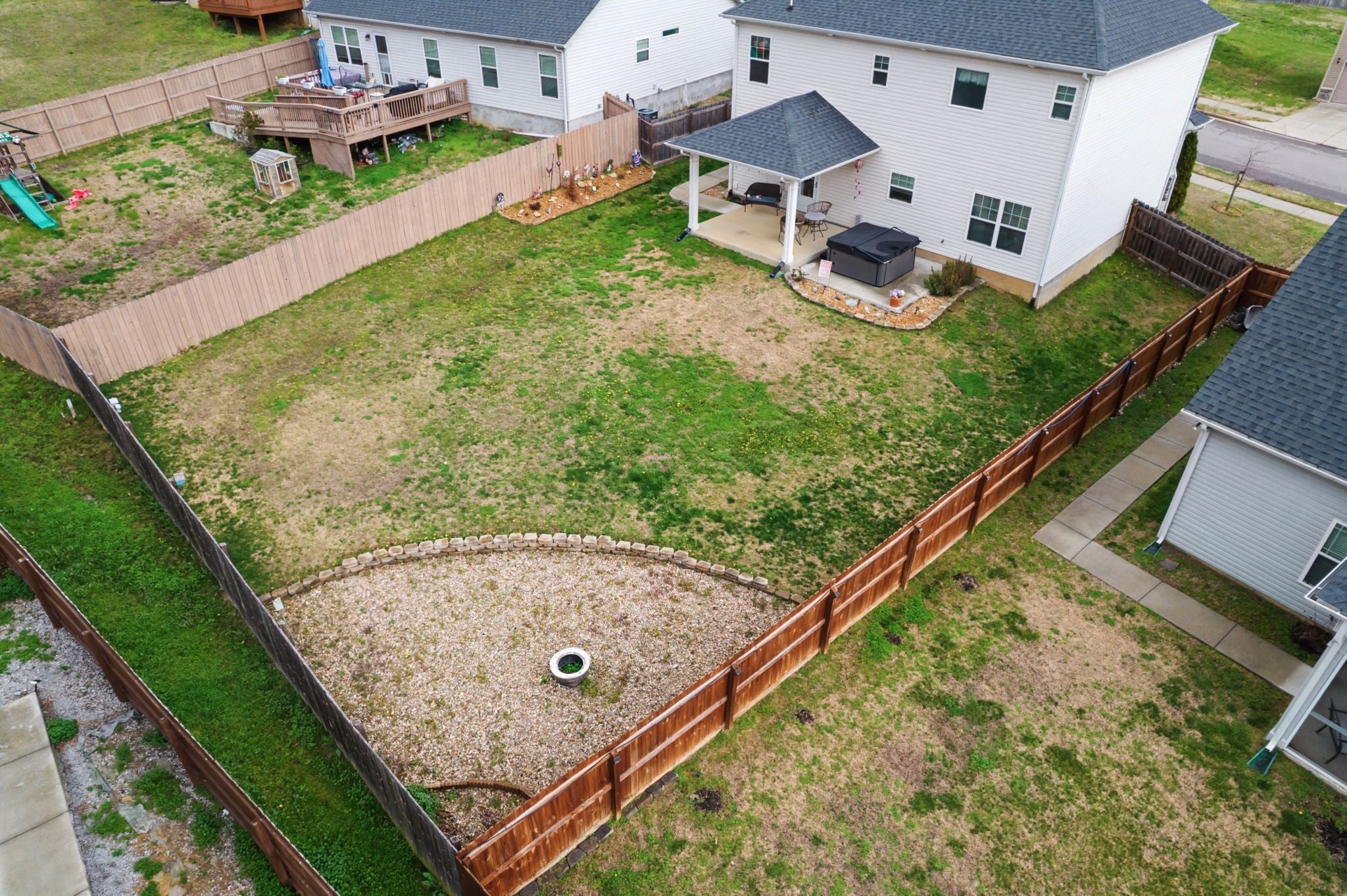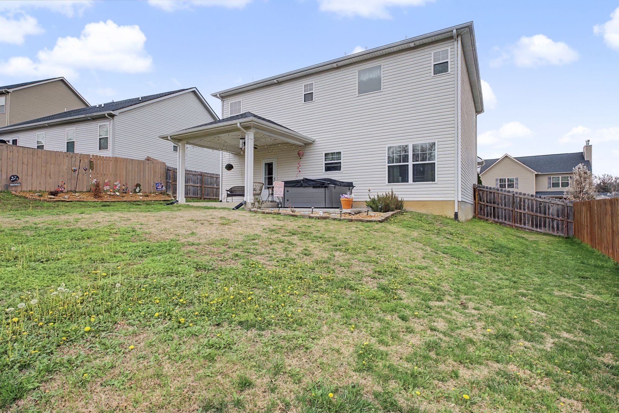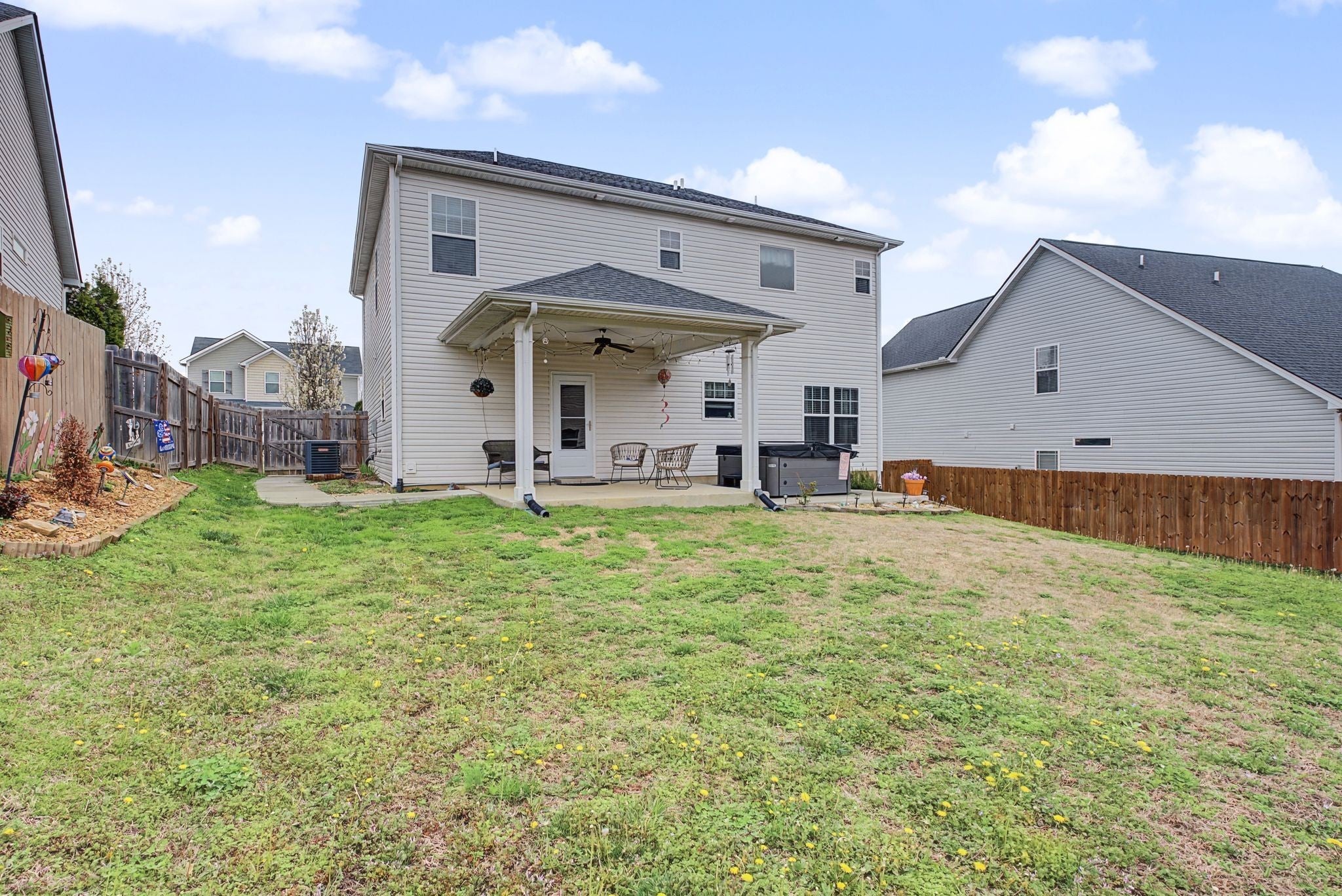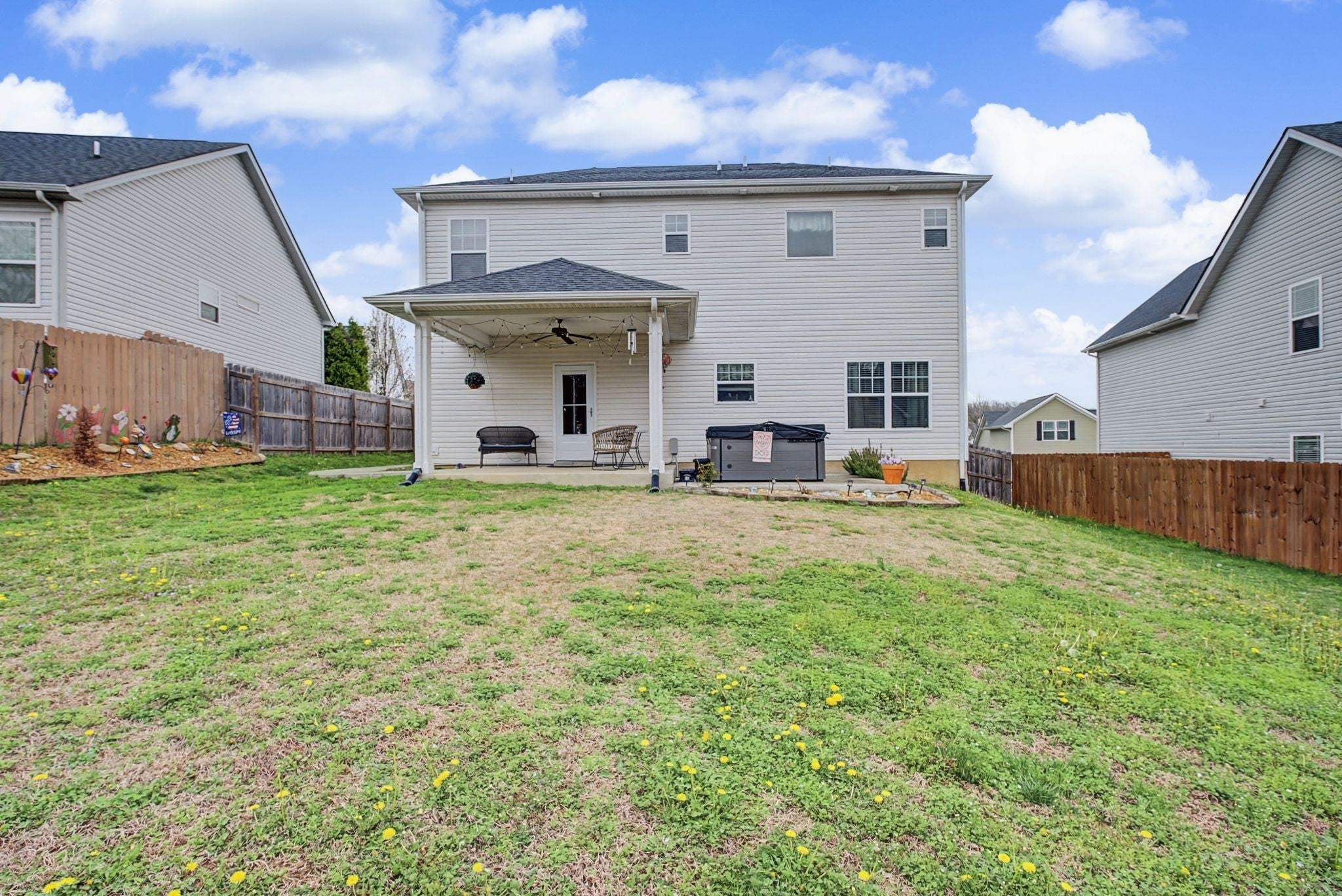 Beautiful, move-in ready home built in 2018 located in the desirable Heritage Hills neighborhood! Ideally situated between Nashville and Mount Juliet, with quick access to Percy Priest Lake, the Cumberland River, shopping, dining, and major commuter routes. This well-maintained home features a spacious kitchen with granite countertops and stainless steel appliances, flowing into the living and dining areas, perfect for everyday living and entertaining. The large owner’s suite offers tray ceilings and a private en-suite bath, creating a relaxing retreat. Step outside to enjoy the covered back porch with an extended concrete patio, perfect for relaxing or entertaining, with the hot tub remaining with the home. The backyard has been professionally graded for full functional use and includes a sidewalk connecting the backyard to the front of the home for added convenience. The large fenced yard offers plenty of space for pets, play, or gatherings. Additional highlights include two HVAC units for year-round comfort and a bonus room with a closet and door that can easily serve as a 4th bedroom, office, or flex space. Great location, thoughtful upgrades, and plenty of outdoor space—this home is a must see!