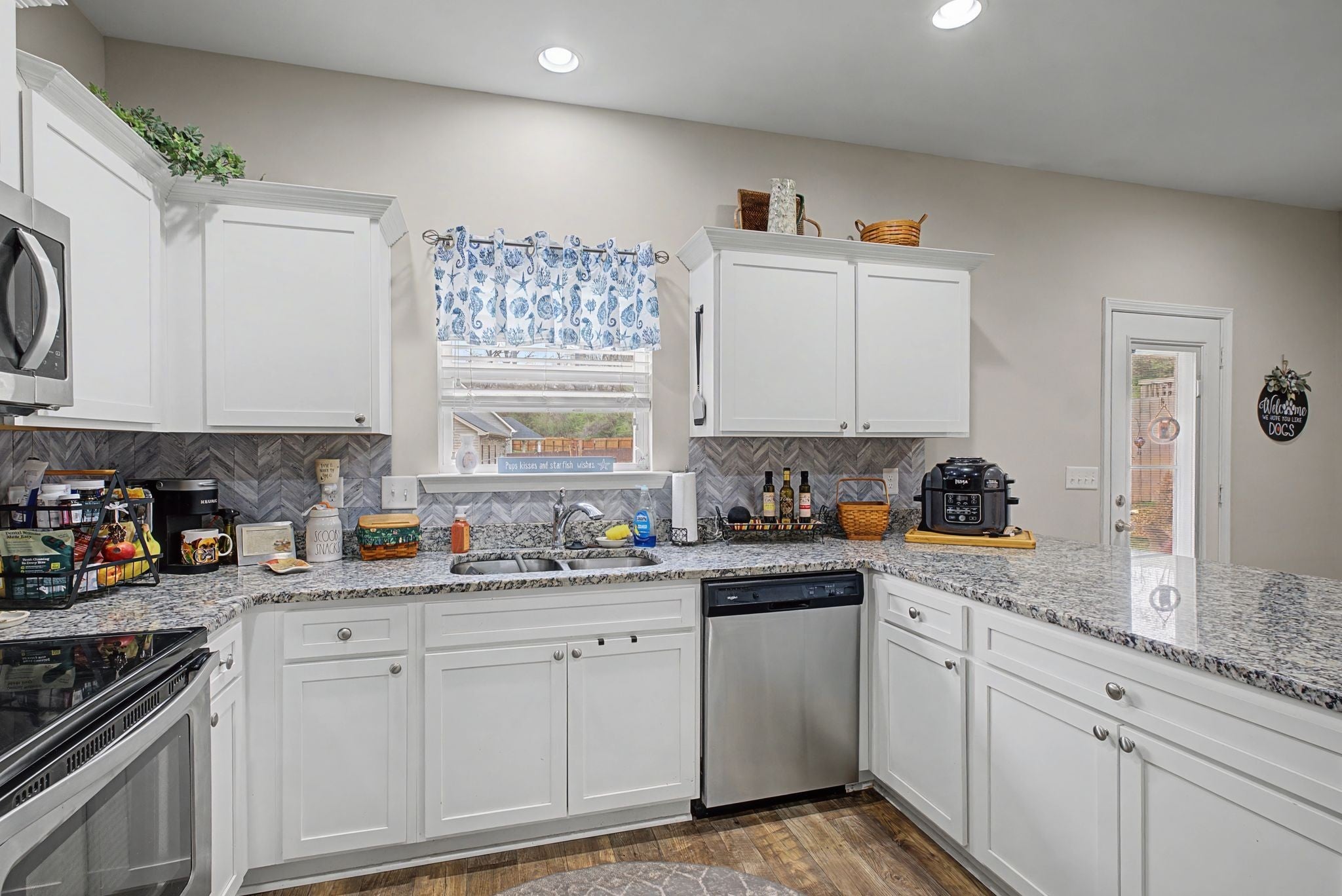 - Electric Oven, Dishwasher, Microwave, Refrigerator, Stainless Steel Appliance(s)
