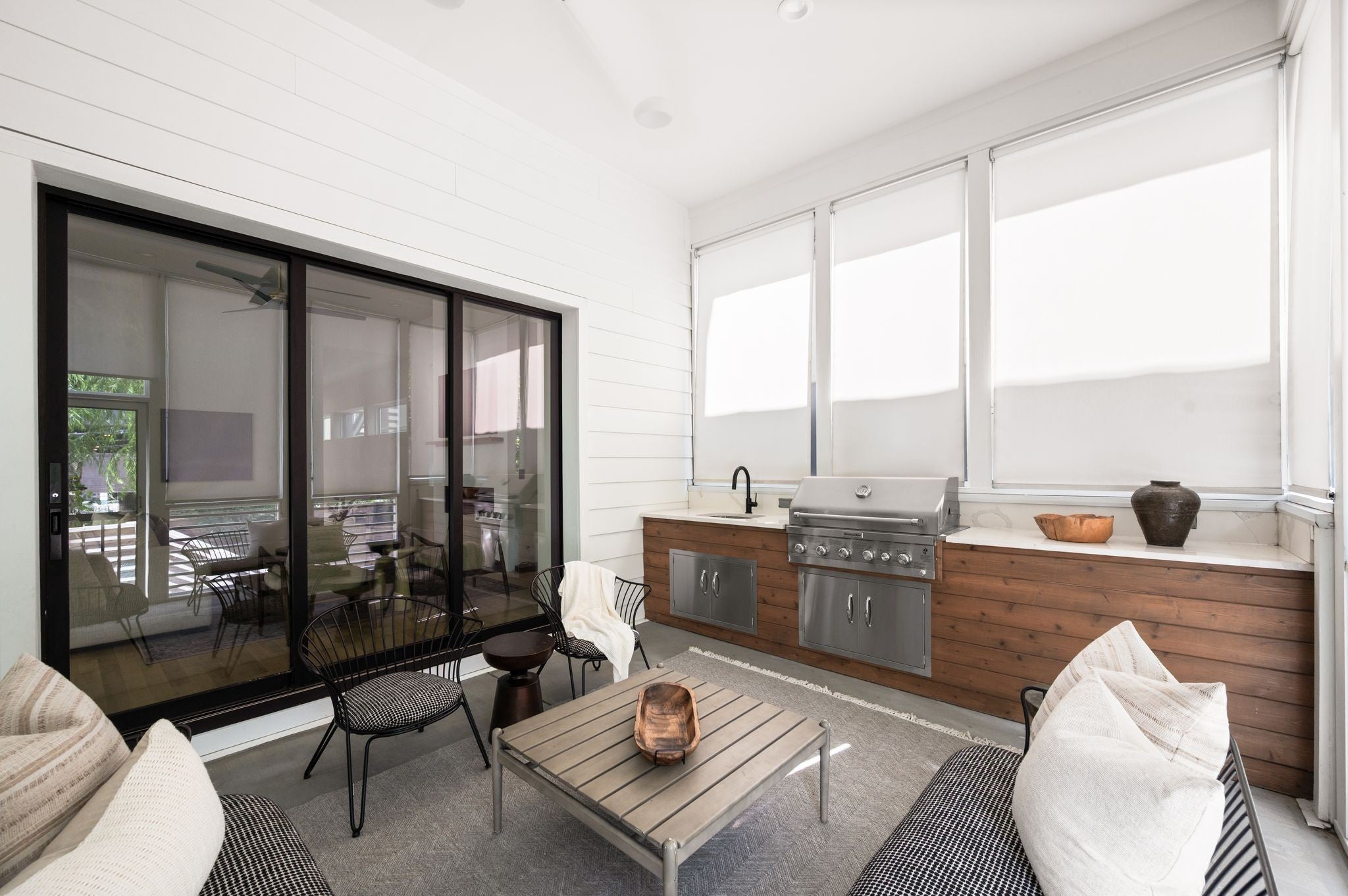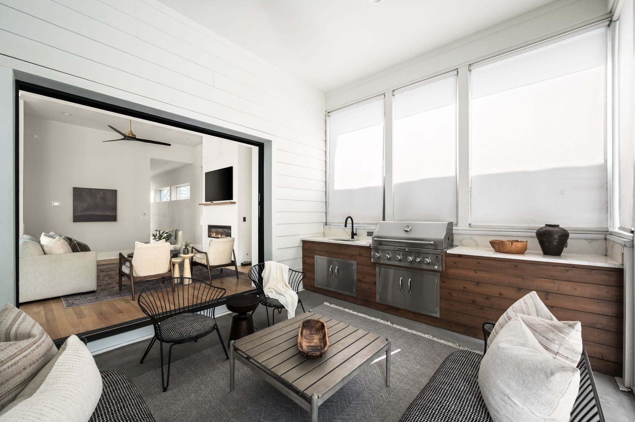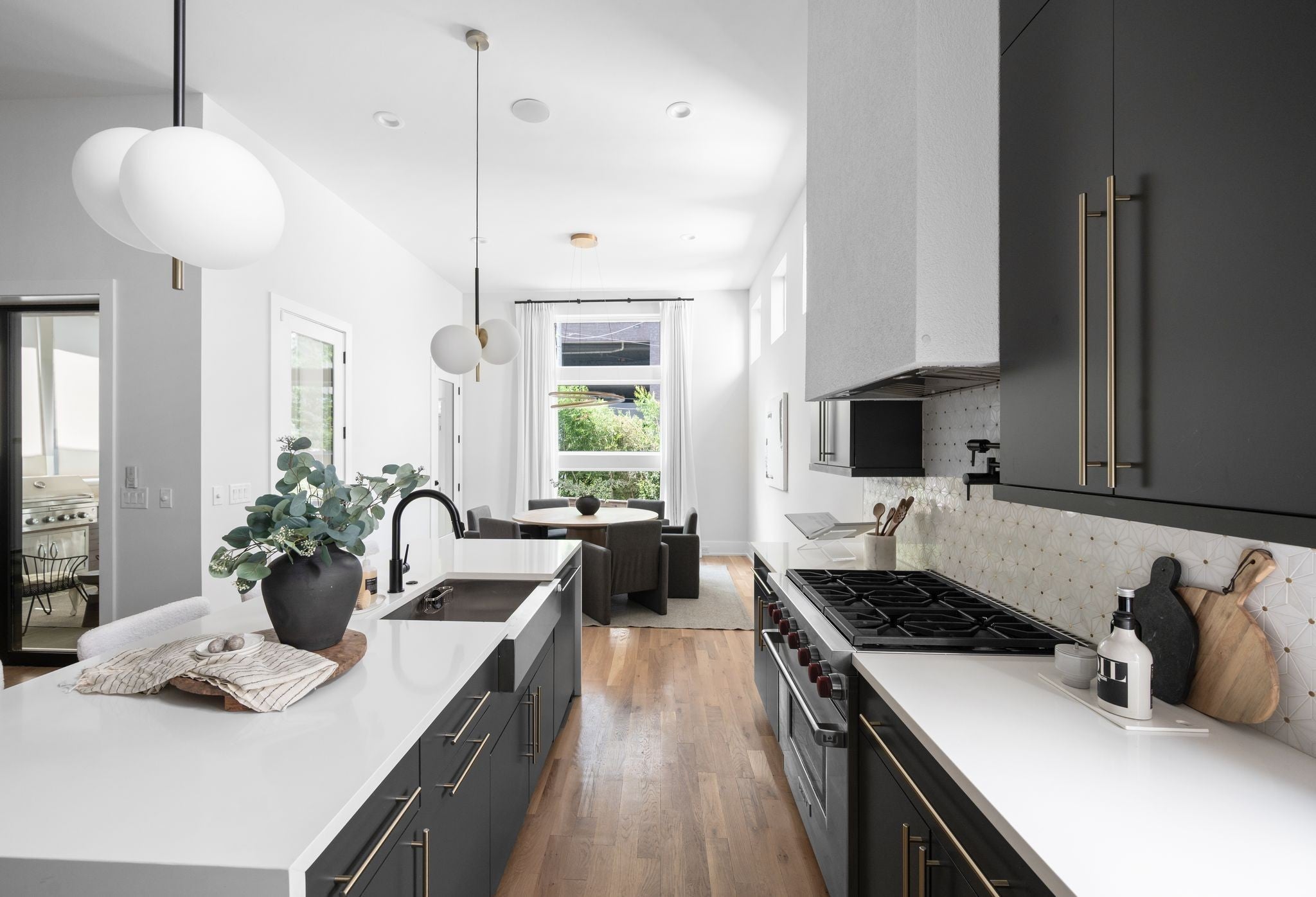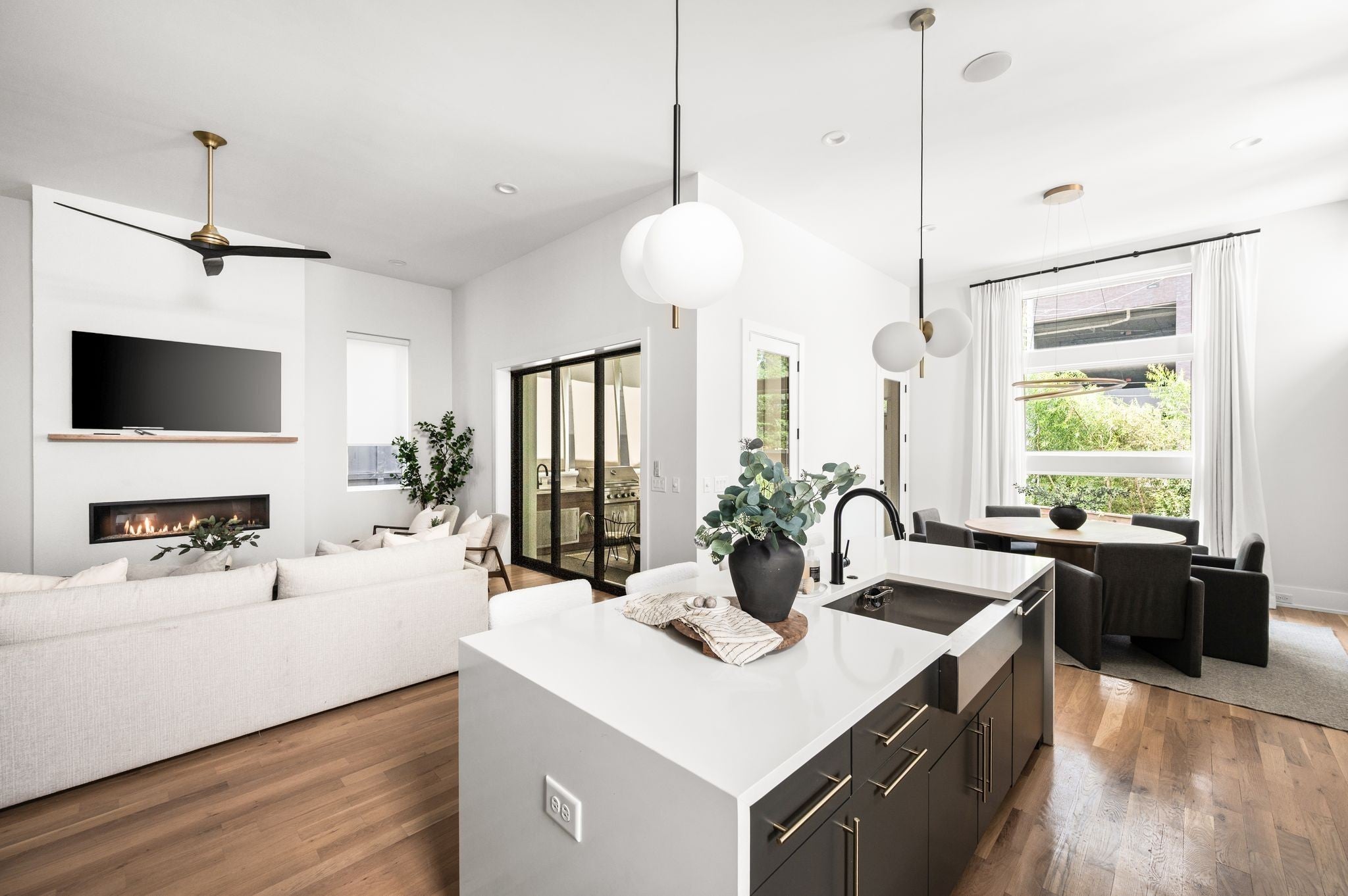 Tucked away on a quiet, sought-after street in the heart of Green Hills, this stunning home in The Modern Collection offers the perfect blend of modern design and everyday comfort. Just moments from your favorite Green Hills shops, dining, and entertainment, this residence delivers the ideal combination of location and lifestyle. Step inside to find soaring ceilings and an abundance of natural light that fills every room. The open-concept kitchen is a chef’s dream, featuring premium Wolf appliances, an expansive island, generous counter space, and a walk-in pantry. The living room, centered around a striking Archestone fireplace, seamlessly connects to the outdoor living area through oversized sliding glass doors. Enjoy year-round entertaining on the screened-in porch, complete with a full outdoor kitchen—perfect for relaxing or hosting guests in style. Two primary suites, one on each level, offers great flexibility! Upstairs has generously sized bedrooms, all with ensuites and a great laundry room to keep life organized. Other favorites include the attached 2 car garage, walk in closets, fresh new paint inside and out, and so much more! A truly rare find in one of Nashville’s most coveted neighborhoods.