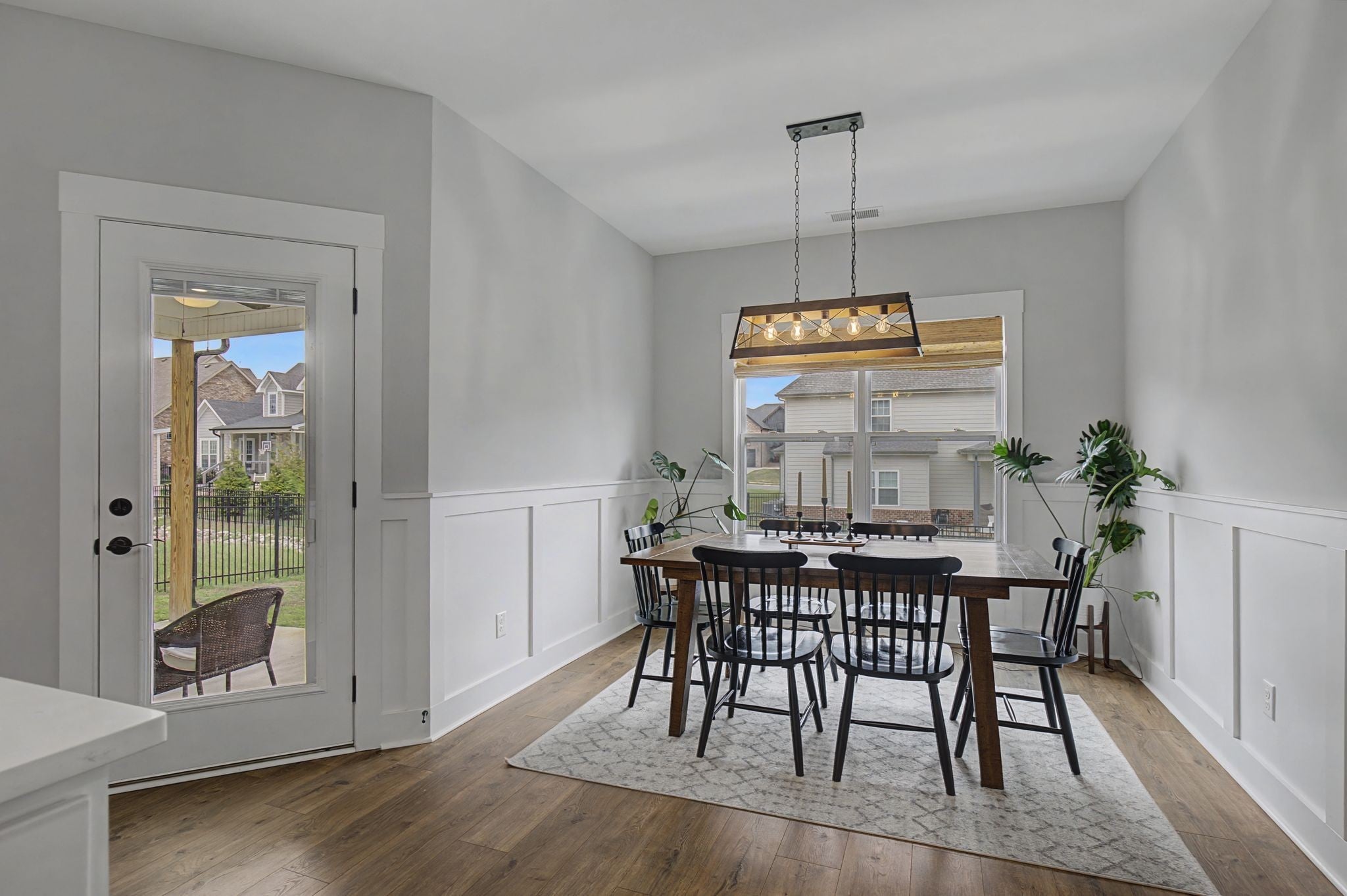 All-brick home with mostly one-level living, bonus/media room with wet bar, and fenced backyard in The Oaks near Exit 8! This beautifully maintained 3-bedroom, 3.5-bath home offers a spacious layout with thoughtful upgrades and features designed for both comfort and entertaining. The main level features an inviting open living area with coffered ceilings, abundant natural light, custom roller shades, and a beautiful fireplace feature wall that creates a warm focal point for the space. The kitchen is designed for both everyday living and entertaining, complete with a large walk-in pantry and easy access to the dining room showcasing elegant decorative wall moldings. The primary suite on the main level provides a relaxing retreat with coffered ceilings, a spa-like bathroom with separate tub and shower, and a spacious walk-in closet with custom built-ins. Two additional bedrooms are also conveniently located on the main floor. Upstairs you’ll find a large rec/media room featuring a wet bar, perfect for entertaining, movie nights, or creating a private guest or in-law space. This level also includes a full bathroom and a versatile flex room that can be used as an office, hobby space, or additional storage. Additional highlights include laminate flooring throughout the main living areas, tile in wet spaces, carpet in the secondary bedrooms and media room, a laundry room with utility sink, and a storage room in the garage. Enjoy outdoor living with both a covered rocking chair front porch and covered back patio overlooking the fenced backyard with gate, ideal for relaxing, entertaining, or pets. Located in The Oaks community near Exit 8, residents enjoy access to a neighborhood pool, fitness center, playground, and trash pickup included in the HOA, all with convenient access to shopping, dining, and schools. Don’t miss this opportunity to own a beautiful home in one of Clarksville’s most sought-after neighborhoods.