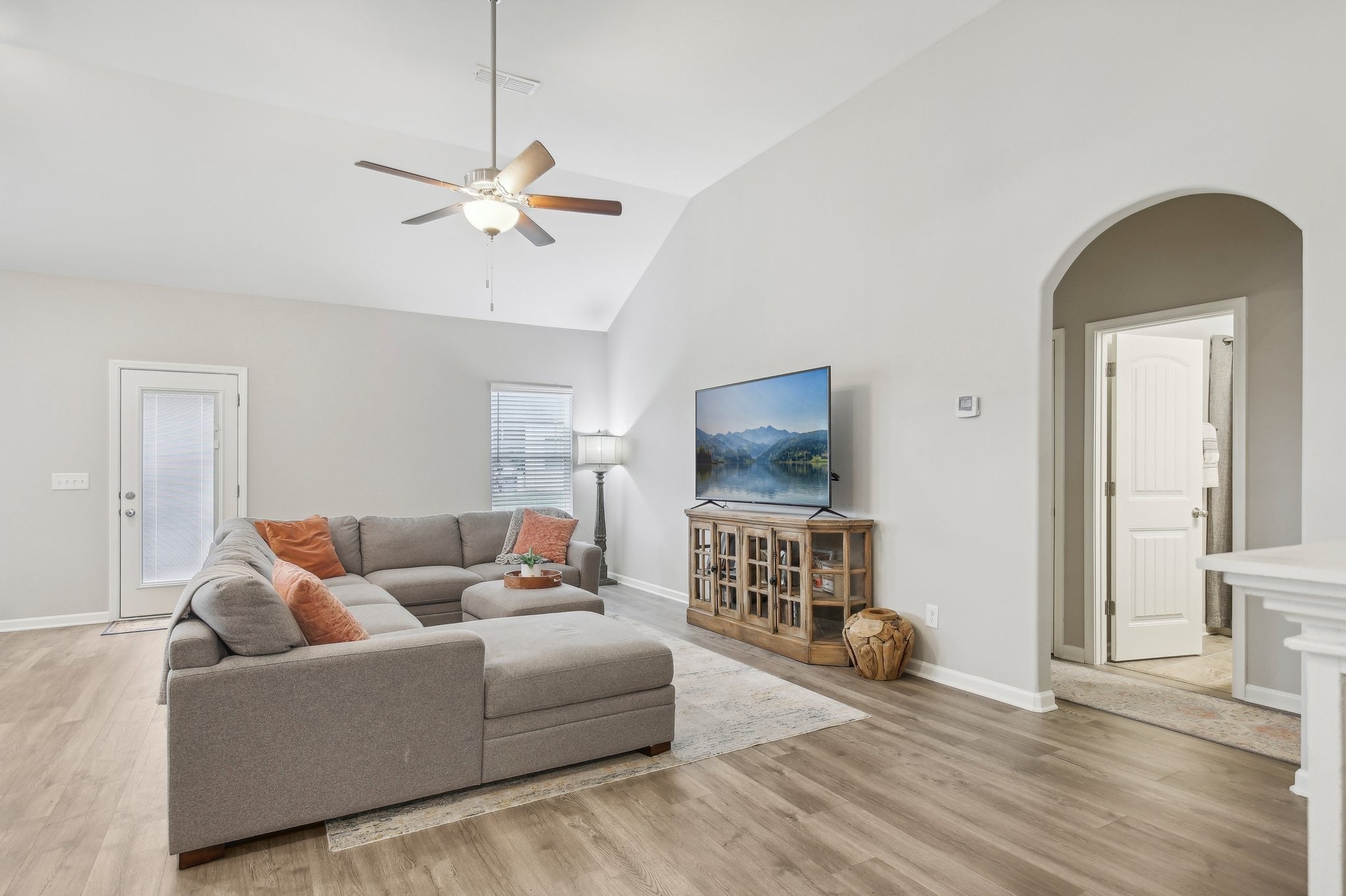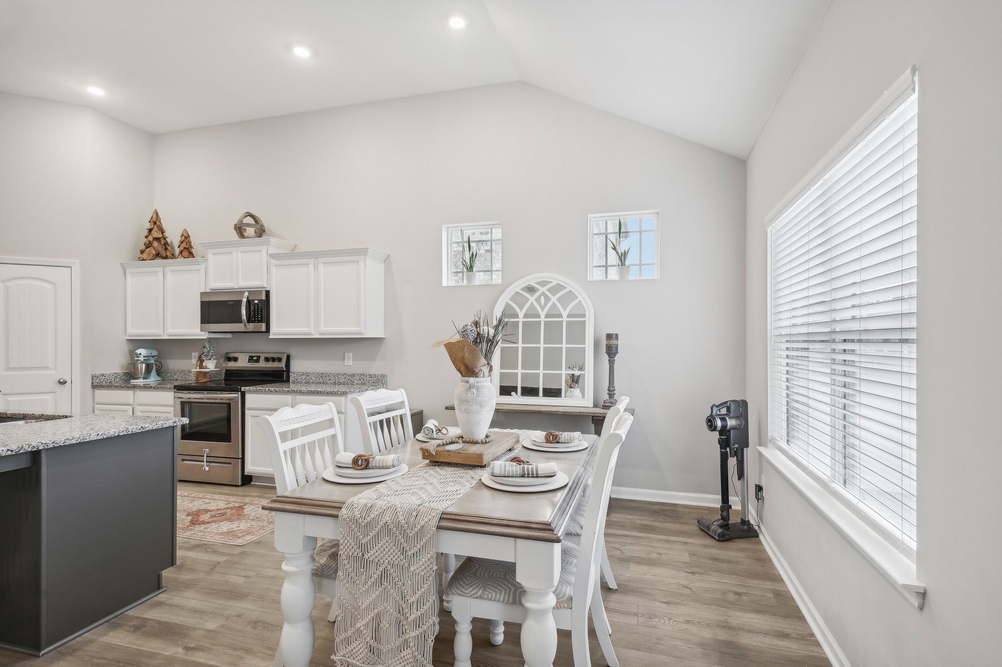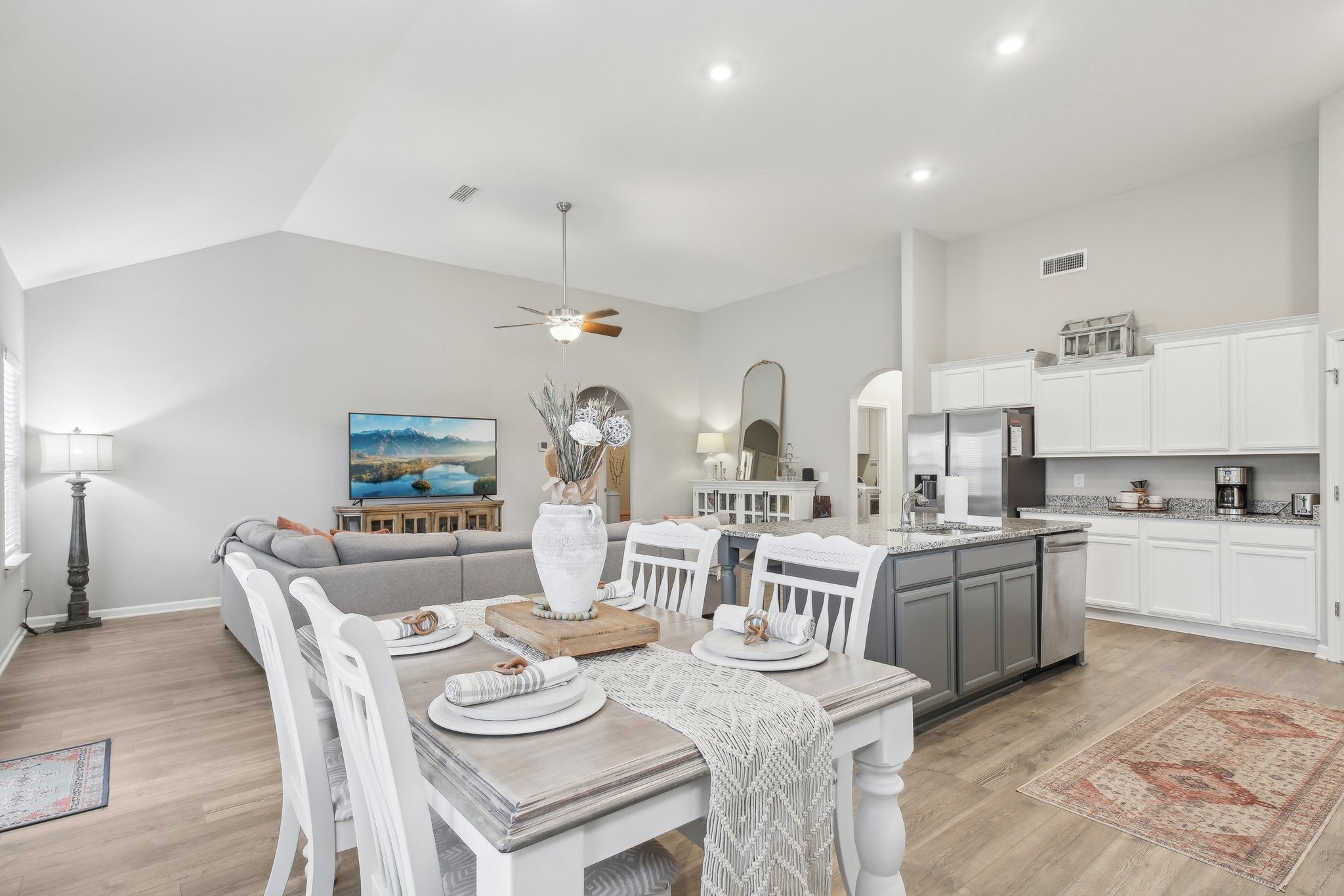 Great opportunity for buyers—seller credits available to assist with closing costs or a rate buy-down, plus receive a lender credit equal to 1% of the loan amount when financing through the preferred lender. Move-in ready home featuring an open-concept floor plan, vaulted ceilings, and abundant natural light throughout. The spacious living area flows seamlessly into the dining space and modern kitchen with granite countertops, a large island, and white cabinetry, creating the perfect setup for everyday living and entertaining. Designed with a split-bedroom floor plan for added privacy, the primary suite is tucked away from the secondary bedrooms and features a walk-in closet and en-suite bath with a soaking tub and separate shower—a perfect space to relax at the end of the day. Two additional bedrooms and a full bathroom are located on the opposite side of the home, offering flexibility for family, guests, or a home office. Enjoy outdoor living with a welcoming front porch and back patio overlooking a flat yard, ideal for entertaining, pets, or play. Don’t miss this opportunity to own a bright, functional home with great indoor and outdoor living spaces—schedule your showing today!
