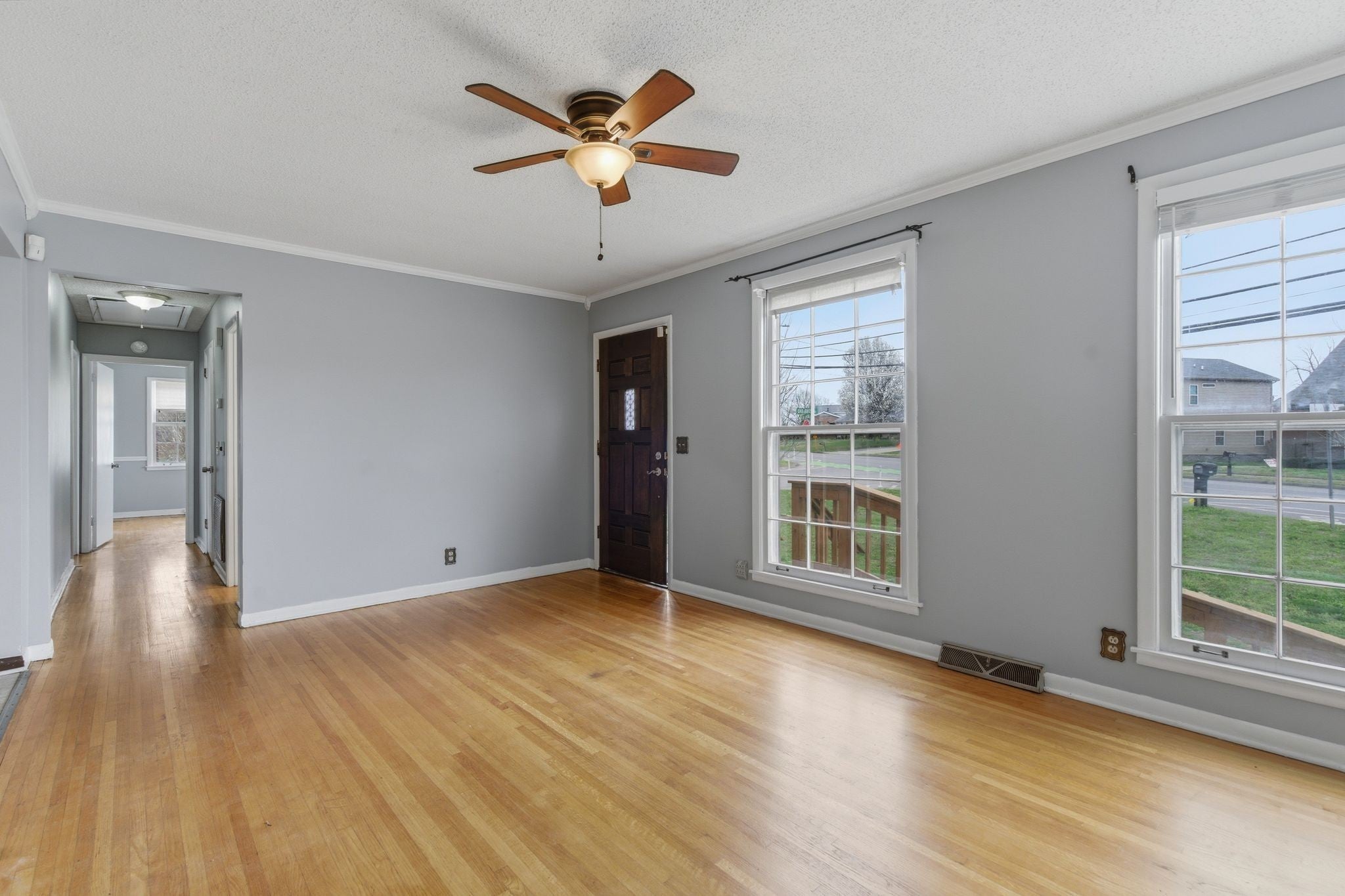 ACCEPTING BACK UP OFFERS! A neighborhood gem! Step inside & envision making this house your NEXT home! Original open-concept w/ original hardwood flooring. Plenty of windows for natural light. Owner's bedroom is separate from the secondary bedrooms. Fully-finished basement with endless possibilities. This property highlights an elevated deck off the dining area, wrap around driveway, and sits on a corner lot. This property is TWO much! (2) fireplaces, 2-full bathrooms, and (2) newly installed garage doors. Stop by & take a look in person. External Storage does not convey.