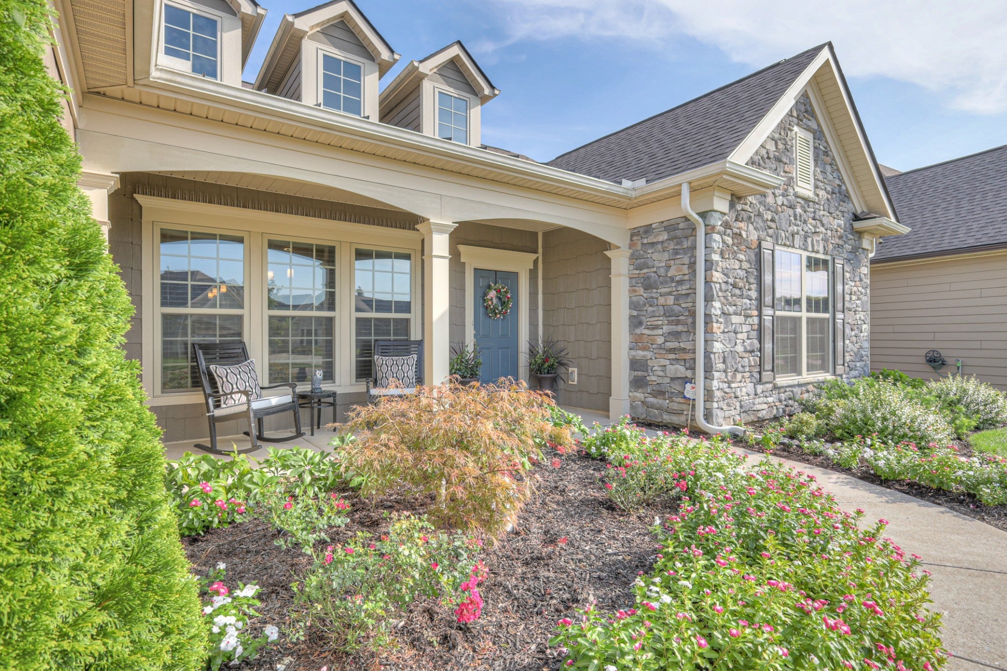 - Frame, Stone, Wood Siding