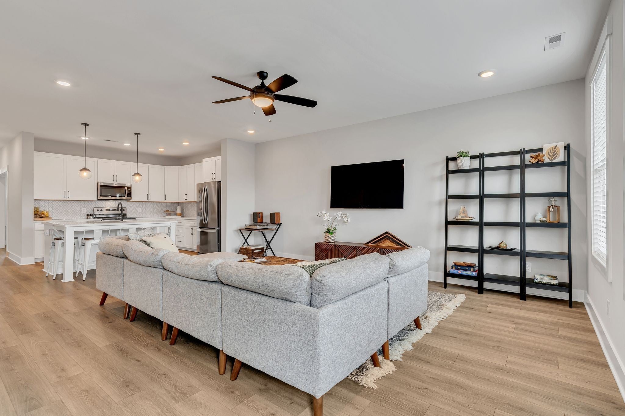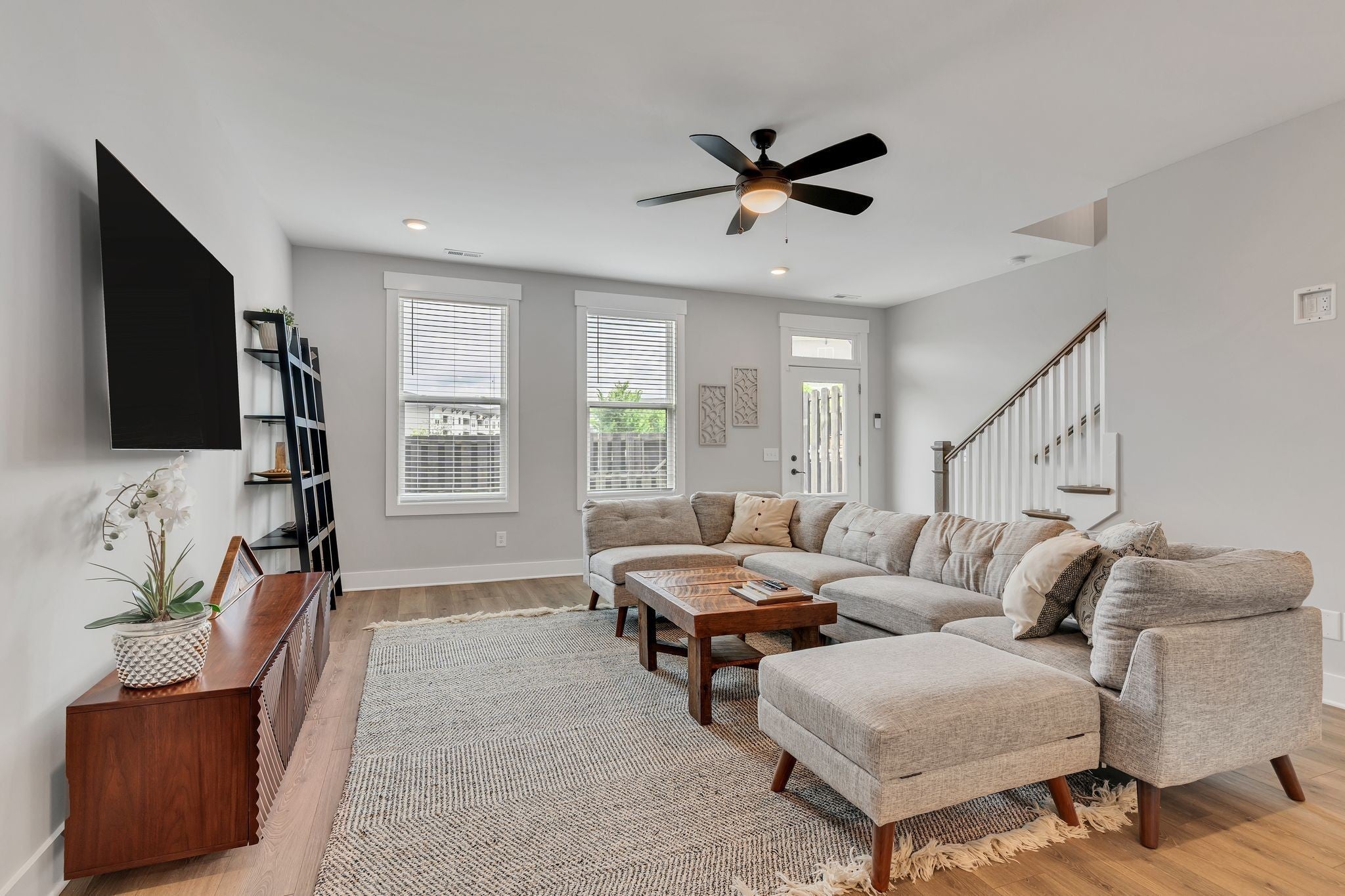 Urban living just got a serious upgrade! Searching for a stylish home with the flexibility of a third bedroom without sacrificing location or design? This one will steal your heart all while offering you the perfect blend of urban convenience, flexible living space, modern style & low-maintenance living. The private flex room works beautifully as a home office, workout studio, creative space, or guest retreat - exactly what you want when a traditional third bedroom is on the wish list. Location? You bet! Just minutes from Germantown favorites, East Nashville’s incredible restaurant scene, Nissan Stadium, Bridgestone, Broadway nightlife, Vanderbilt & the rapidly growing Oracle campus! Stylish. Smart. In the middle of everything! Designed for real life & good times, the open floor plan flows effortlessly, with durable LVP flooring & loads of natural light. The huge kitchen is a total standout! Bright cabinetry, gorgeous quartz countertops & a striking chevron marble backsplash for the wow factor! XL island is made for everything from morning coffee to hosting friends before heading out for a night downtown. Impressively large living room is perfect for game days, movie nights, or simply relaxing after a busy day. Upstairs, both bedrooms feature private en-suite baths & FANTASTIC closets. The primary suite is a true retreat with two well-designed closets, a spa-inspired bath with dual sinks, gorgeous tiled walk-in shower & great storage. The secondary suite has its own marble-styled bath with a soaker tub/shower combo—ideal for guests or roommates. The upstairs laundry room makes everyday living easy. Wonderful, floored attic space for all the extras. Built in 2021 & freshly painted, this home feels practically new. Enjoy the charming covered front porch and a fenced courtyard...perfect for pets, relaxing evenings, or a little fresh air before heading out to the city. Even better? The HOA maintains both the front & rear lawns, for the ultimate lock-and-leave lifestyle!
